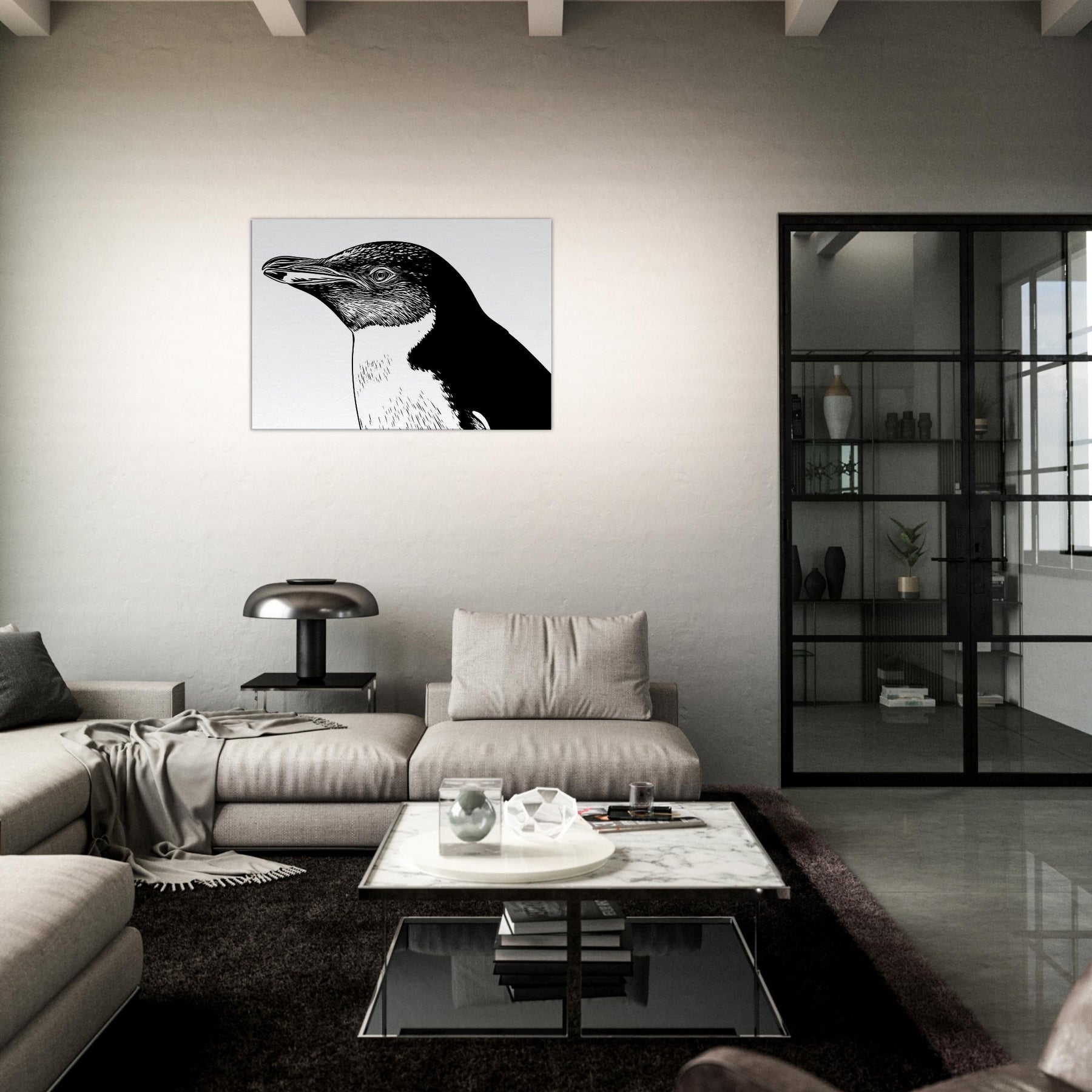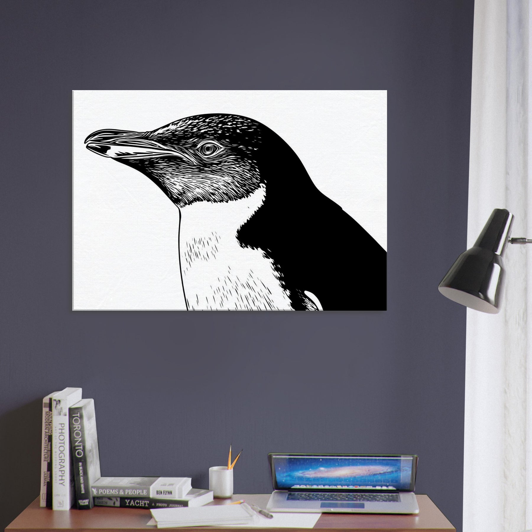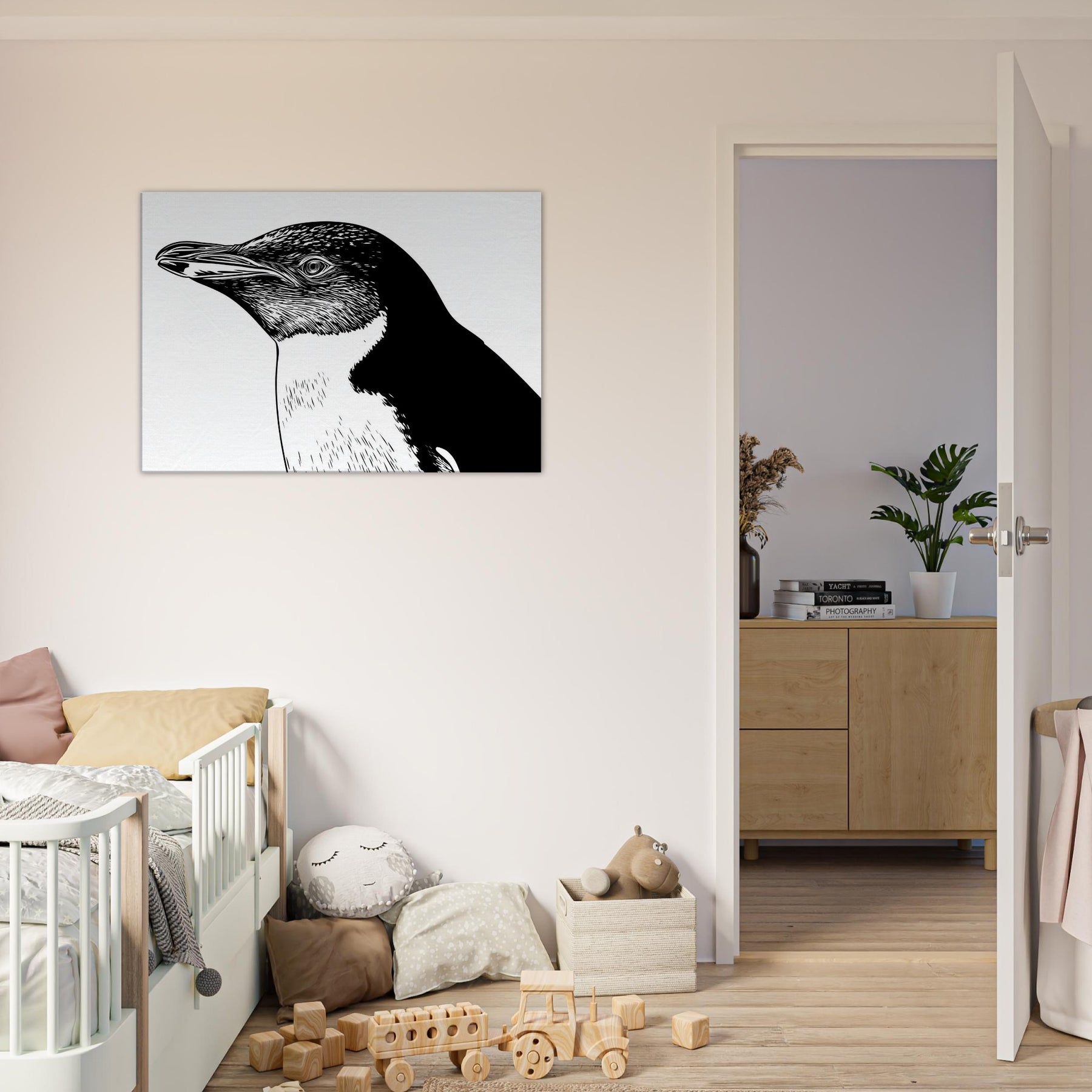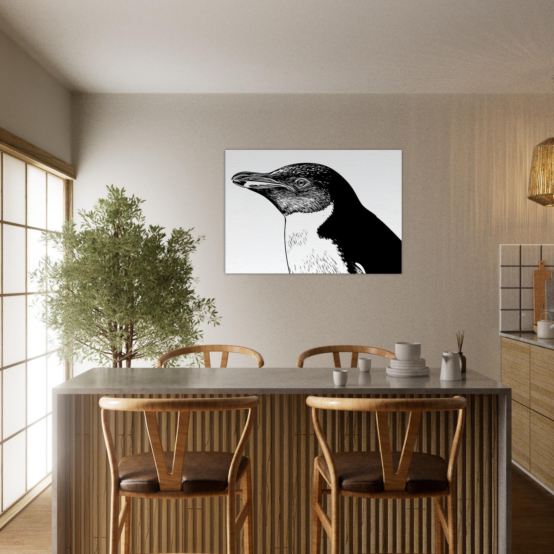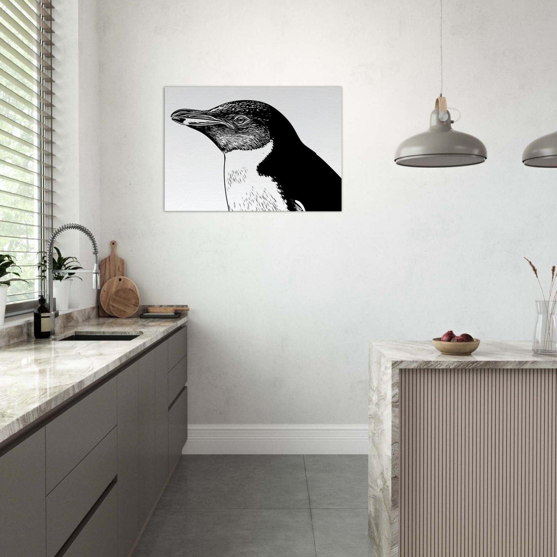 Rendered in clean lines, this Penguin line drawing evokes the quiet grandeur of a glacial morning. The bold black silhouette contrasts with delicate white space, inviting calm reflection rather than loud display. As it anchors a wall, the piece breathes a cool, airy energy into living rooms, bedrooms, or hallways, pairing effortlessly with neutrals and natural textures. The Penguin's poised profile suggests patience and grace, turning everyday moments into a small, cinematic pause for contemplation.