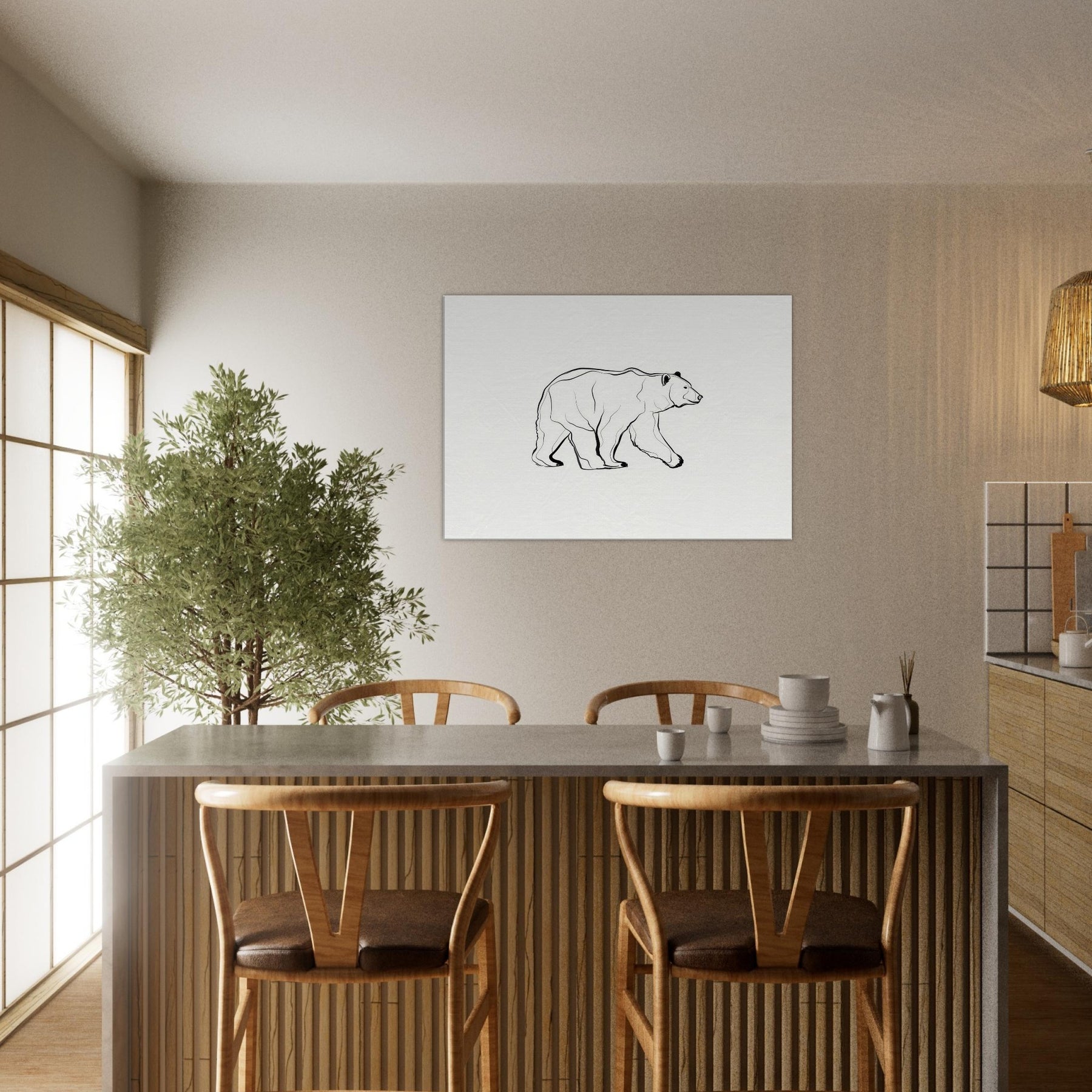 This minimalist bear captures a moment of quiet motion, where breath and line become one. The Primary Subject, the bear, is rendered with a single confident contour that suggests weight, presence, and calm. Against a pale field, generous whitespace invites reflection, turning any room into a sanctuary. Light and shadow trace the curves, letting the scene breathe and evolve with you. It pairs effortlessly with modern decor, elevating everyday spaces with quiet, contemplative grace.