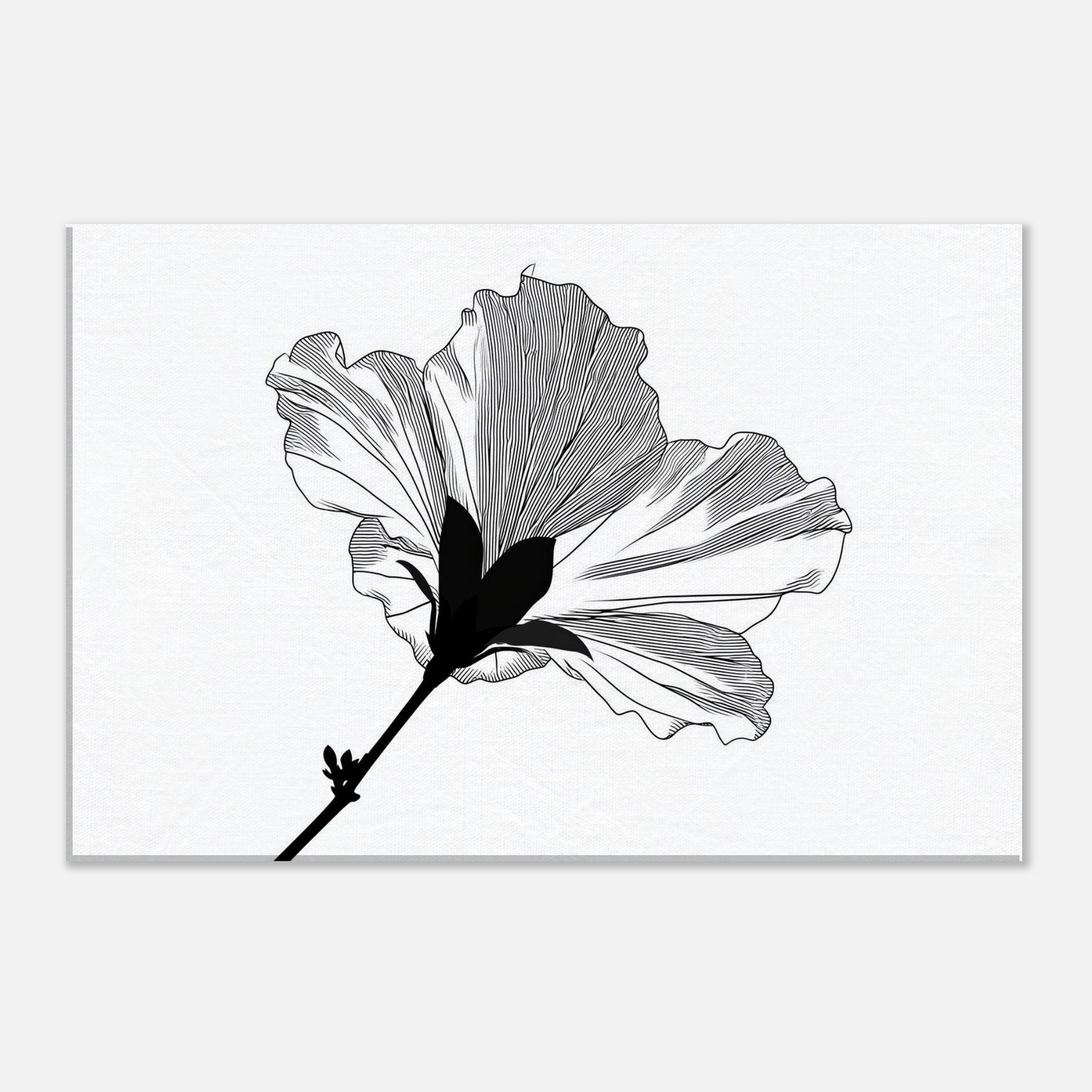 Hibiscus unfurls in a single, confident line a graceful silhouette that feels both modern and timeless. This Hibiscus inspired study of nature draws the eye with crisp black contours against white, inviting quiet reflection. The delicate hues are implied, not shaded, leaving space for sunlight and imagination to wander. Hang it where you want a breath of calm, a touch of refined simplicity that enhances living spaces with a sense of movement, balance, and serene, botanically inspired elegance.