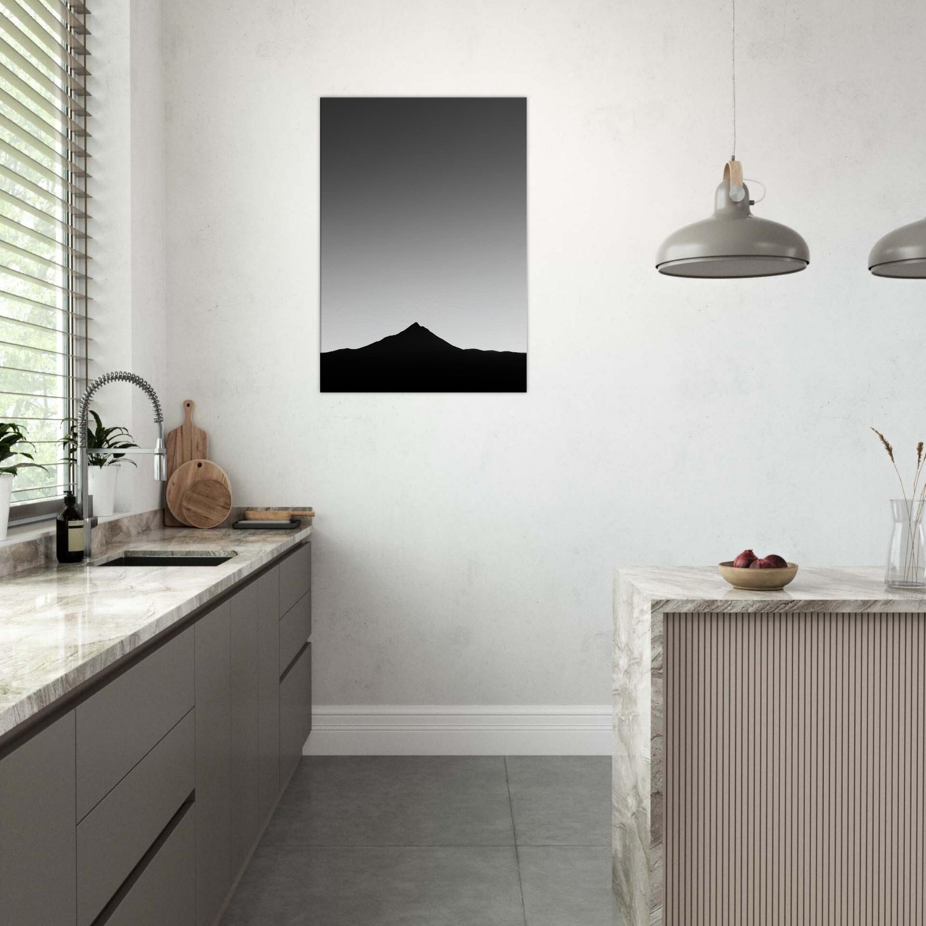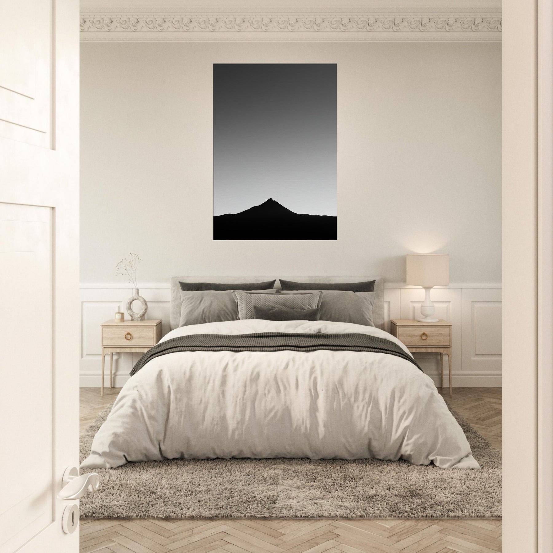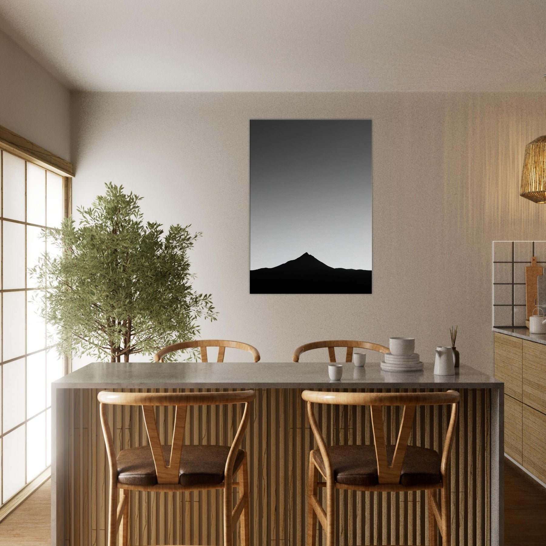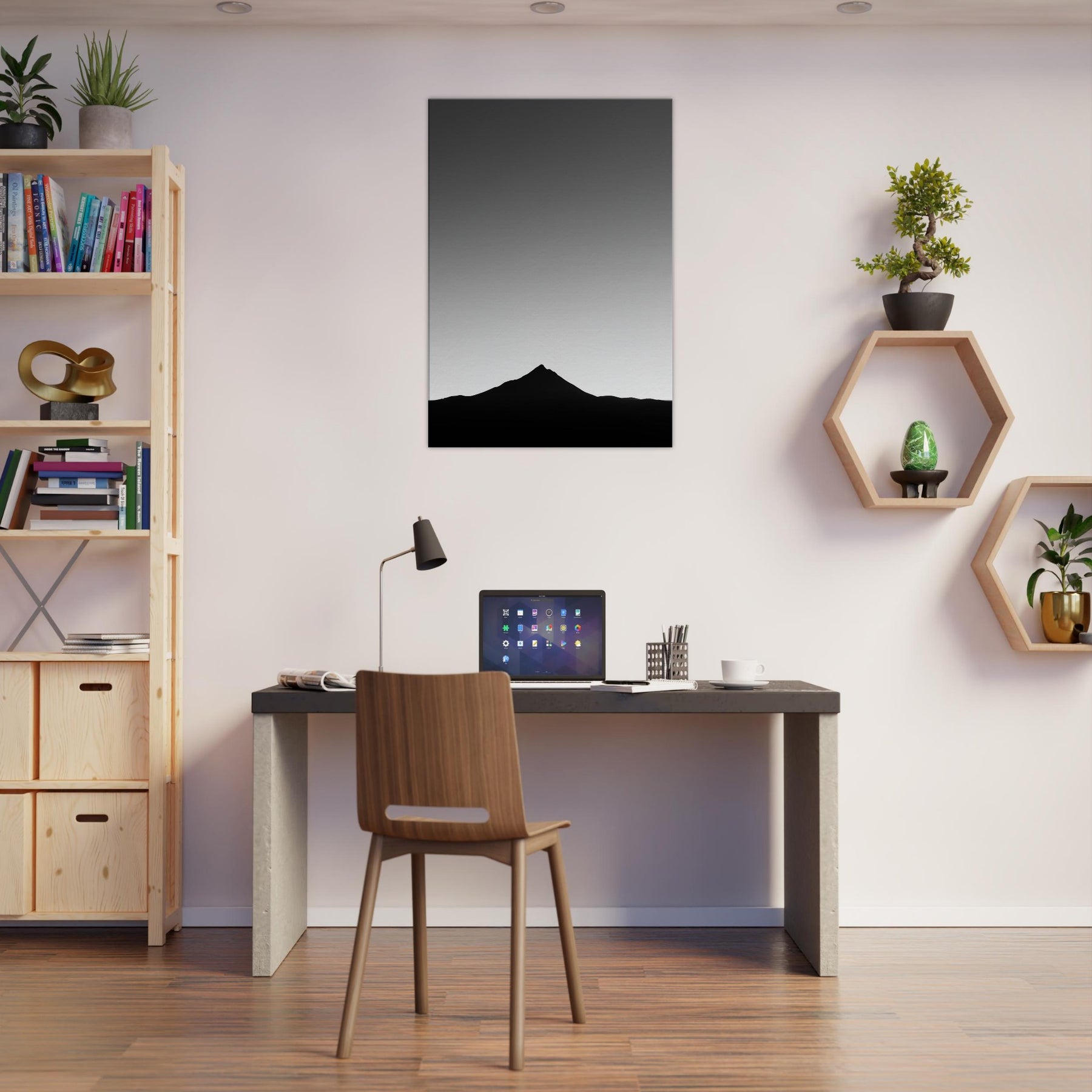 Endless Horizon captures a quiet boundary where land meets the sky, rendered in a single, continuous line that suggests distance without detail. This nature inspired piece invitingly slows the room’s pace, its stark mountain silhouette resting above a softened gradient that shifts from deep charcoal to pale ivory. The restrained palette and delicate line work create a contemplative mood, perfect for a living space that longs for clarity, space, and a touch of eternal calm.