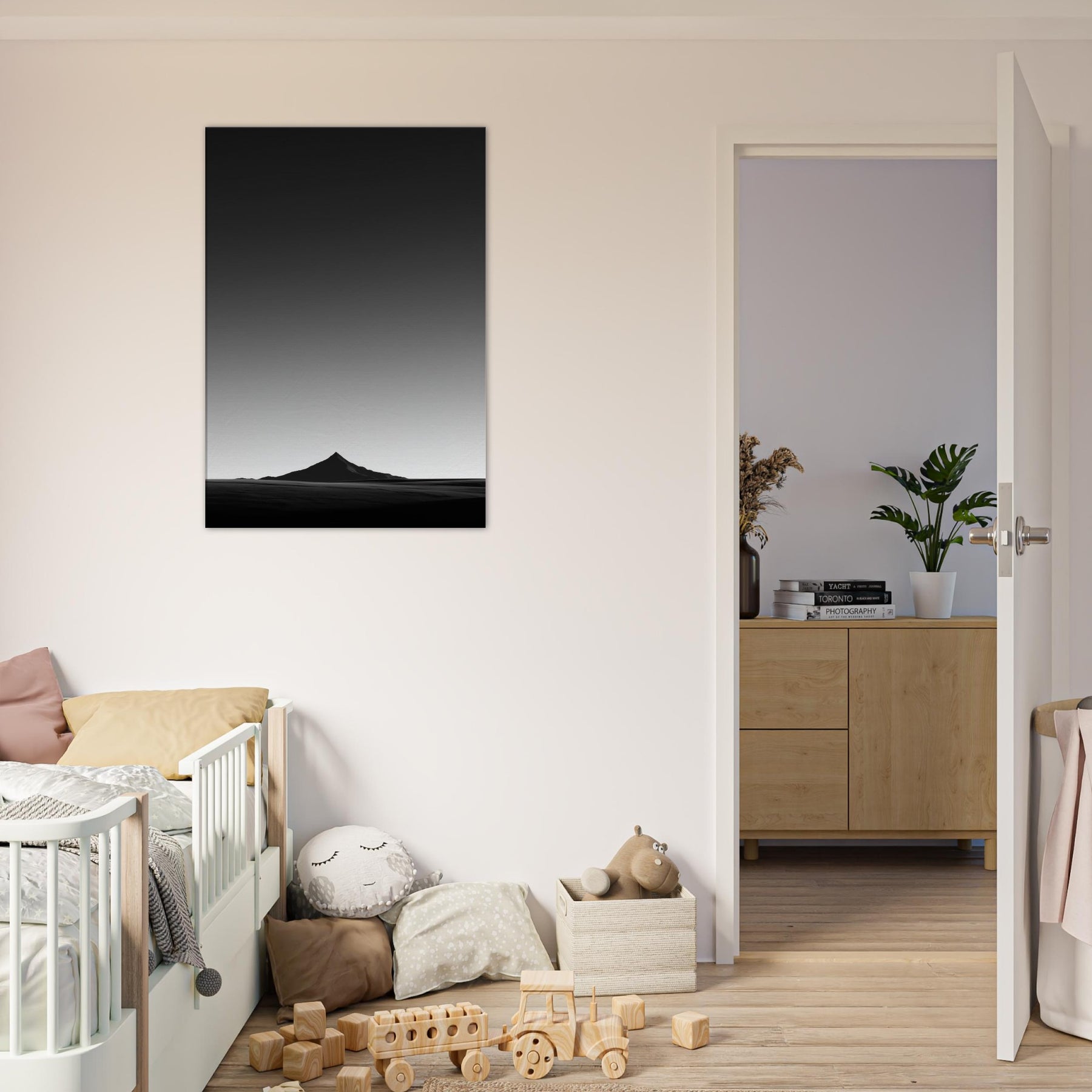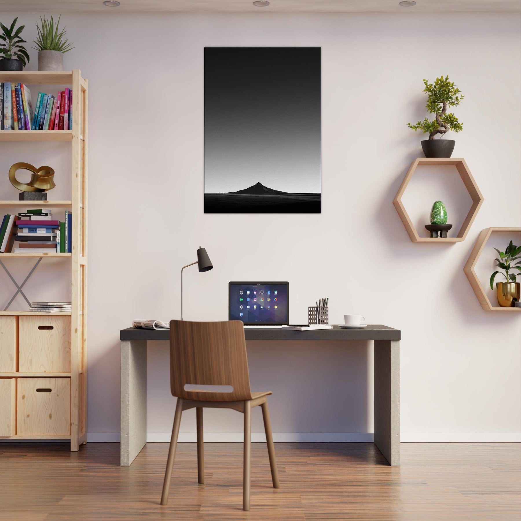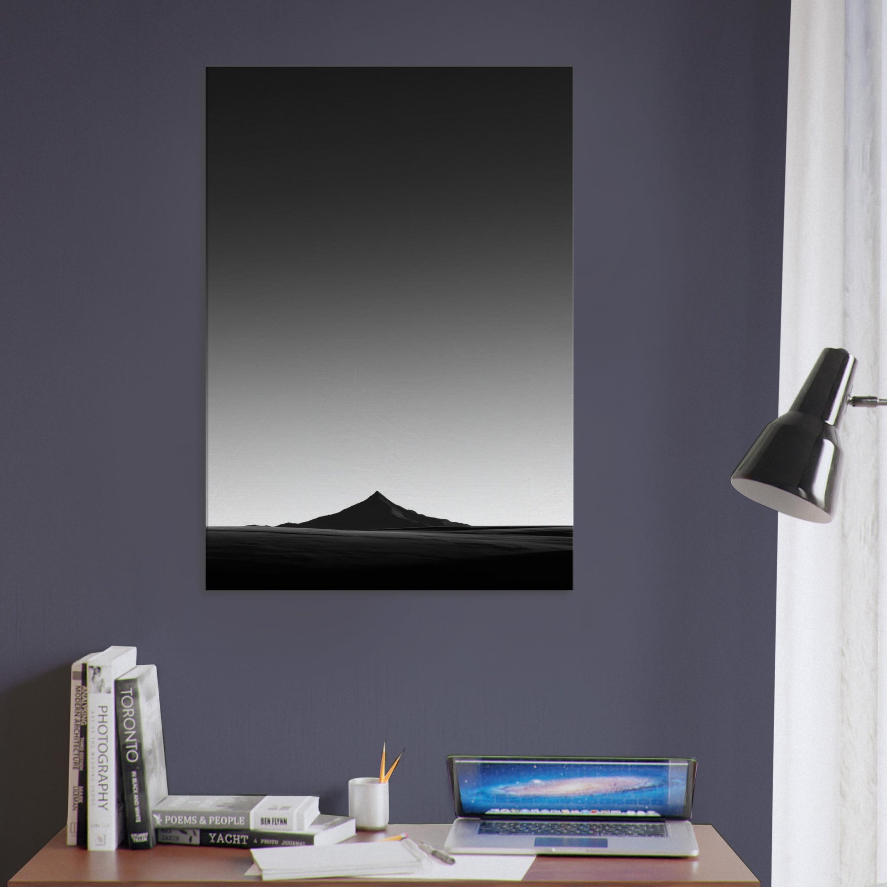 Endless Horizon invites the viewer into a still, expansive moment where land meets light. Rendered in clean line, the mountain borne silhouette stretches across a quiet plane, while the sky graduates from charcoal to pale ivory. This composition breathes a calm energy into any room, rounding harsh edges with its soft gradient and making walls feel taller. Place it above a couch or desk to evoke open space, contemplation, and a daily reminder that every day ends in possibility.