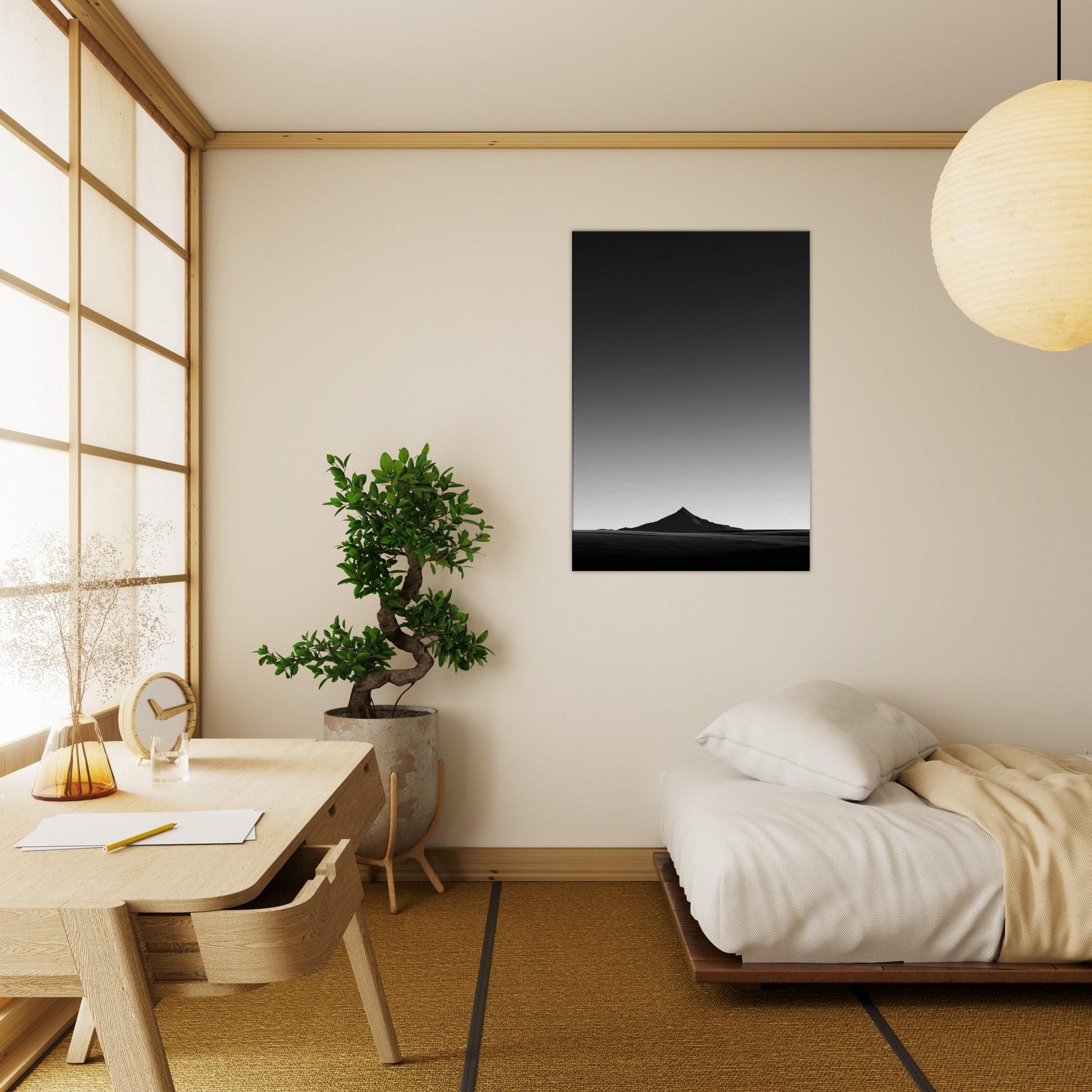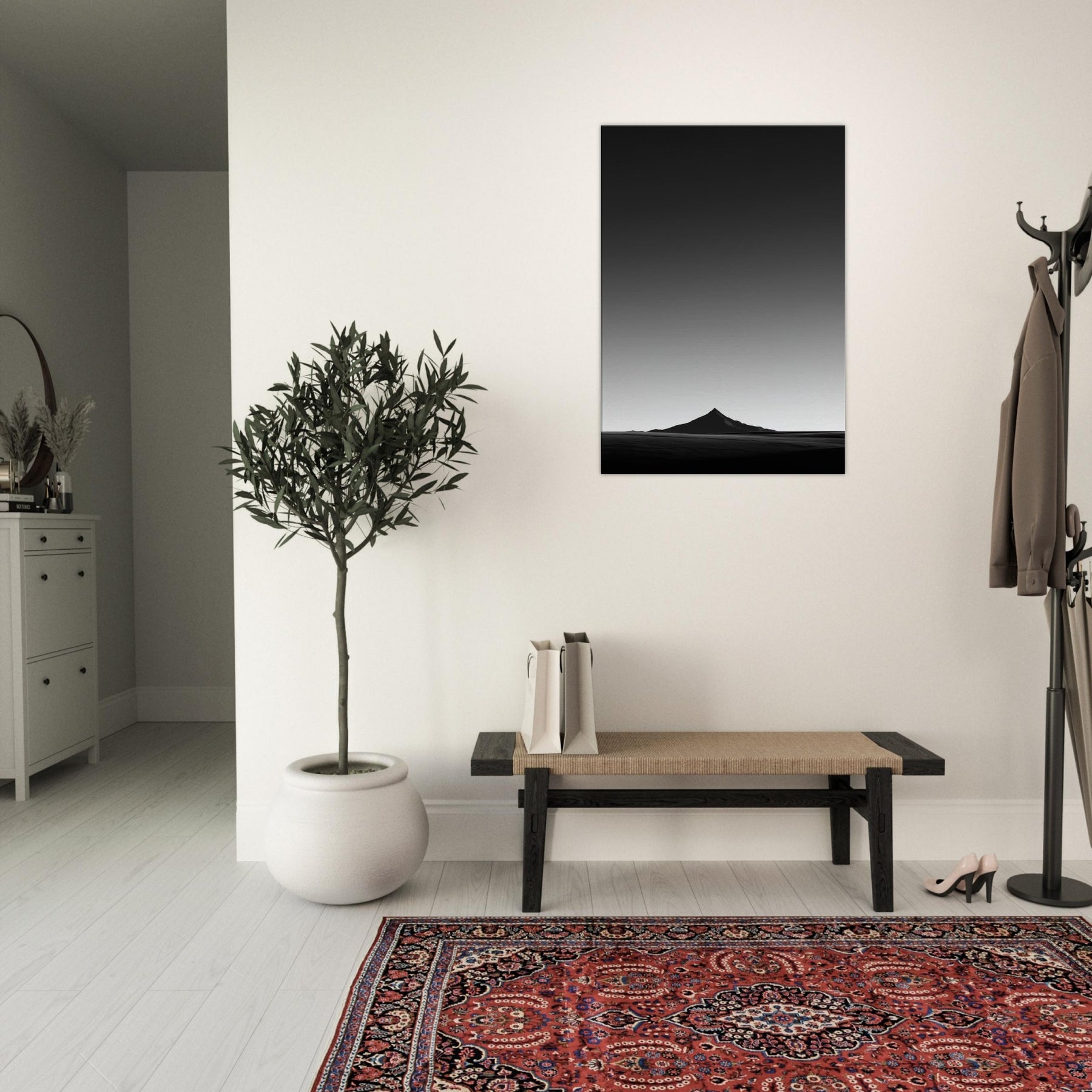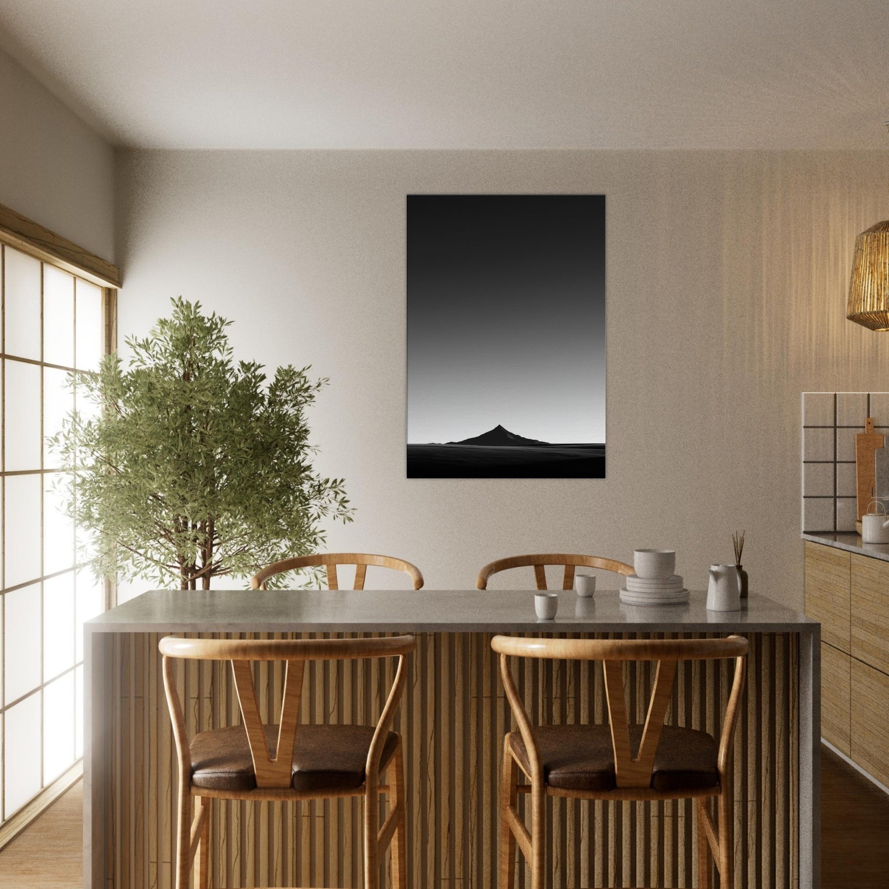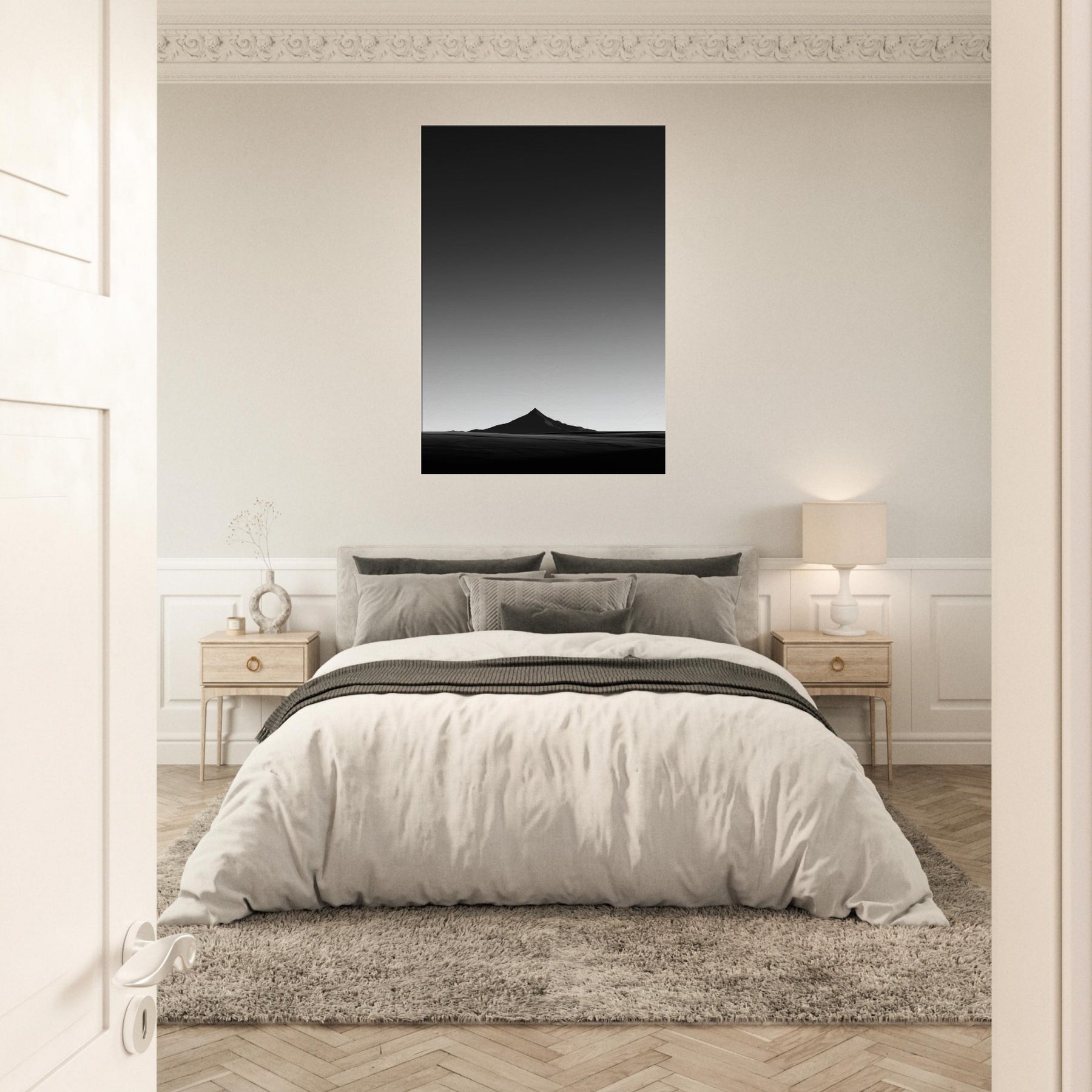 Endless Horizon invites the viewer into a still, expansive moment where land meets light. Rendered in clean line, the mountain borne silhouette stretches across a quiet plane, while the sky graduates from charcoal to pale ivory. This composition breathes a calm energy into any room, rounding harsh edges with its soft gradient and making walls feel taller. Place it above a couch or desk to evoke open space, contemplation, and a daily reminder that every day ends in possibility.