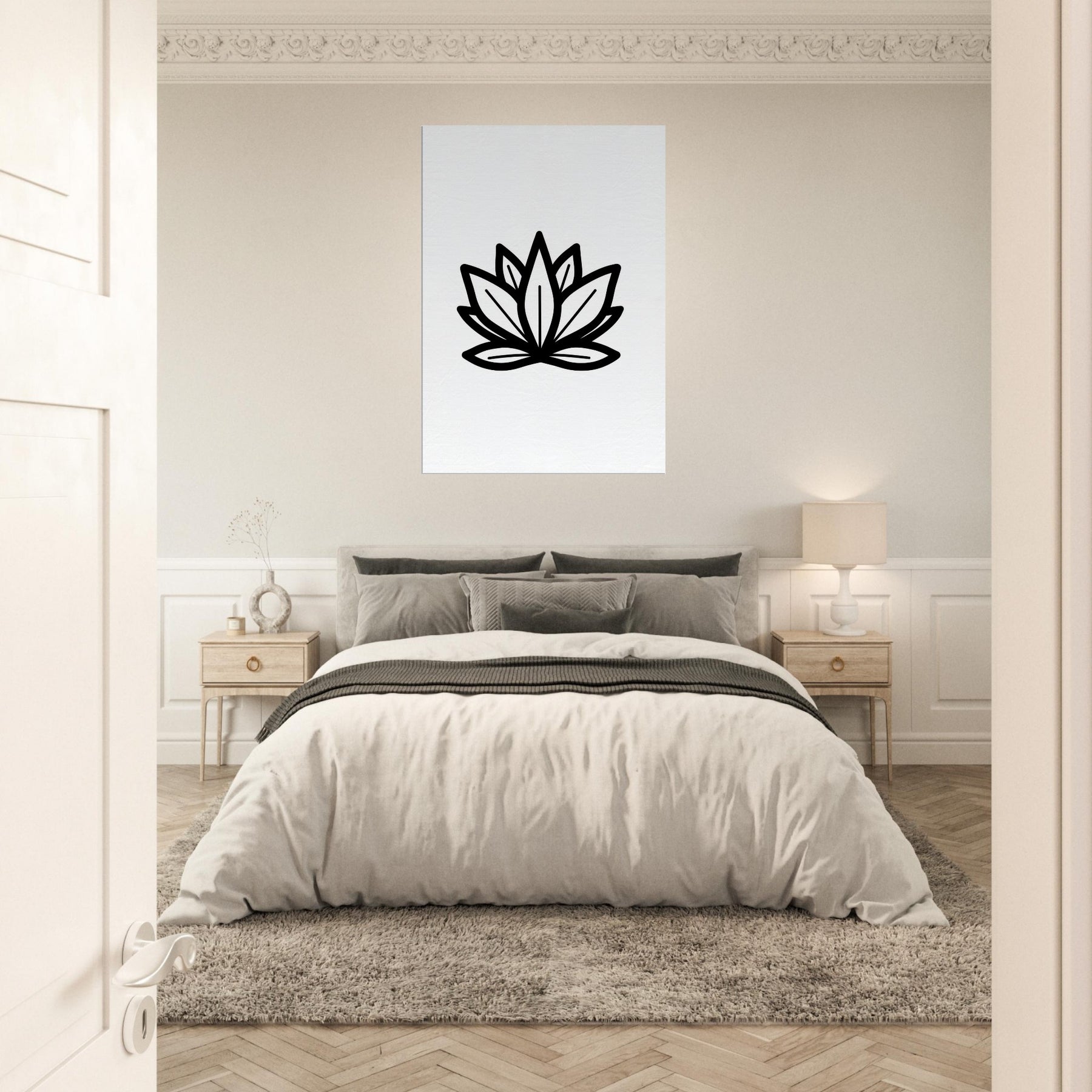In this serene rendering, the Lotus Throne rises with quiet authority, a mystical silhouette drawn in confident line work. The stark black and white contrast awakens the senses, inviting breath and stillness to coexist within a busy home. This wall art transforms a living space into a contemplative retreat, its rhythm echoing soft lighting and refined furniture. The Lotus Throne becomes a gentle focal point, guiding presence and imagination without shouting, adding elegance, balance, and timeless calm.