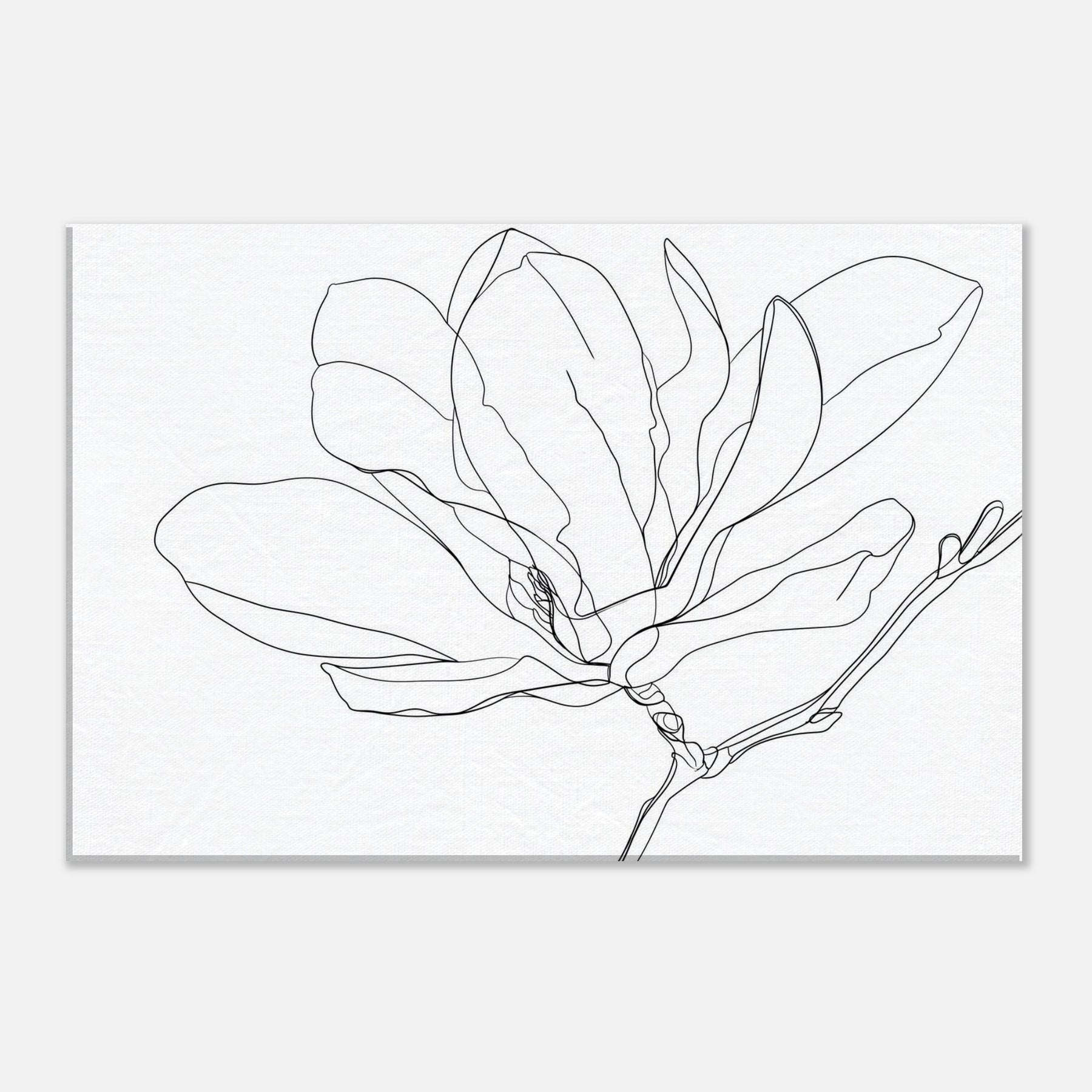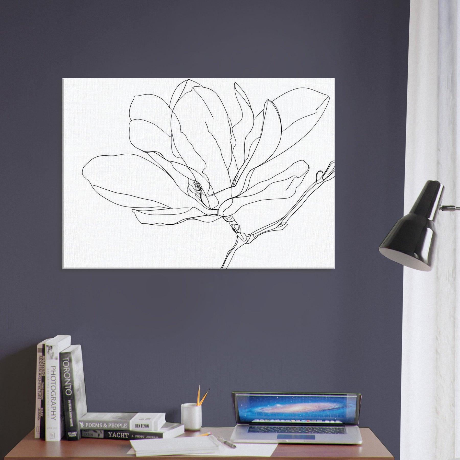 Magnolia takes flight in a single, continuous line that suggests quiet motion and botanical grace. This elegant study captures the plant's sweeping petals with unbroken contours, inviting the viewer to pause, breathe, and notice the slender curves that define nature's architecture. Printed as a refined monochrome, it radiates calm across living rooms, bedrooms, or hallways, pairing effortlessly with minimal furnishings or bold textures alike. A Magnolia centerpiece for spaces seeking simplicity, warmth, and a breath of Southern light.