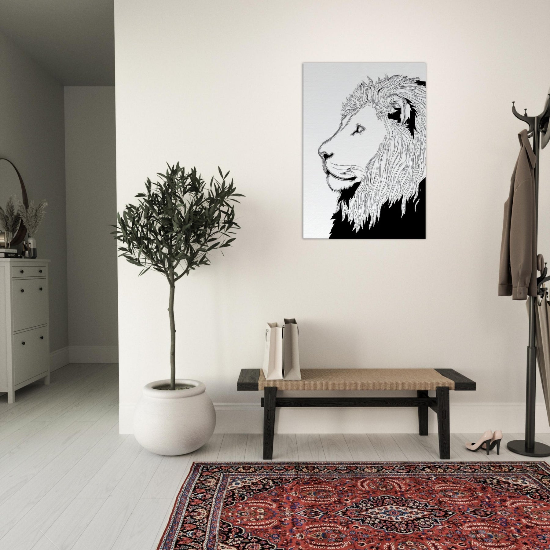 With a single, sinuous line, this minimalist Lion captures the calm intensity of the wild, inviting stillness into your living room. The monochrome palette heightens the sense of quiet drama, letting soft textures and natural light play across the surface. As the Lion gazes outward, the piece anchors a space with noble restraint perfect above a sofa, in a bedroom niche, or beside a study desk where focus and confidence meet. A timeless, sculptural presence that elevates everyday moments.