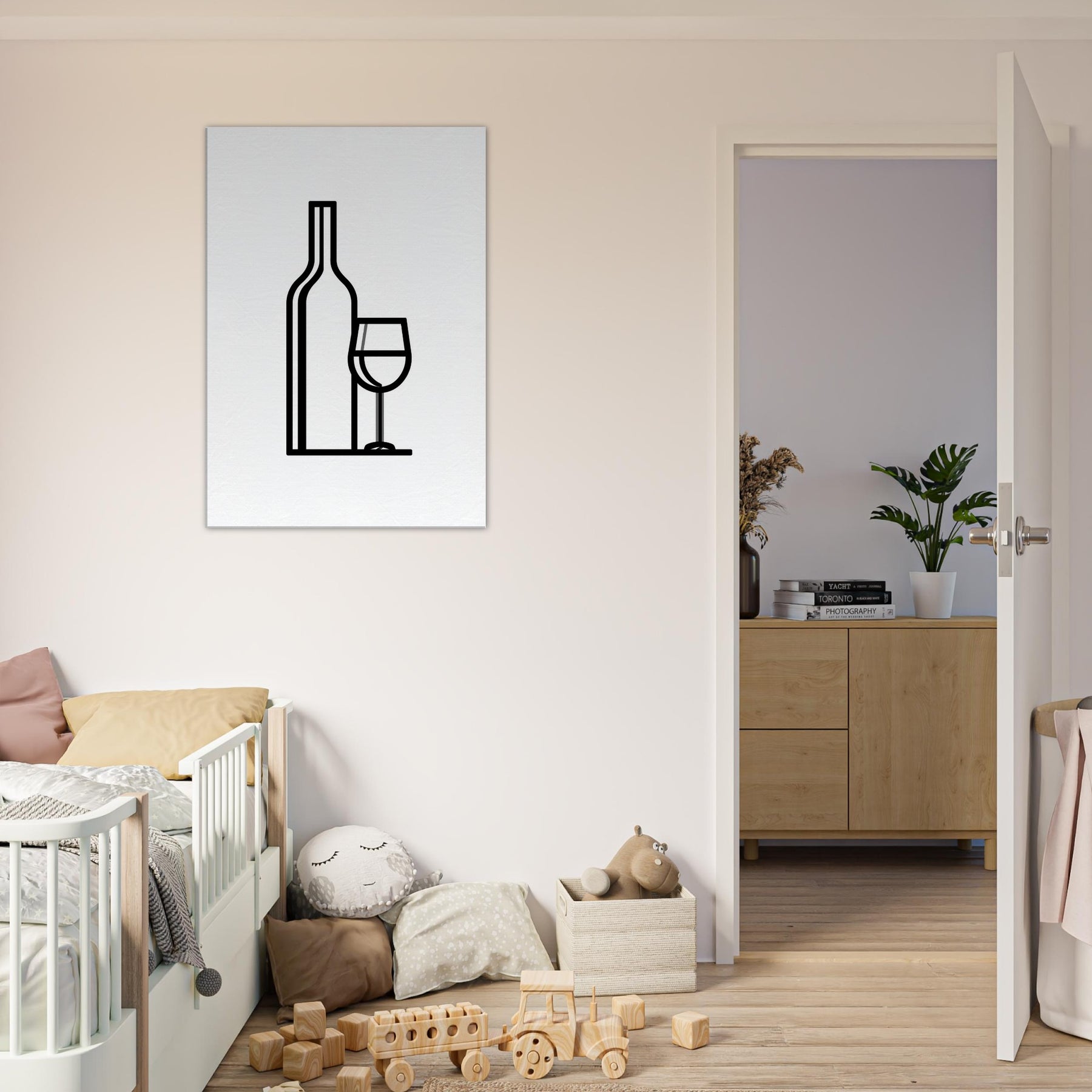 Wine Bottle and Glass sits in elegant restraint, rendered as a clean, continuous line that captures the ritual of a quiet evening. This line art study invites a calm, contemplative mood into your space, where the soft glow of light and the quiet clink of glass become a tactile memory in monochrome. Perfect for a dining nook or living room wall, it adds refined atmosphere without clutter, letting textures, fabrics, and color accents breathe around the stark, graceful silhouette.