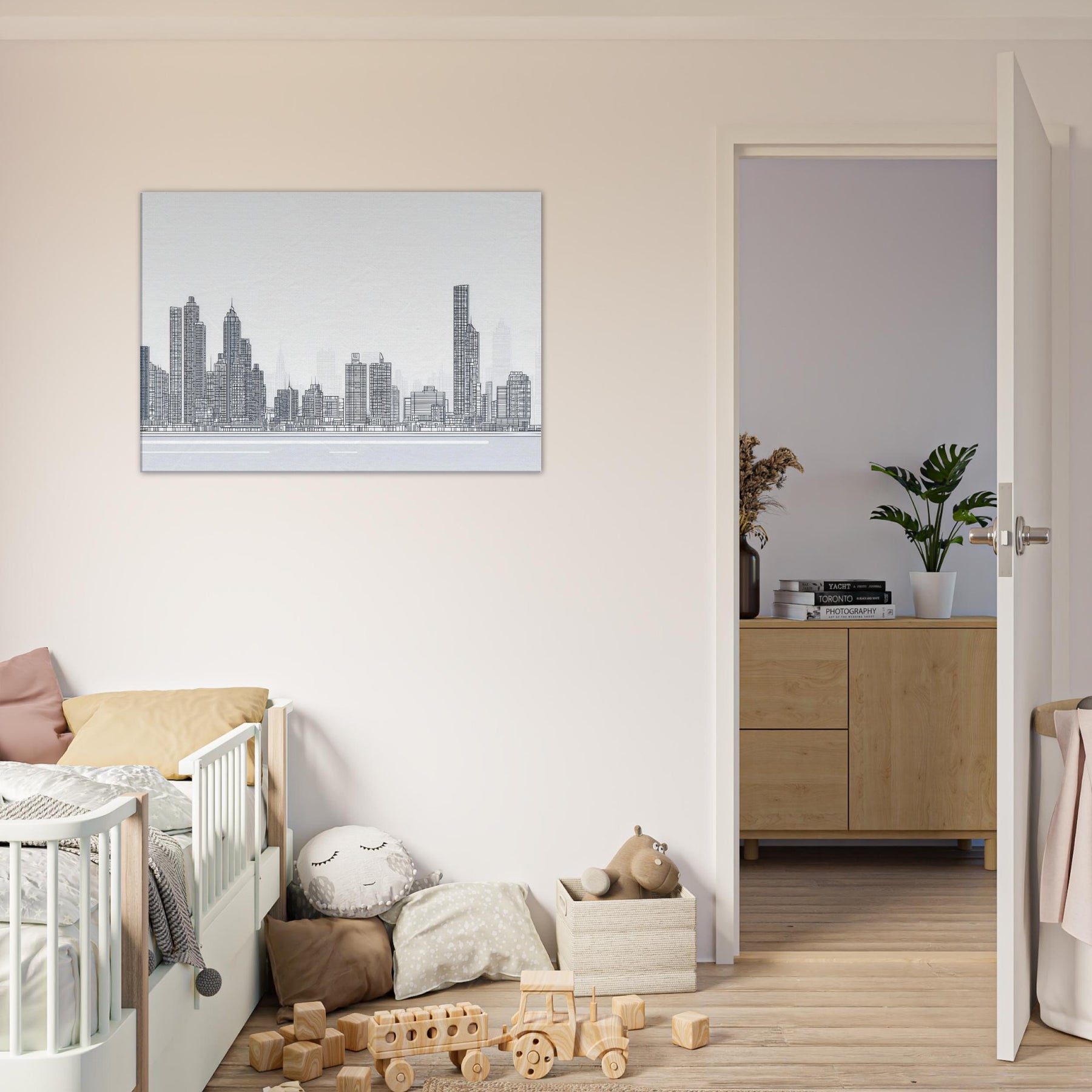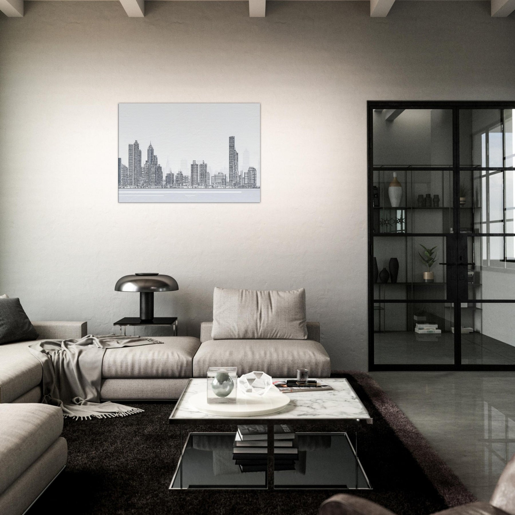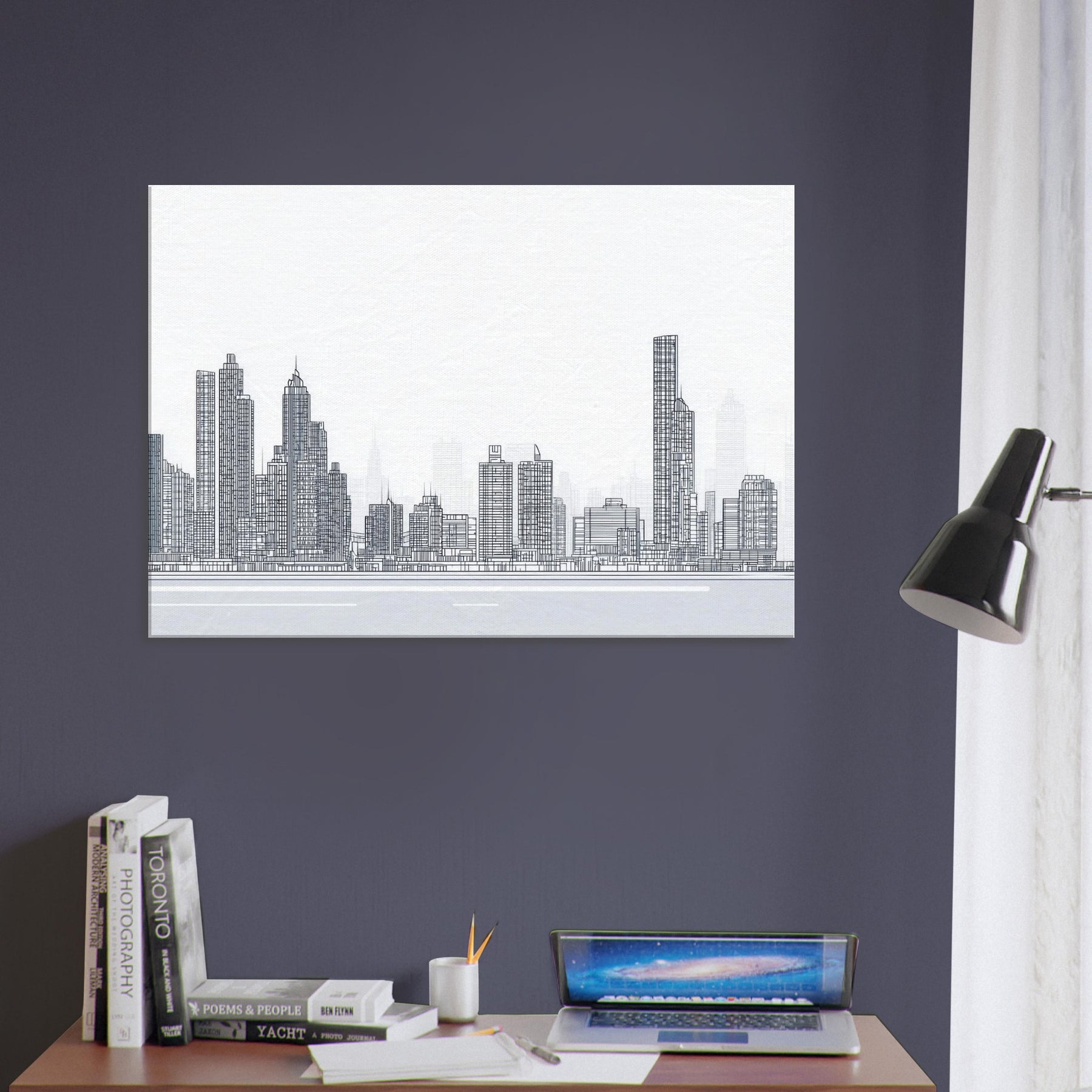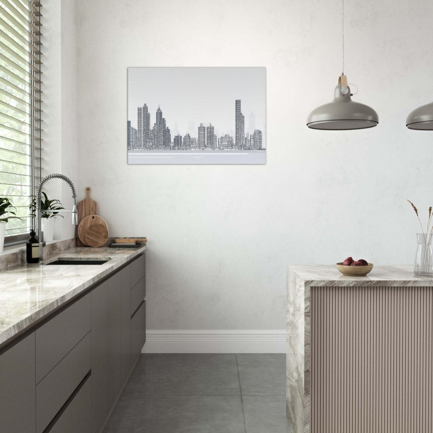 Immerse your space in the confident, spare beauty of New York rendered in a single, continuous line. This elegant cityscape captures towers and bridges with clean, uninterrupted strokes, inviting the rhythm of city life into your room. The stark black on white drawing feels contemporary yet timeless, a quiet heartbeat above your sofa or above your desk. Let the skyline breathe across your walls a reminder of ambition, memory, and movement, adding depth, refinement, and a whisper of urban poetry to your home.