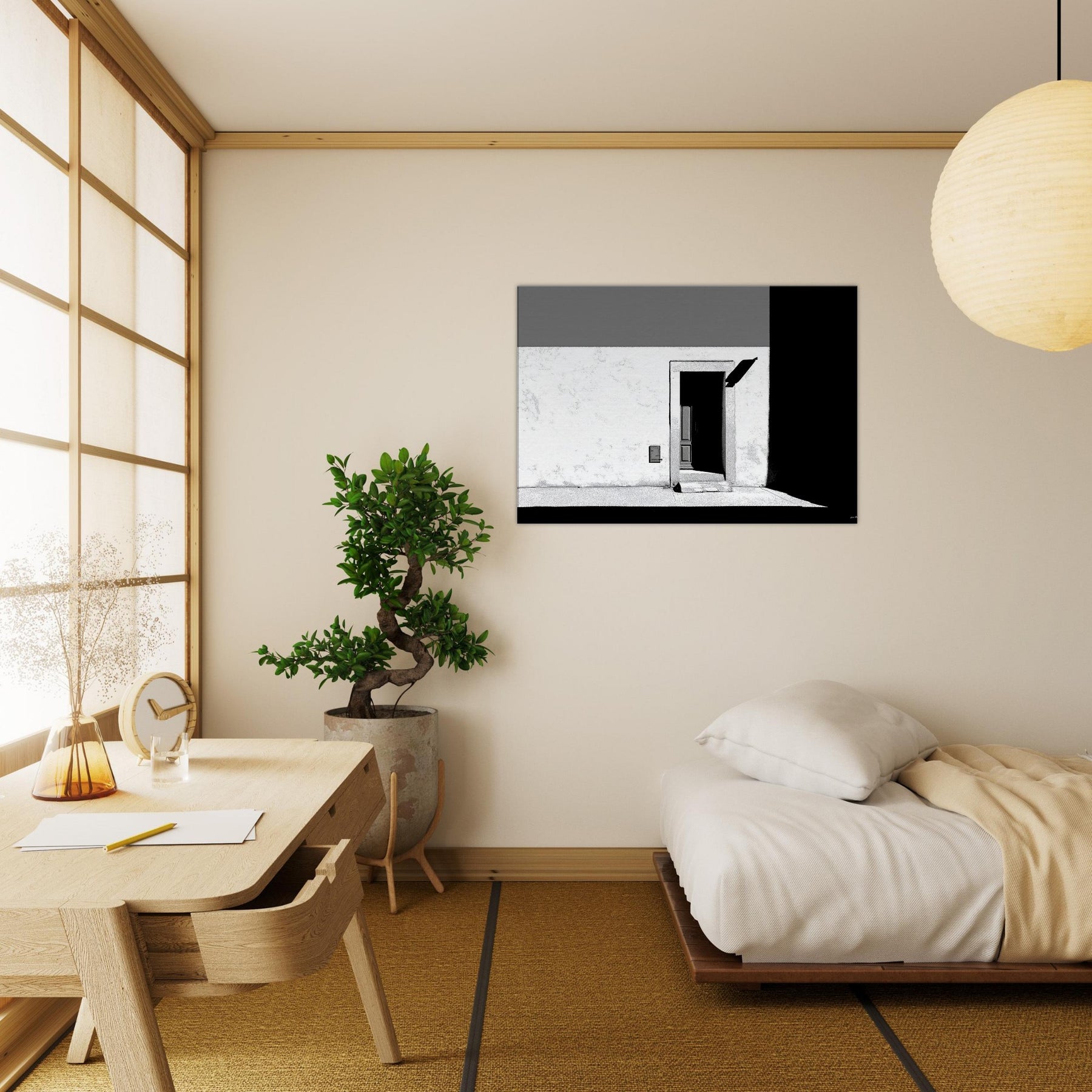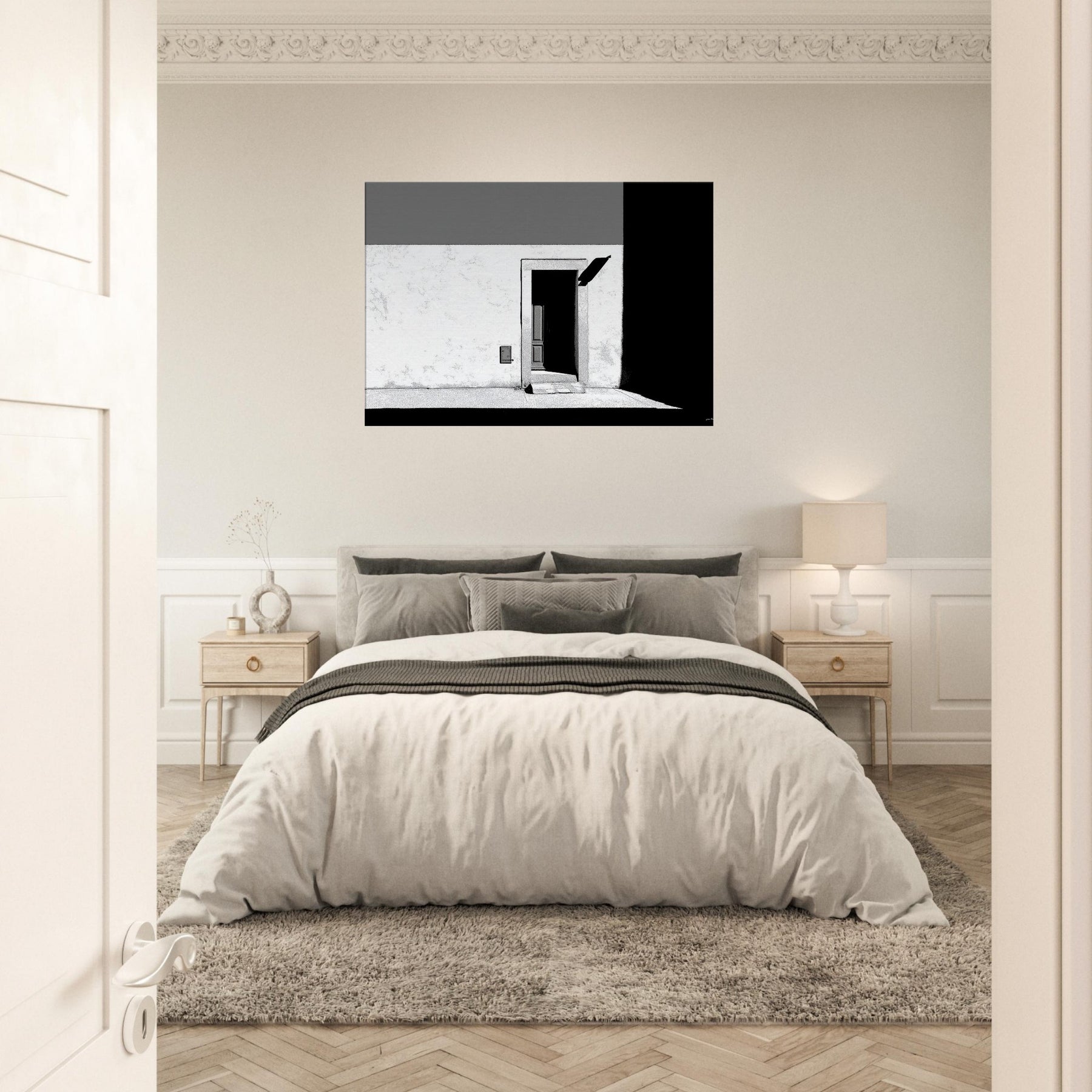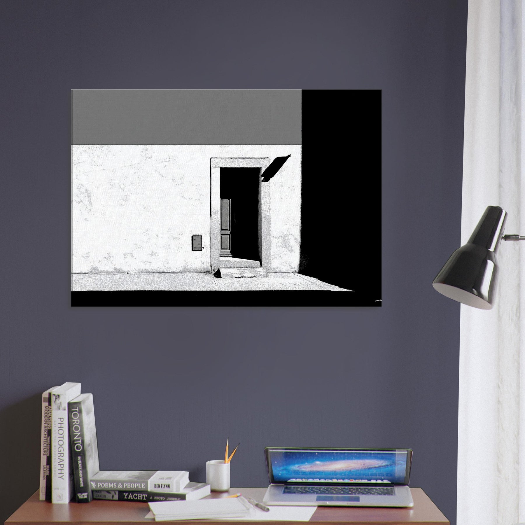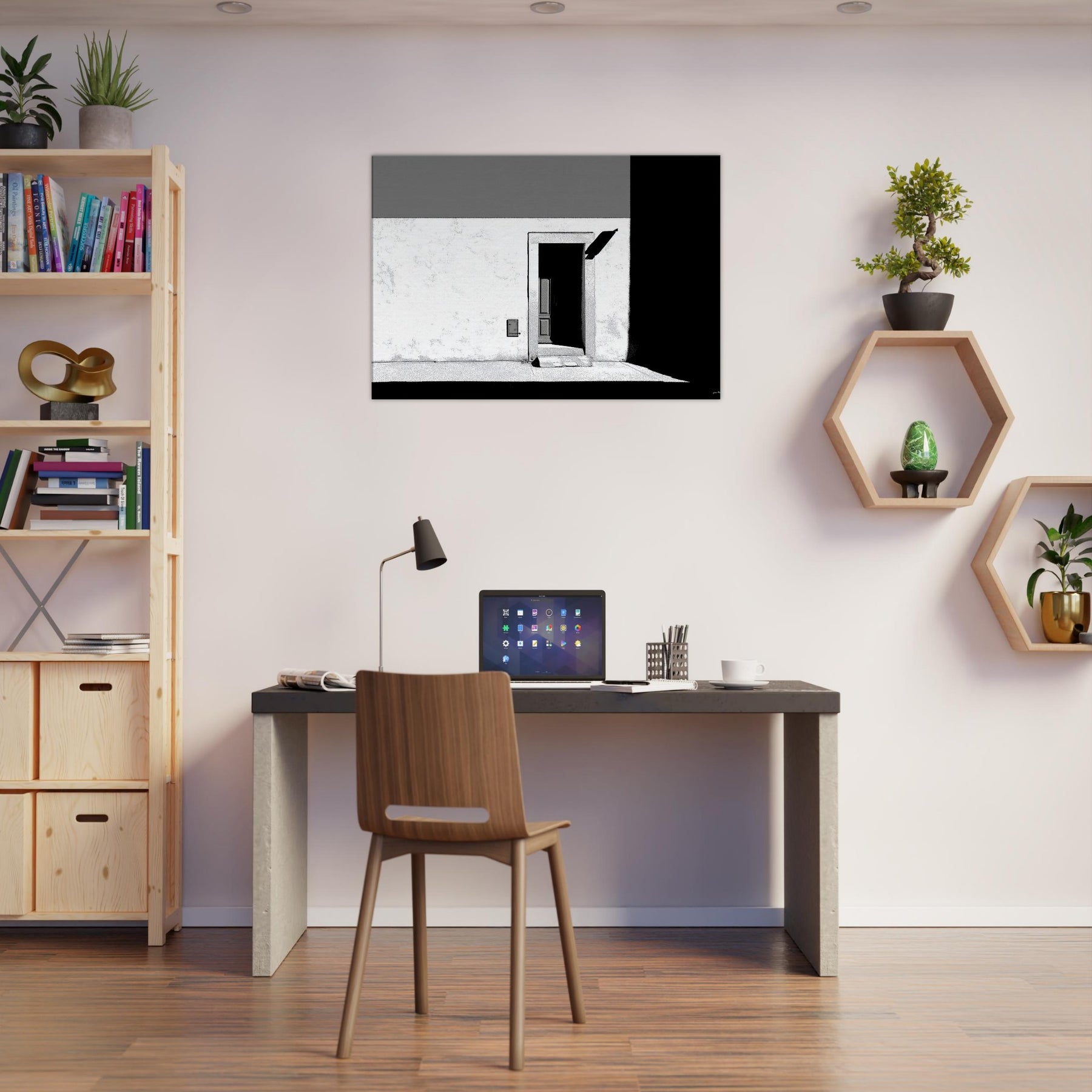 Old City Doorway emerges in stark line art, where shadows carve a quiet doorway into memory. The restrained geometry and monochrome tones invite calm into any room, like a pause between footsteps in an ancient alley. This piece lends a sense of invitation without noise, a motif of threshold and possibility. Hang it in a living room or study to frame conversations with a subtle, urban elegance, turning blank walls into a contemplative portal that feels both timeless and utterly contemporary.