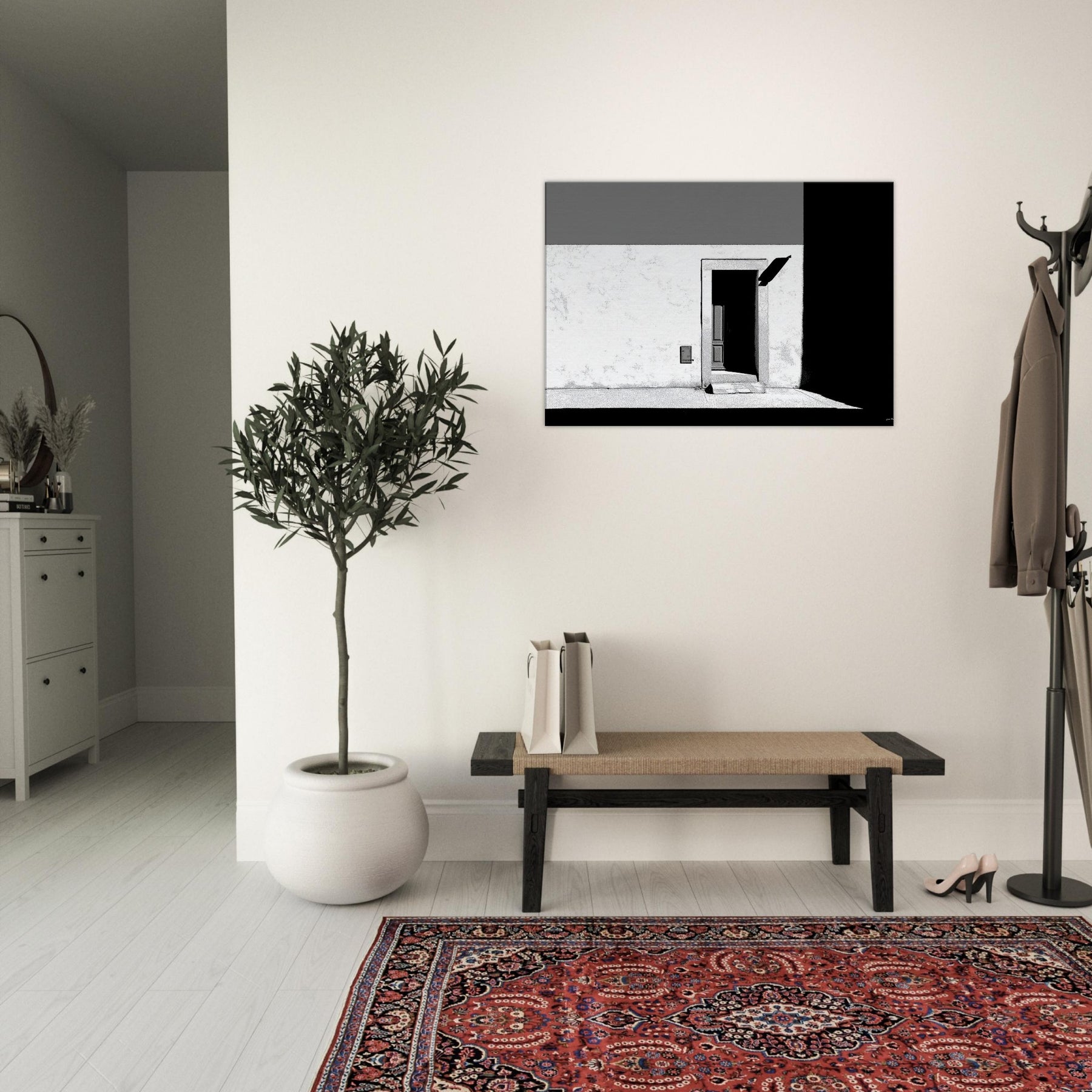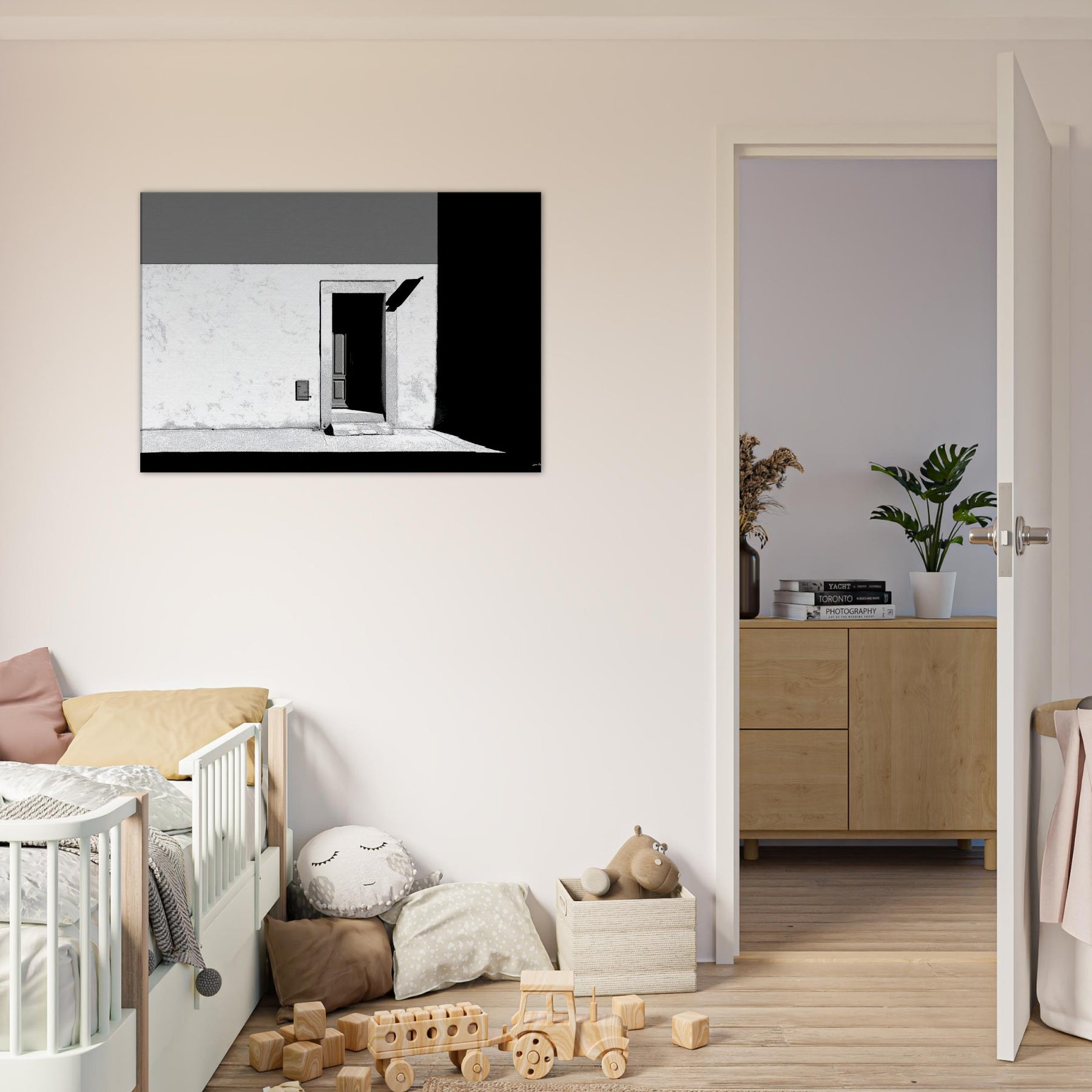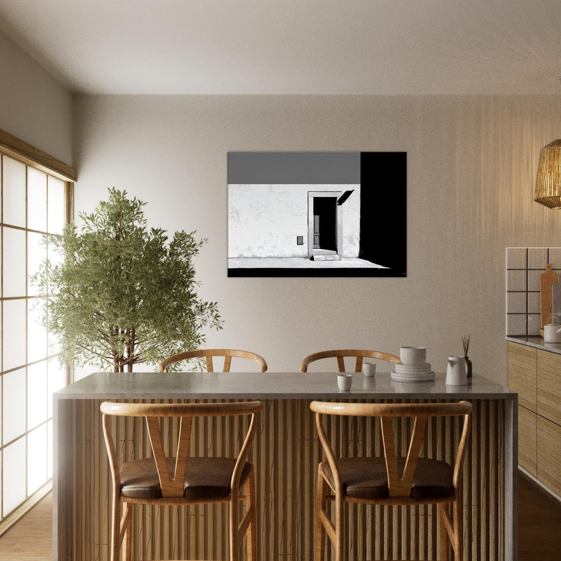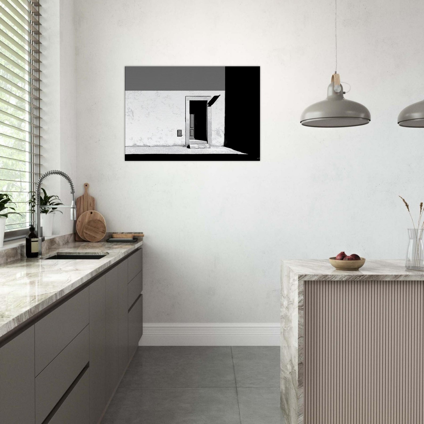 Old City Doorway emerges in stark line art, where shadows carve a quiet doorway into memory. The restrained geometry and monochrome tones invite calm into any room, like a pause between footsteps in an ancient alley. This piece lends a sense of invitation without noise, a motif of threshold and possibility. Hang it in a living room or study to frame conversations with a subtle, urban elegance, turning blank walls into a contemplative portal that feels both timeless and utterly contemporary.