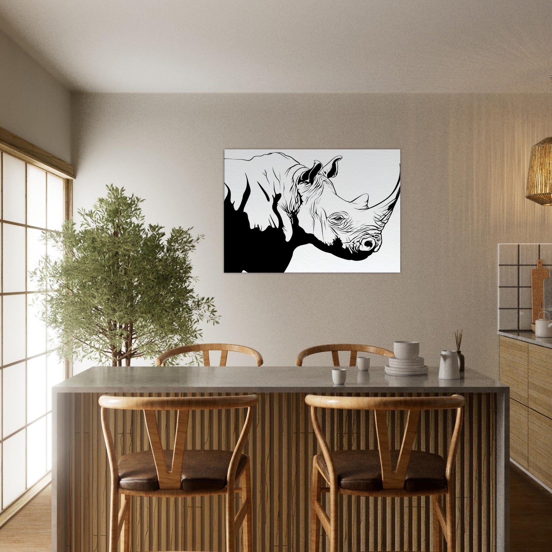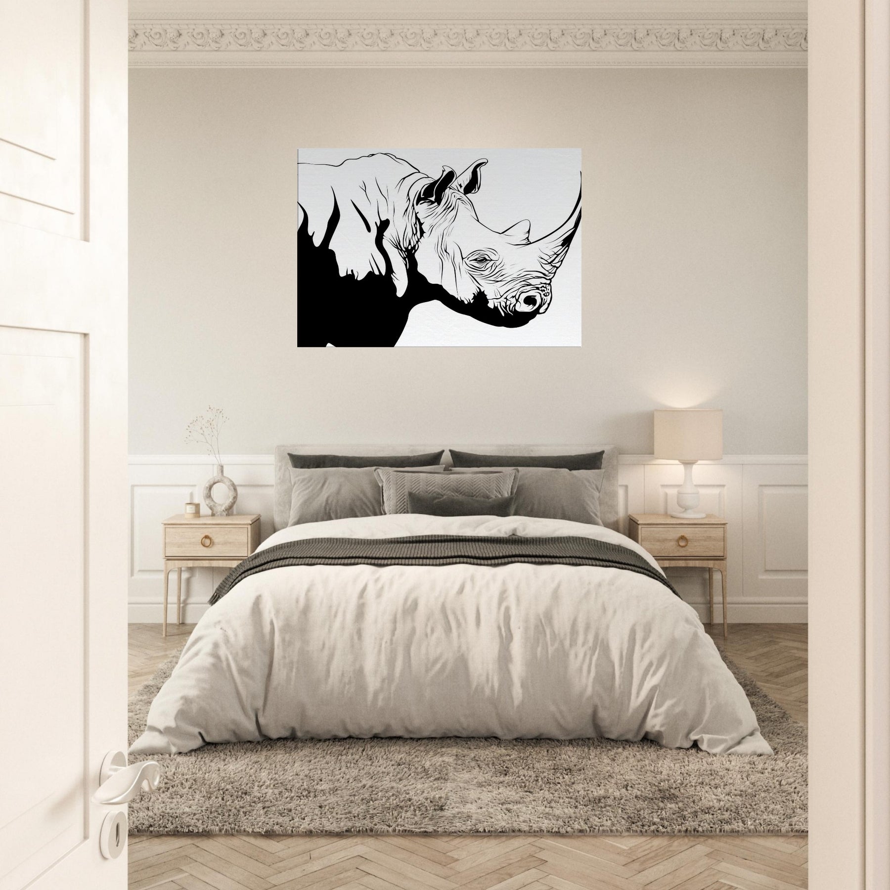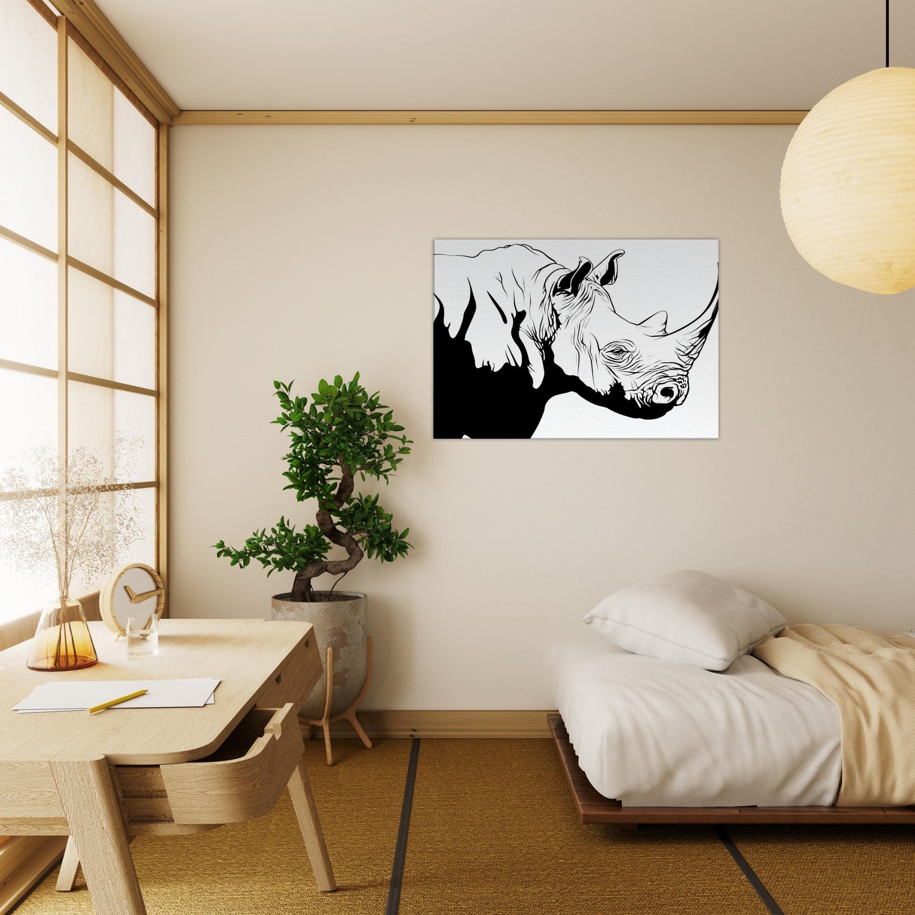 An elegant whisper of form, this Rhinoceros captures motion in a single, confident line. The minimalist contour invites calm, letting negative space breathe between its quiet features. In a sunlit living room, the stark black ink against white gives a sense of timeless balance a sculpture you can wear on walls. The Rhinoceros appears both formidable and serene, a reminder of presence without noise. Pair with natural textures and soft lighting to draw the eye, slow the pace, and elevate modern interiors with restrained drama.