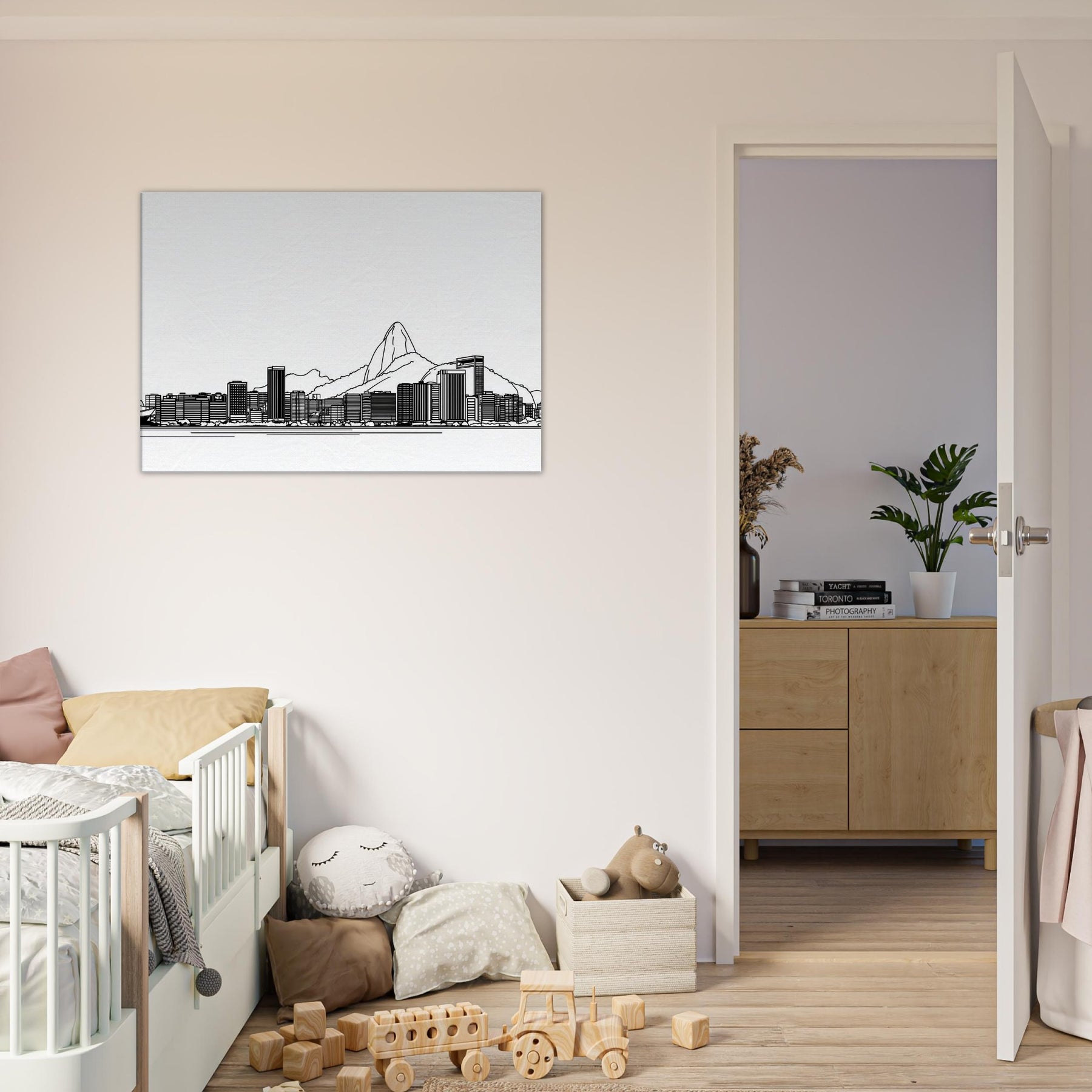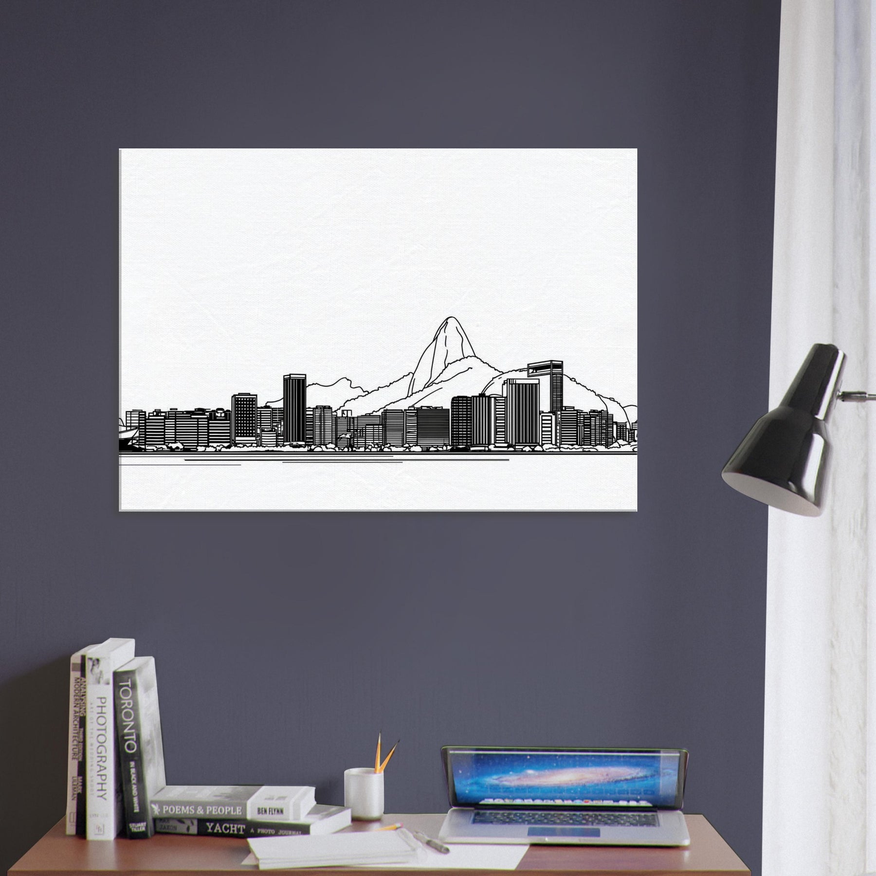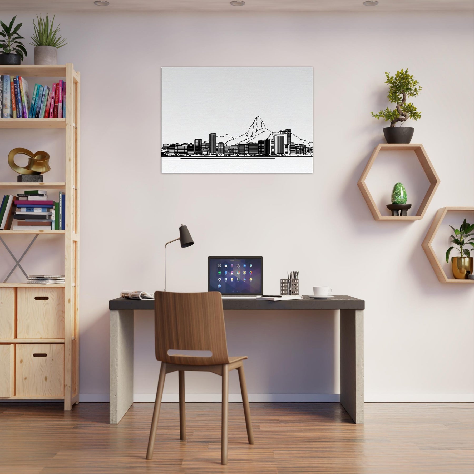 Rio De Janeiro unfurls in pristine line, a cityscape of bold towers, gentle waves, and the iconic peak rising in quiet grace. The simplicity of the contour draws the eye and quiets the mind, turning a room into a harbor of careful balance. In a living room, it catches the day's light and returns it as shadowed rhythm, pairing beautifully with natural textures and black and white tones. This artwork invites introspection, conversation, and a subtle sense of travel, making any space feel expansive and luminous.