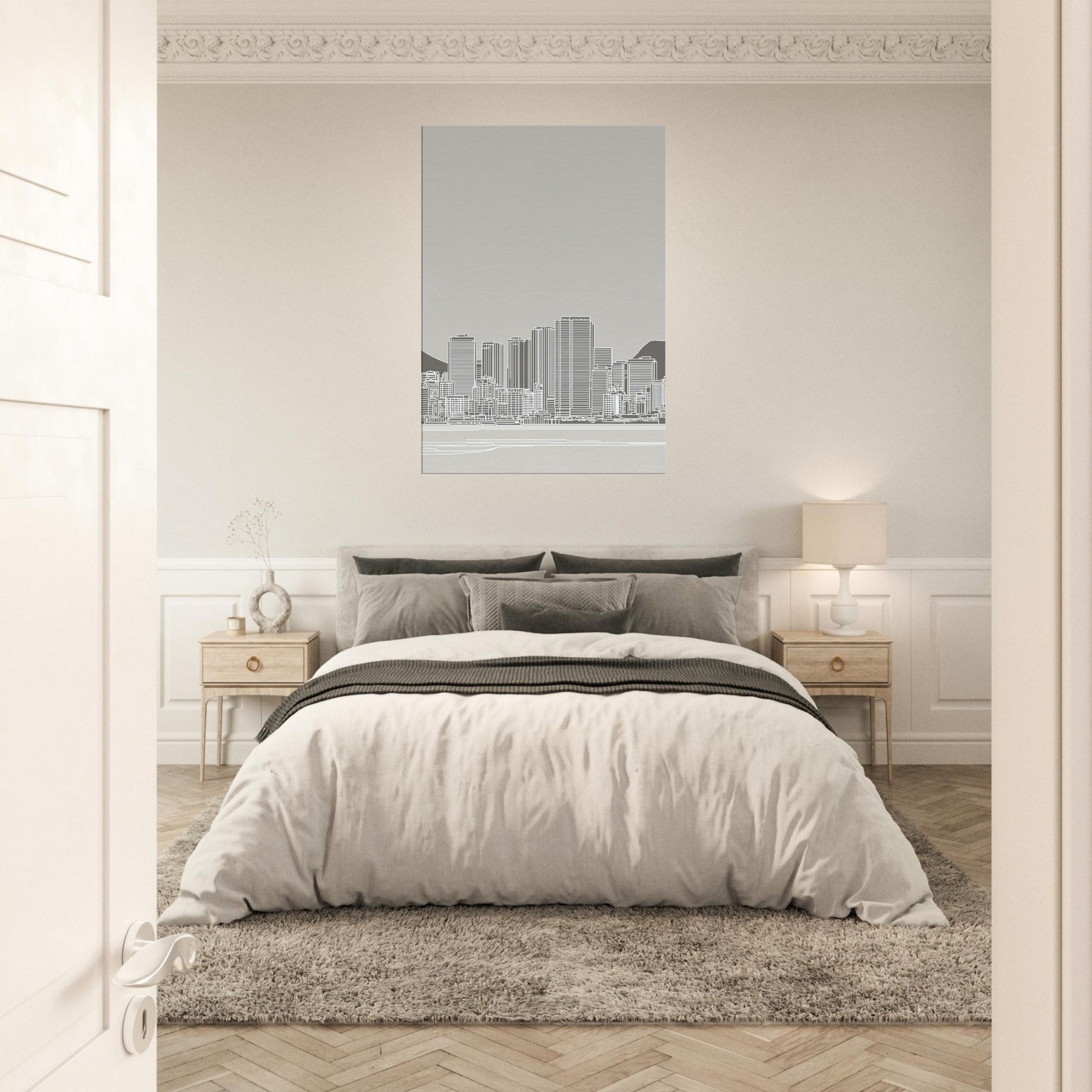 Rio De Janeiro unfolds in graceful lines, a cityscape that glows against a quiet horizon. This delicate work invites the room to exhale contour by contour, it traces familiar hills, towers, and waterways in monochrome grace. The result is a serene focal point that pairs with warm wood tones and soft textures, turning everyday living spaces into a moment of urban poetry. Hang it where conversation and contemplation meet, and let Rio De Janeiro's quiet elegance anchor the mood.