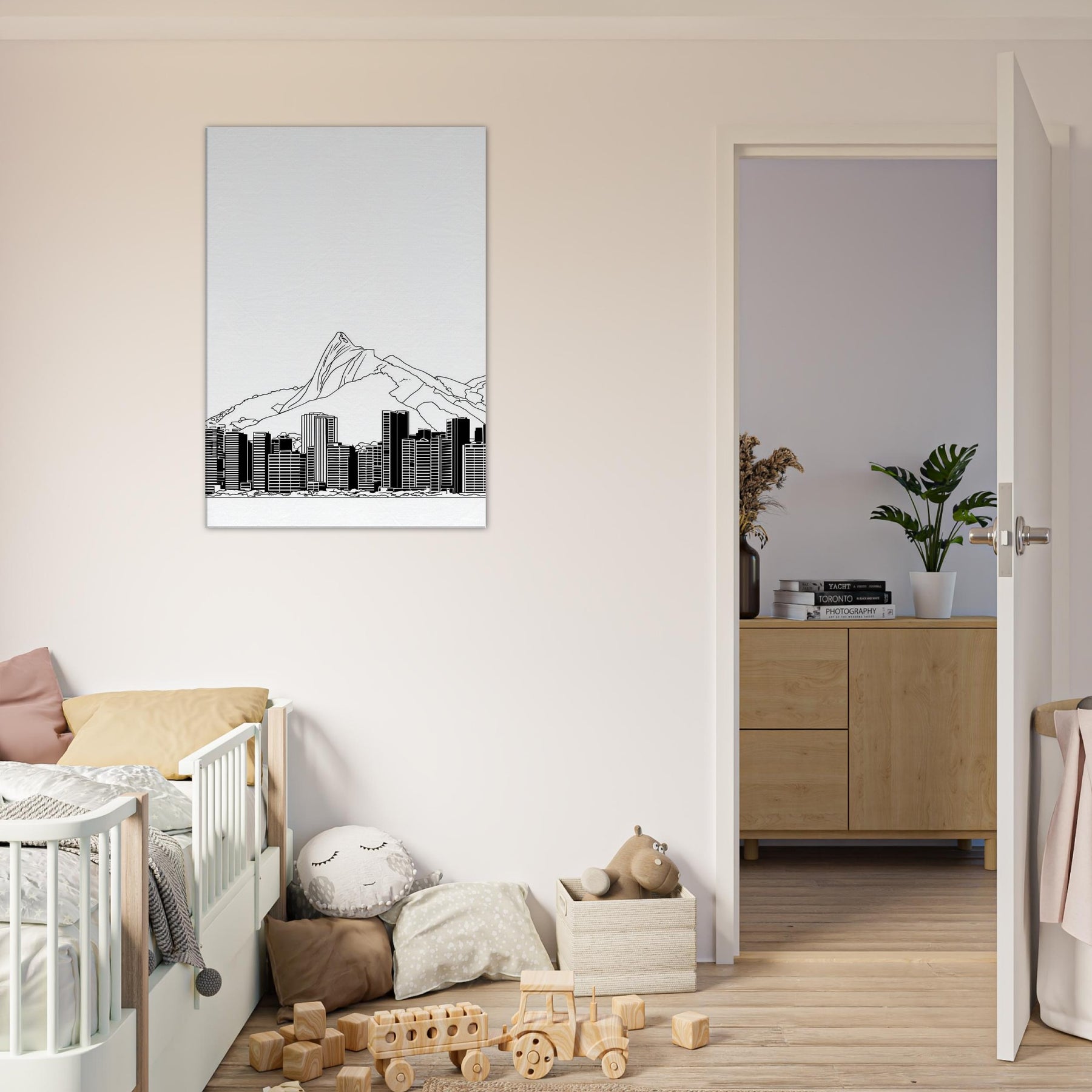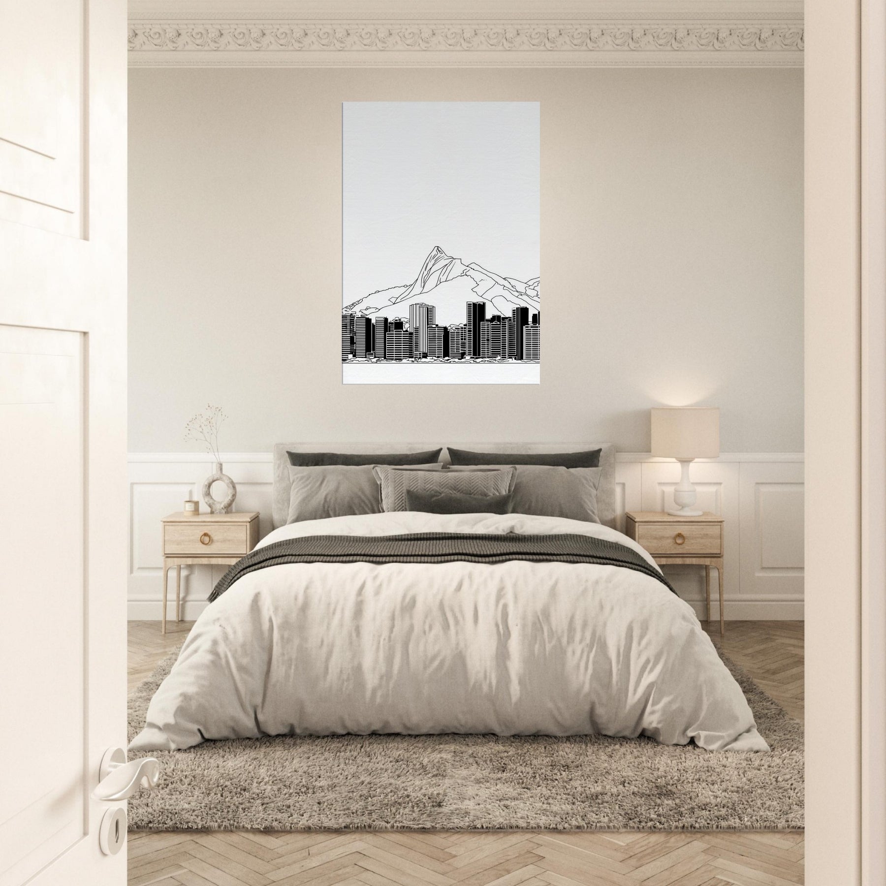 Rio De Janeiro rises in a clean line, a quiet ode to its dramatic coast and mountains. This minimalist depiction traces the city's silhouette in bold, continuous strokes, weaving modern towers with the legendary peaks that cradle the bay. The result is a calm, contemplative energy perfect for a living room, home office, or hallway where arrivals become arrivals of light. Hang it to invite the eye to travel from harbor to postcard peak, turning walls into a waking, wandering panorama.