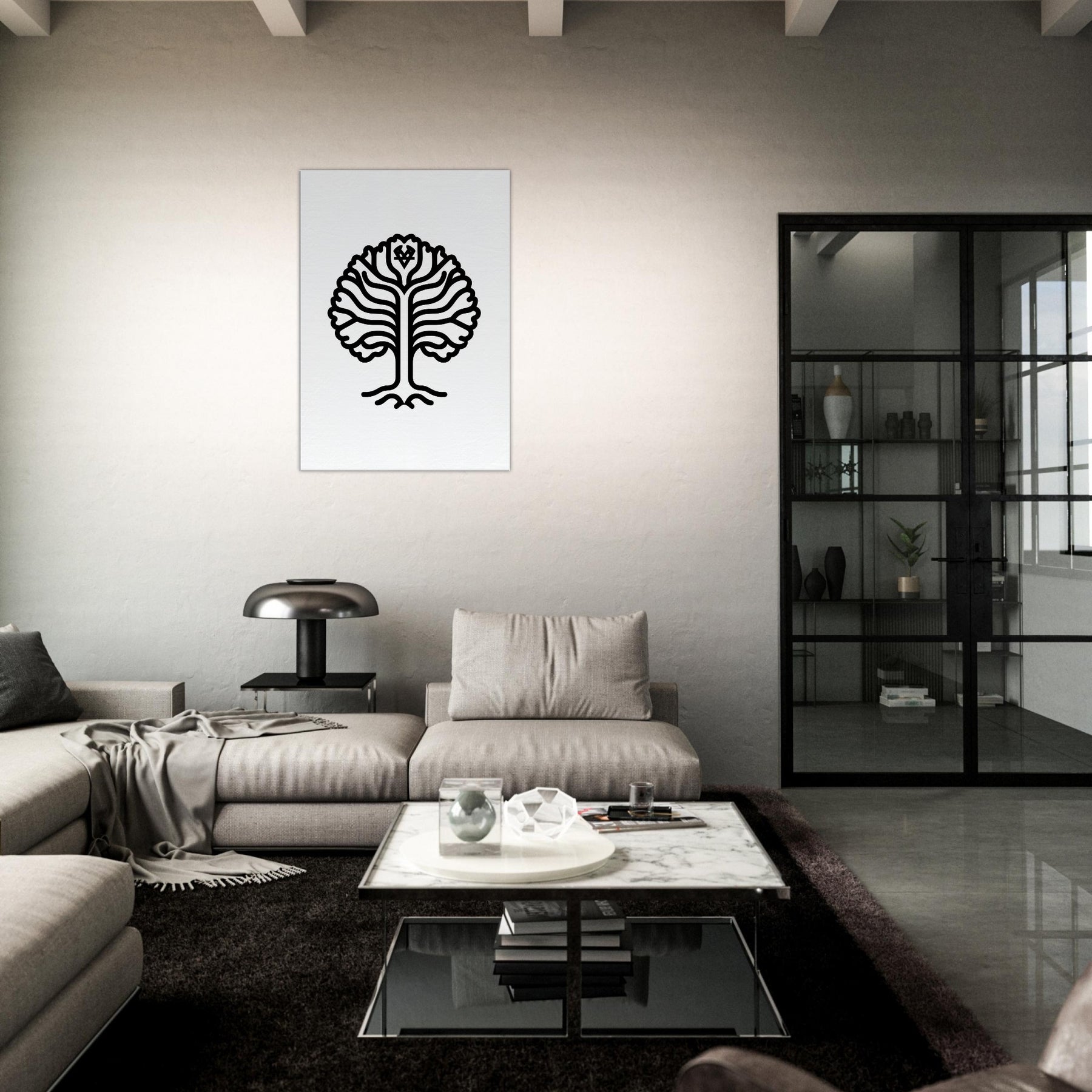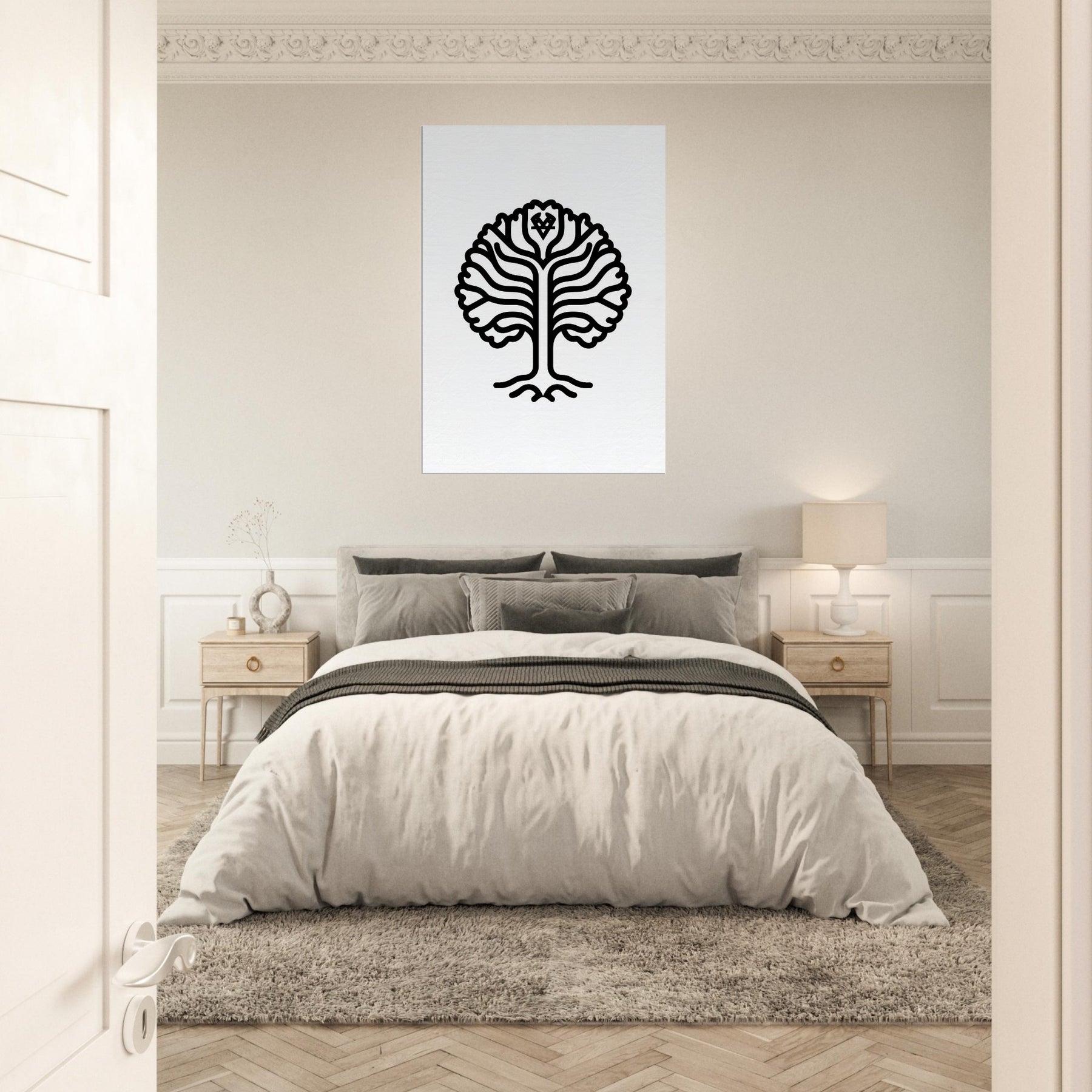An elegant silhouette of Yggdrasil, rendered in clean line work that invites quiet wonder into any room. The World Tree unfurls like a whispered incantation, its branches weaving a calm canopy that frames light and shadow with timeless grace. Perfect for a living room, hallway, or study, this mystical piece nourishes focus and reflection, transforming walls into a sanctuary. It invites slower breath, softer rhythms, and a sense of ancient connection an artful reminder that nature and myth can anchor everyday moments. The central subject is Yggdrasil (World Tree).