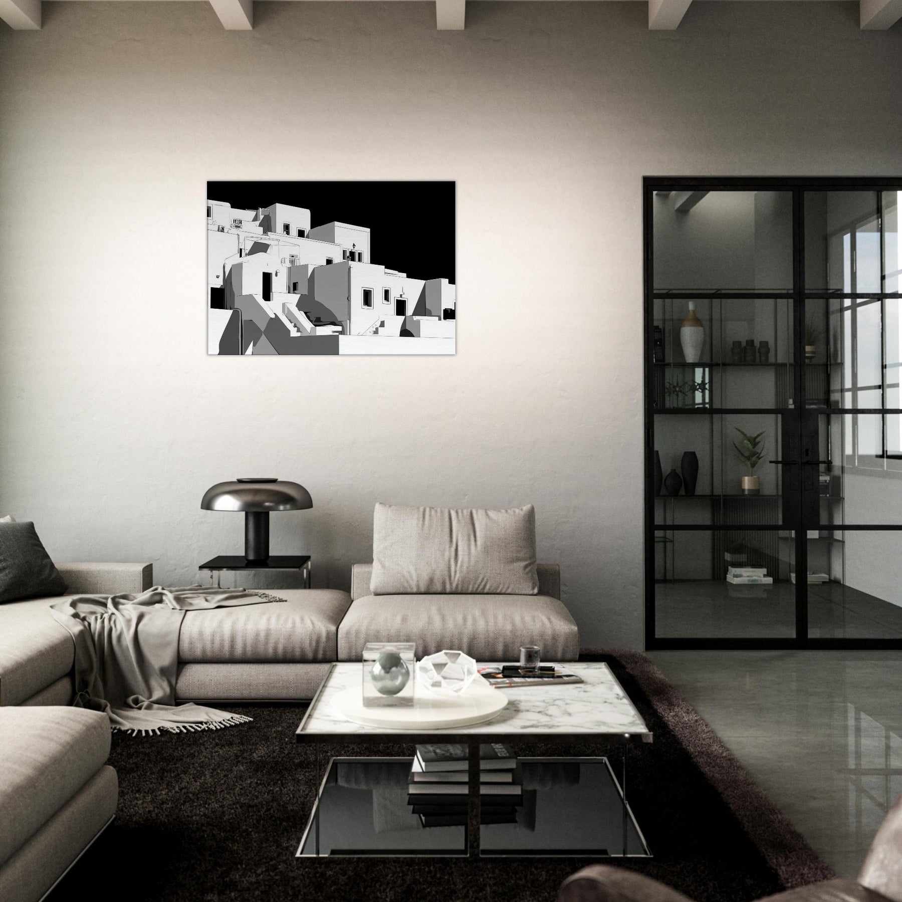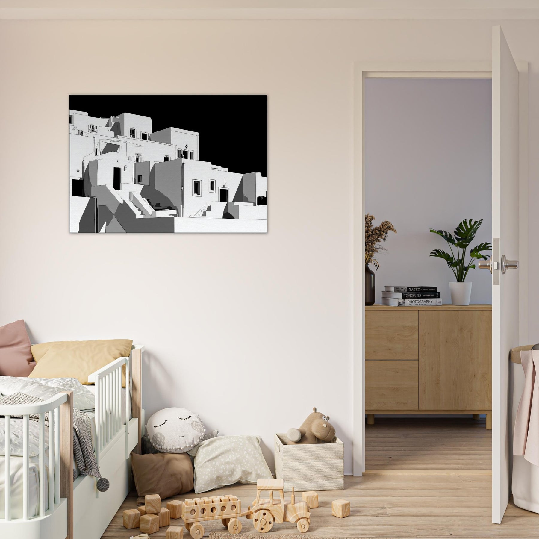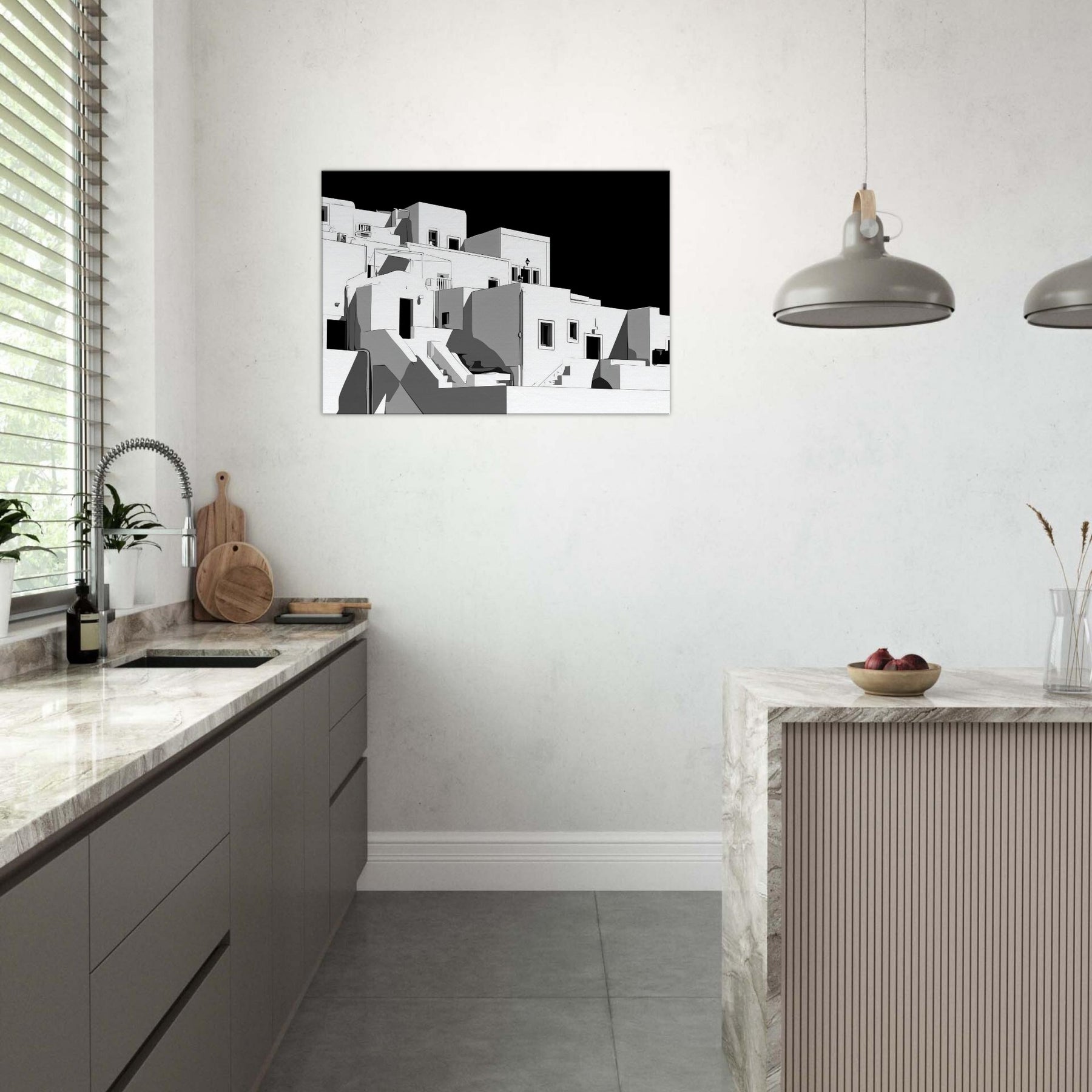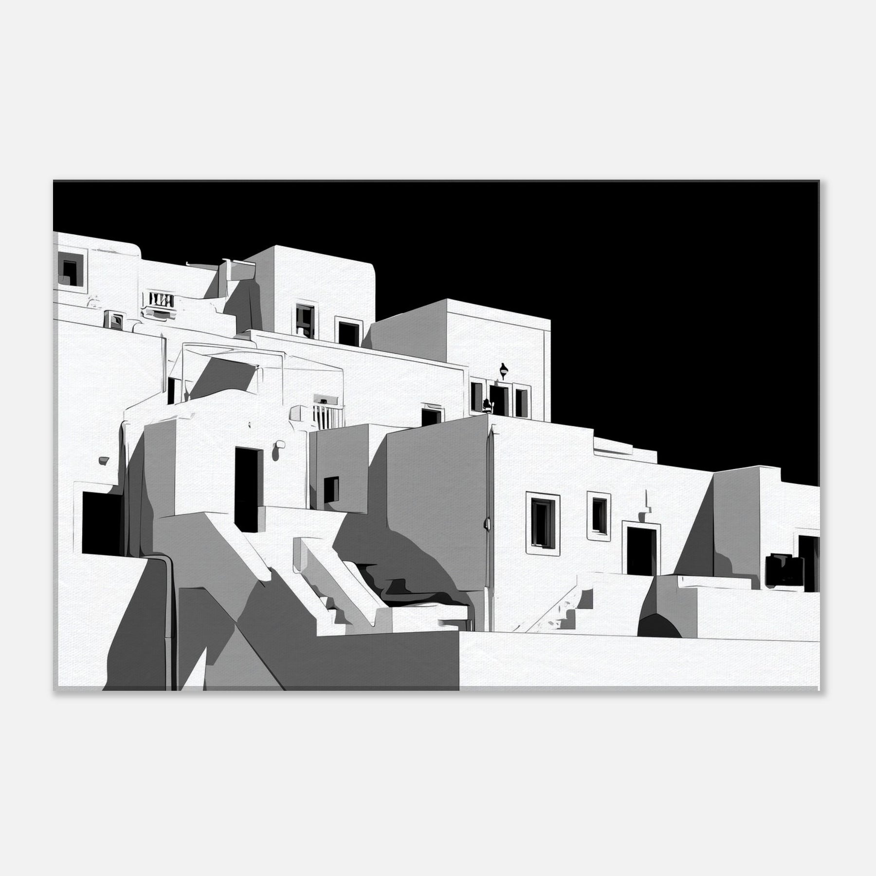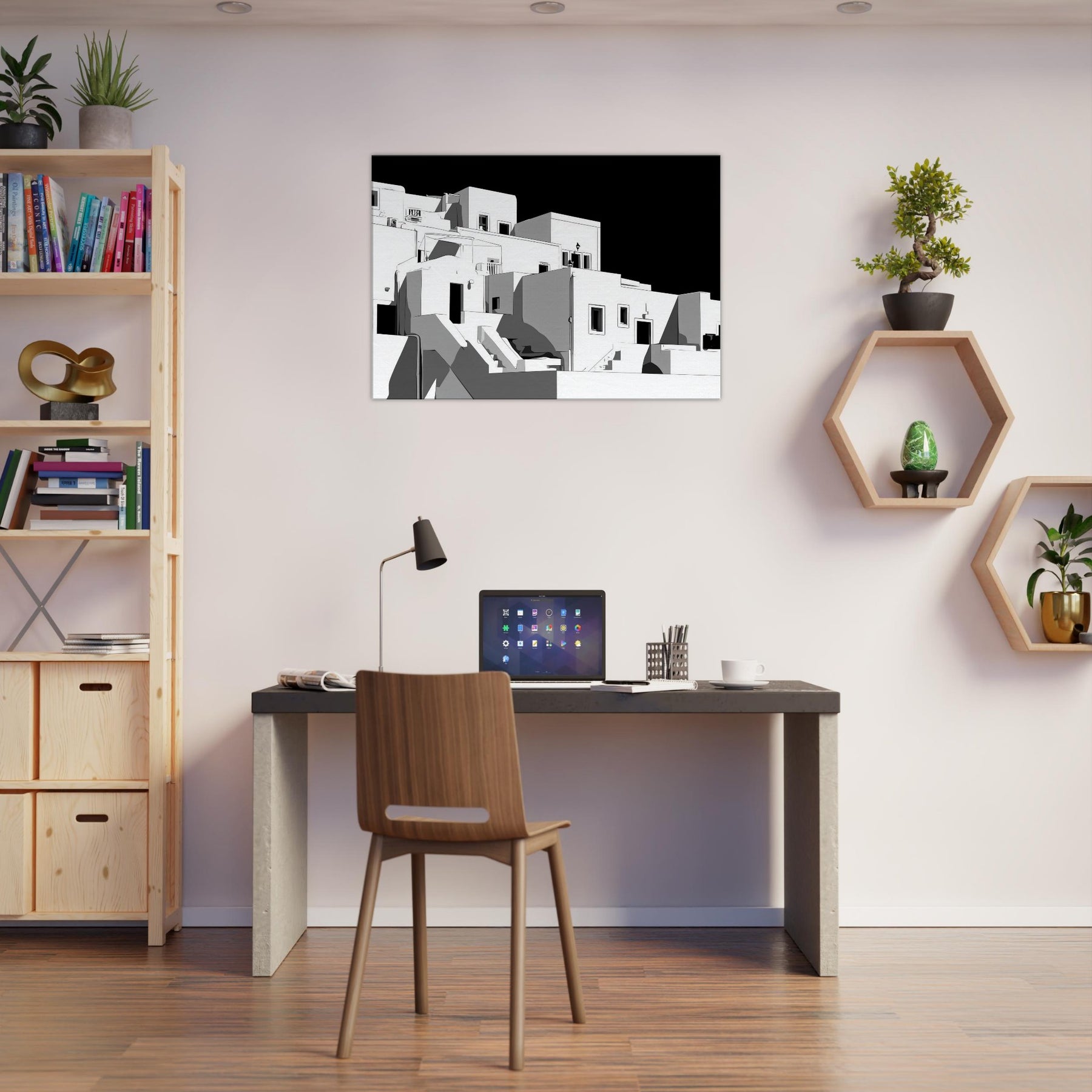 Immerse your living space in the serene geometry of Santorini, rendered as a refined line drawing. This piece captures the island’s crown of whitewashed steps, shadowed arches, and sun washed planes with quiet elegance. The high contrast black and white palette invites calm, while the crisp contours evoke Mediterranean breezes and long coastal horizons. Perfect over a console or in a reading nook, it adds architectural clarity and a sculptural breath, turning walls into a tranquil gallery of light and memory.
