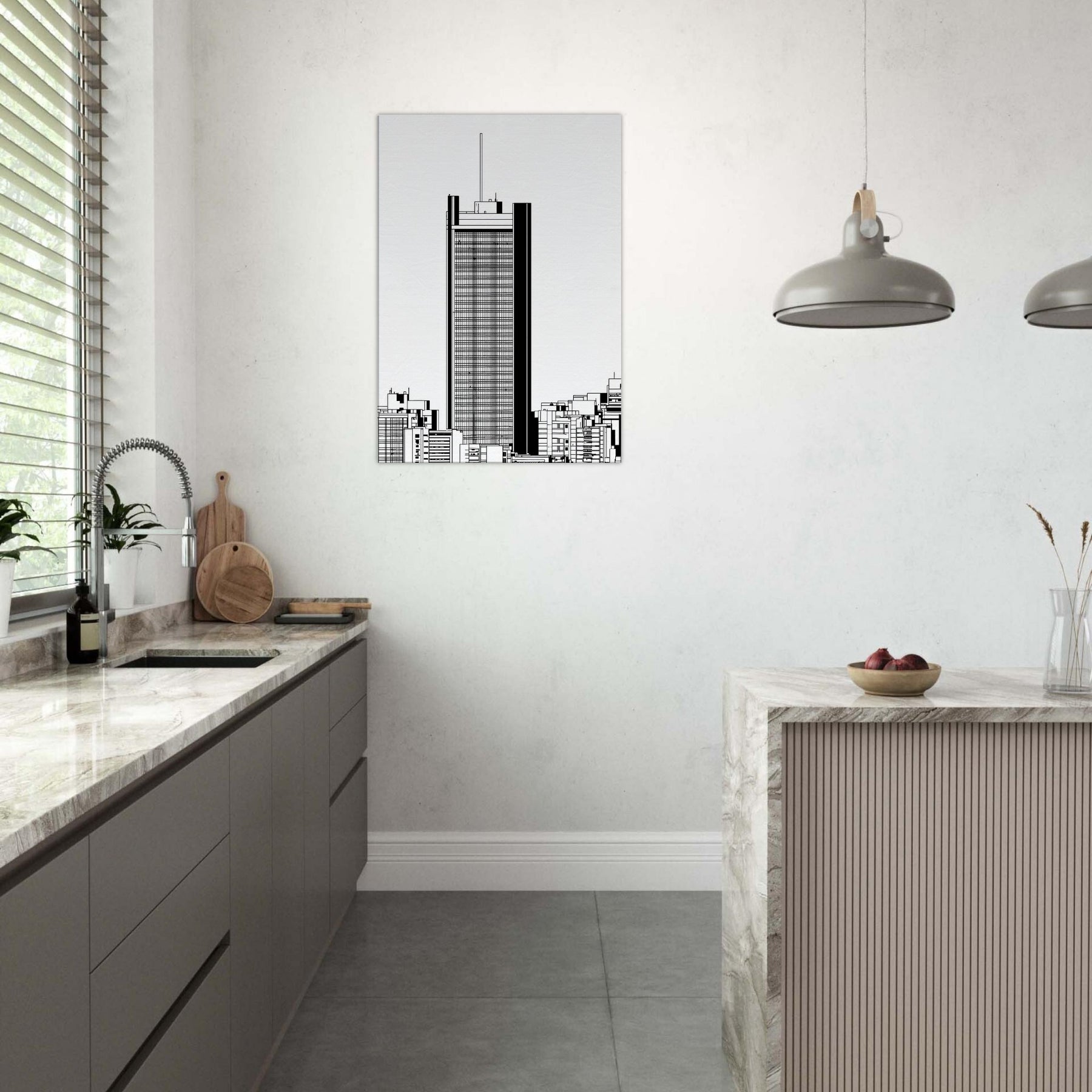 Rendered in precise black lines, this Sao Paulo skyline becomes a quiet meditation on scale and light. The towers rise with disciplined grace, while the grid below hints at motion and memory of the city that never sleeps. In a living room or home office, it invites calm focus and urban poetry, casting a poised, monochrome glow that pairs with warm wood or cool metal. A contemporary centerpiece that elevates any space.