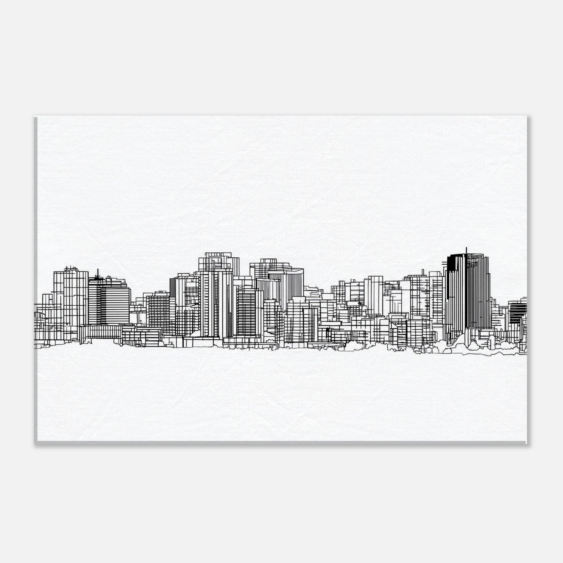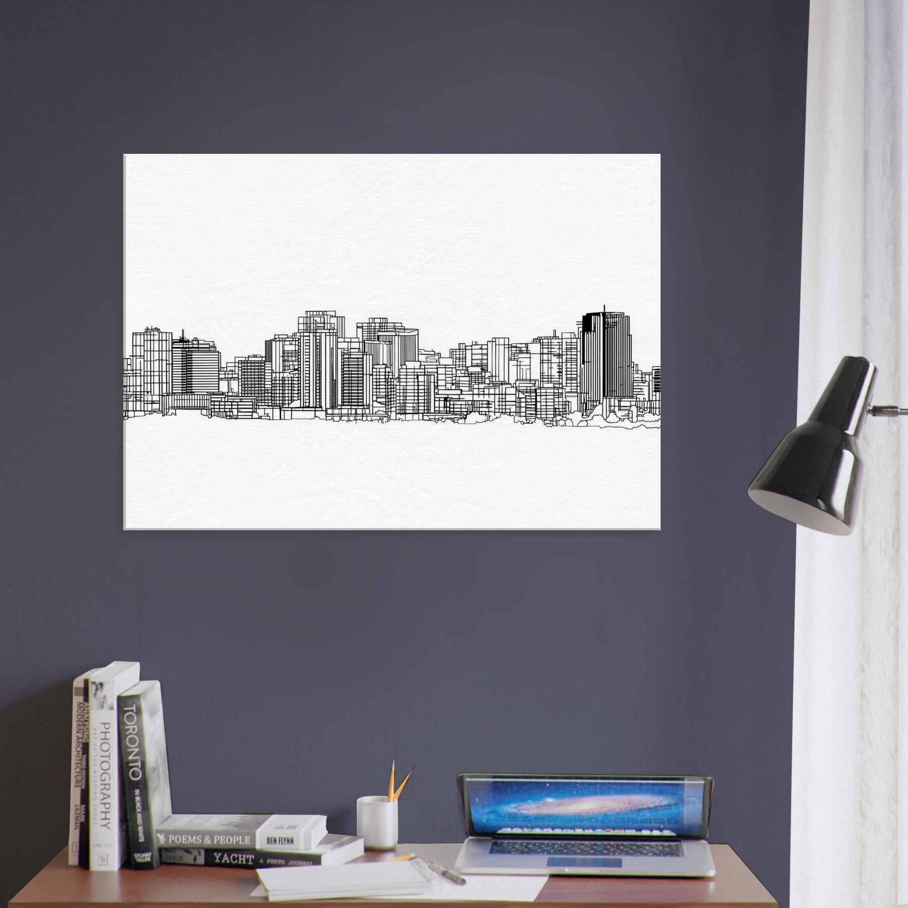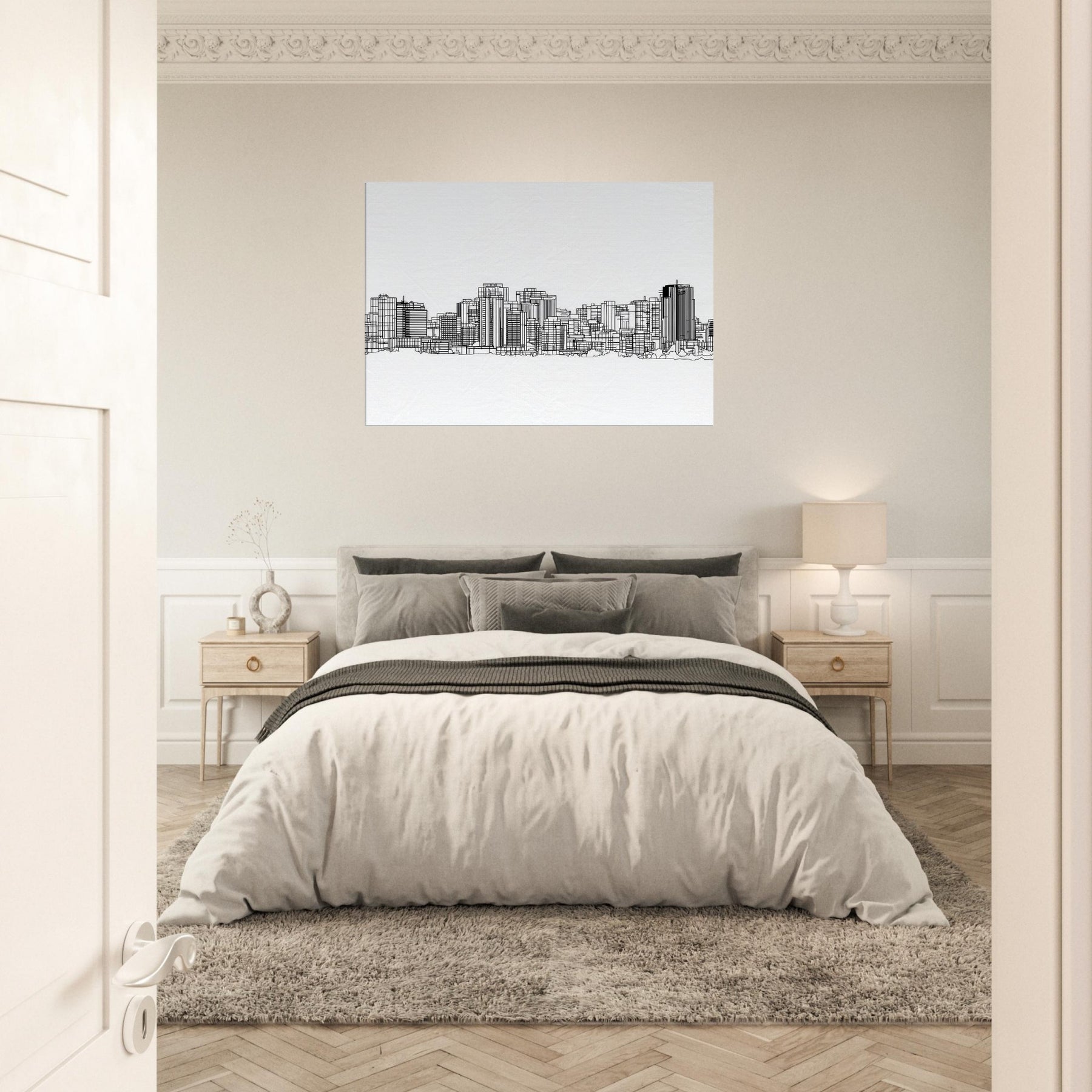 Stretched ink traces compose a breath of Sao Paulo, where rooftops sketch a nocturne of possibility. This line art cityscape moves with a quiet heartbeat, inviting the eye to wander along slender outlines and subtle gaps that suggest year round sun, rain, and crowded streets. Hang it in a living room or study and feel the room rise to meet the skyline calm, confident, modern. The stark black lines against white feels tactile in low light, turning walls into a drawing room for memory, coffee steam, and city salted air.