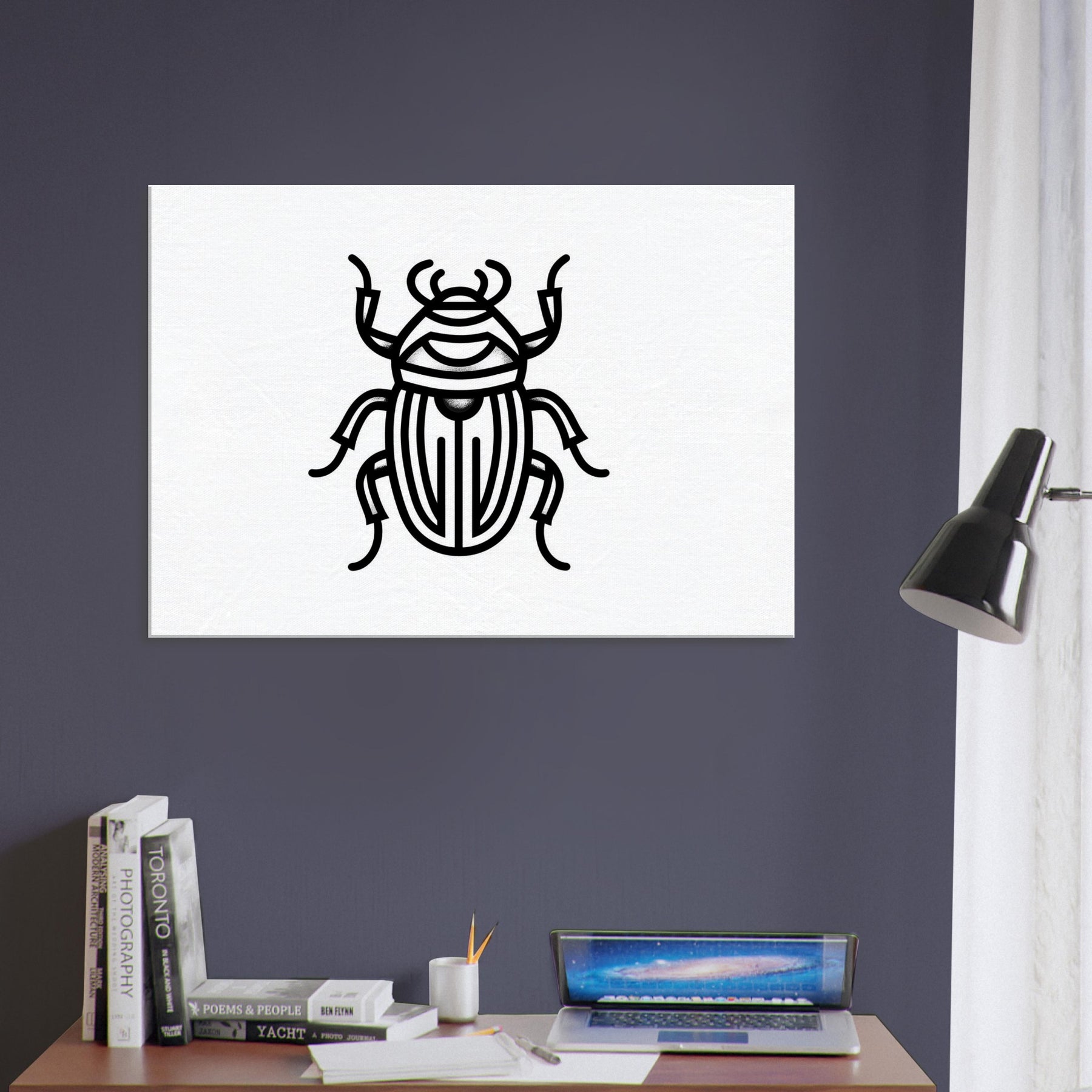 Delicate lines trace a mystical scarab in a study of balance and breath. This line art embodiment glides across your wall with quiet authority, conjuring ancient echoes and modern calm. The figure's clean curves, high contrast black on white, invite contemplation while soft negative space lets light dance around it. Hanging in a living room or corridor, it tends to slow the room’s pace, turning everyday moments into a ritual. Let the scarab become a beacon of focus, protection, and elegant minimalism.
