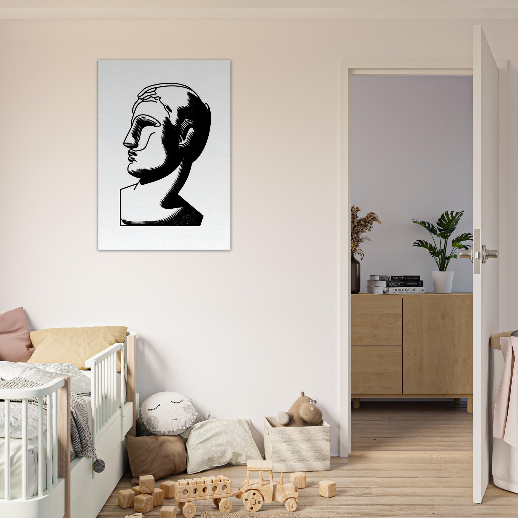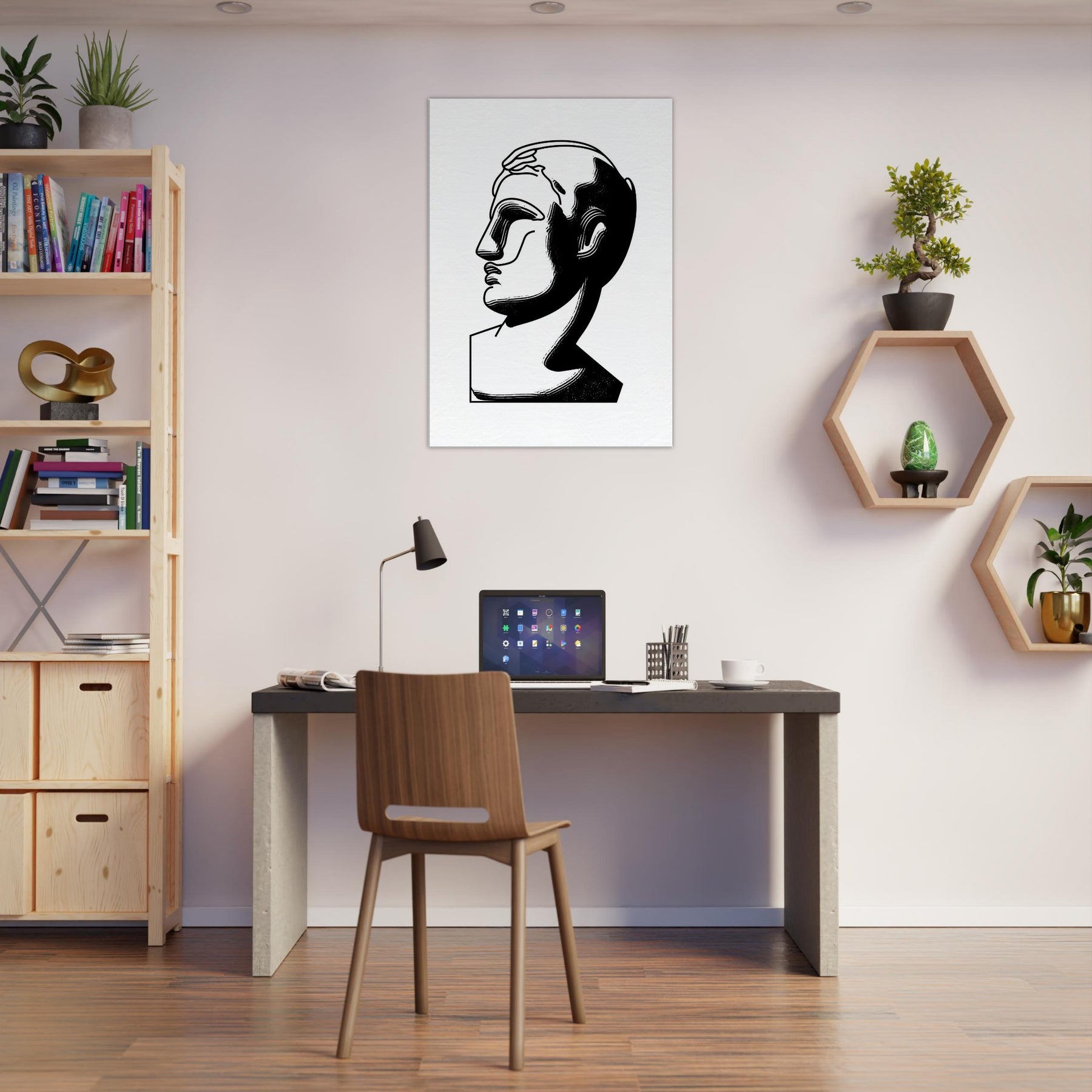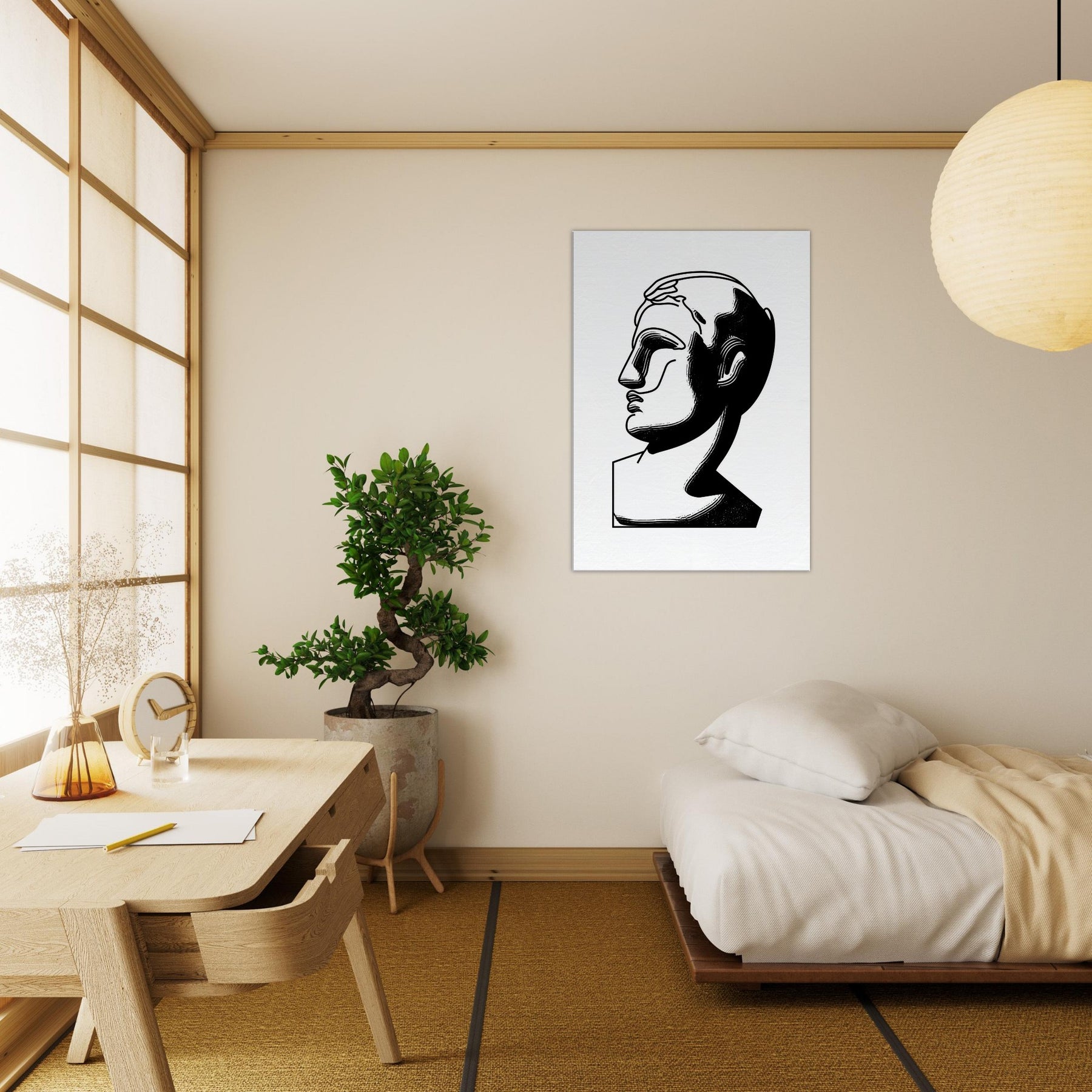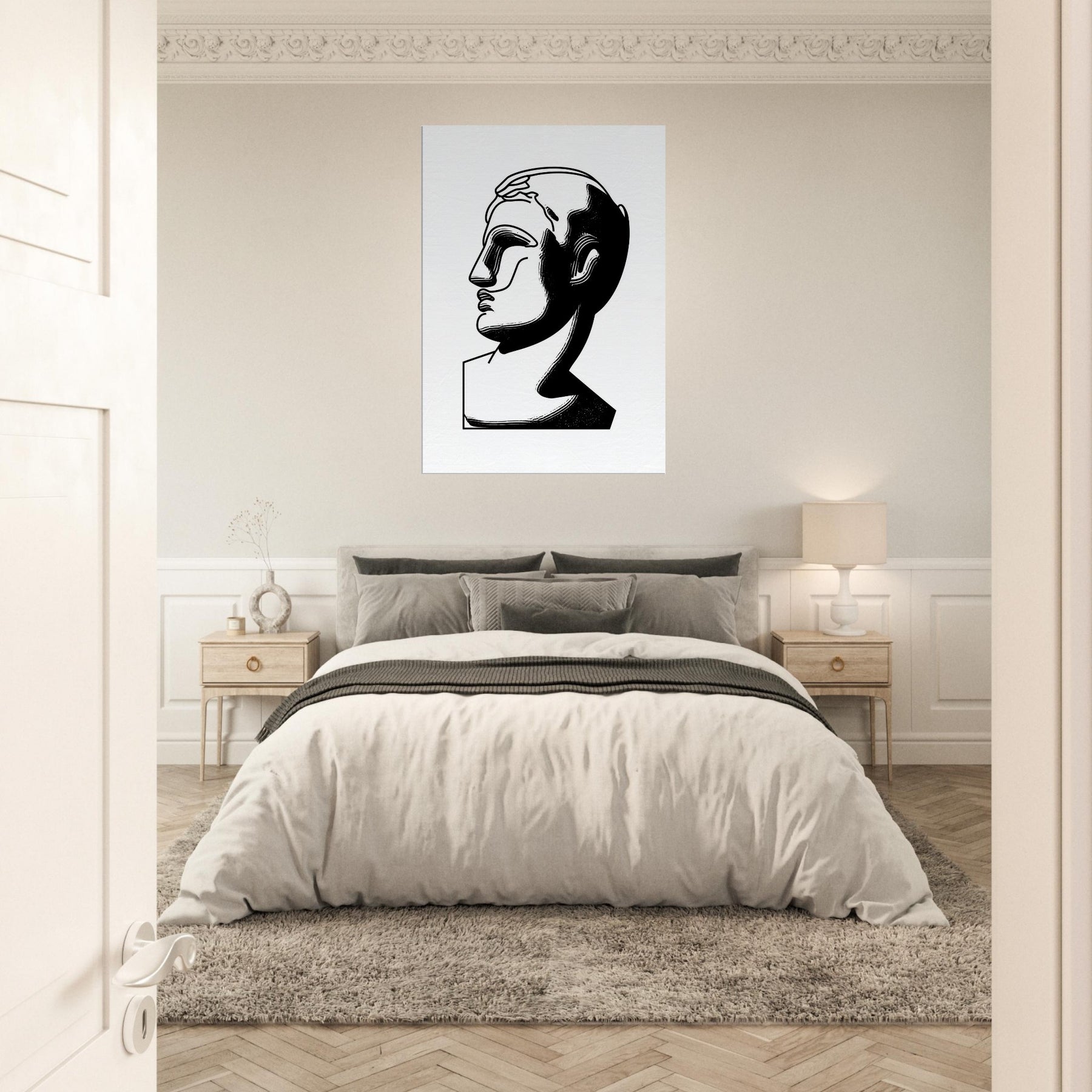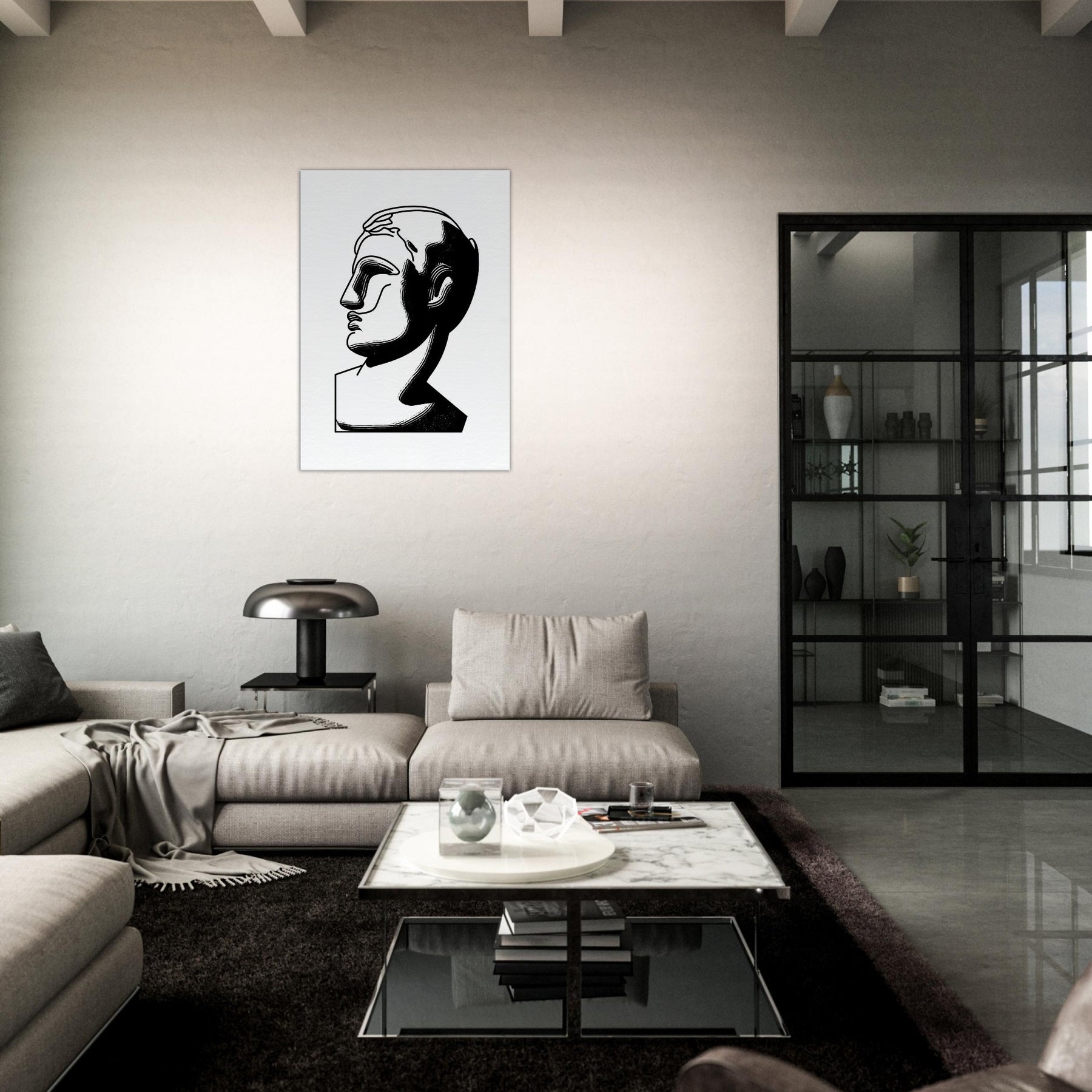 Centered on the Sculptural Bust the primary subject this line art study asserts presence with clean, confident strokes. The bold black and white contours sculpt atmosphere, inviting a quiet, contemplative mood into any room. Hang it where light softens the edges and negative space becomes a quiet chorus; the piece lends timeless grace, refined energy, and a subtle drama to living spaces. Every glance feels renewed.