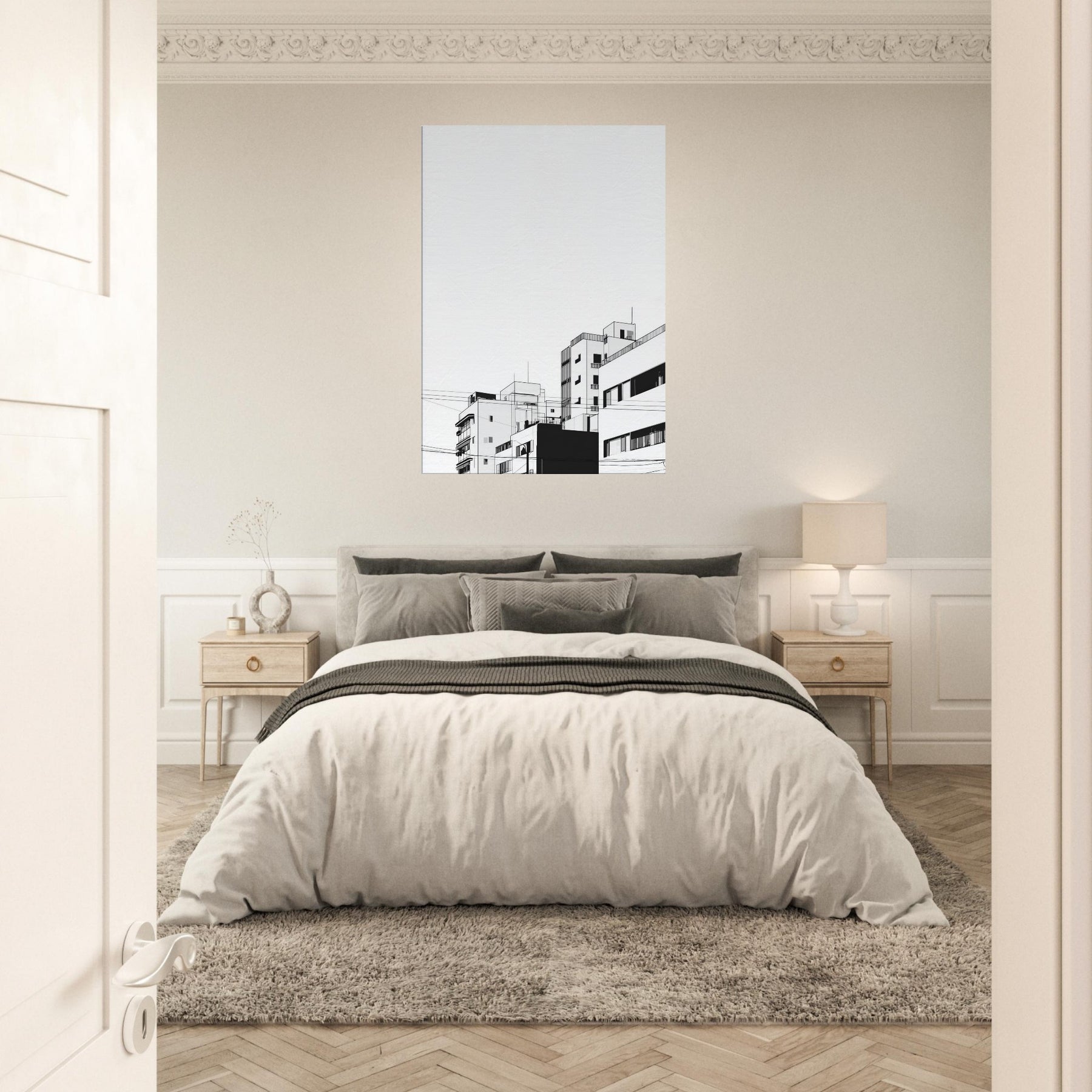 Seoul unfolds in graceful lines, a quiet cityscape of towers, bridges, and rooftop horizons drawn with practiced simplicity. This composition invites the room to breathe, offering an airy silhouette that glows with understated drama. The stark black and generous white space enhance textures from warm woods to cool metals while the memory of Seoul lingers like a soft hum of city life. Hang it in a living room or bedroom to frame conversation, transform walls into calm horizon, and elevate everyday moments with urban poetry.