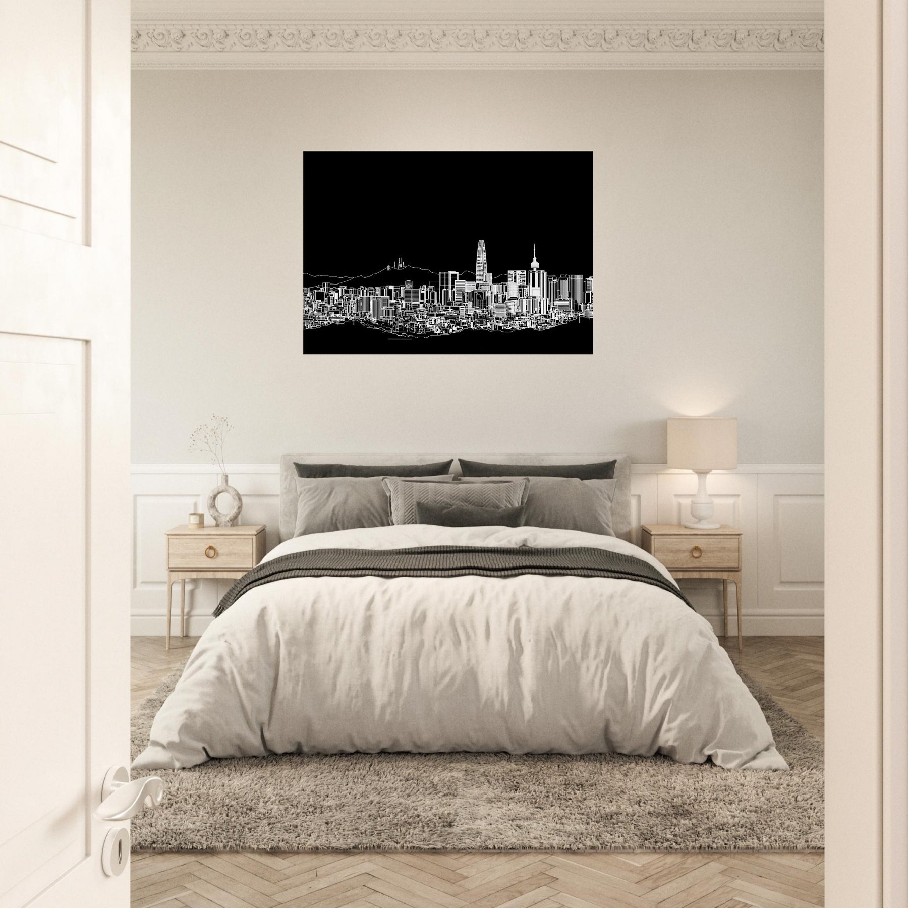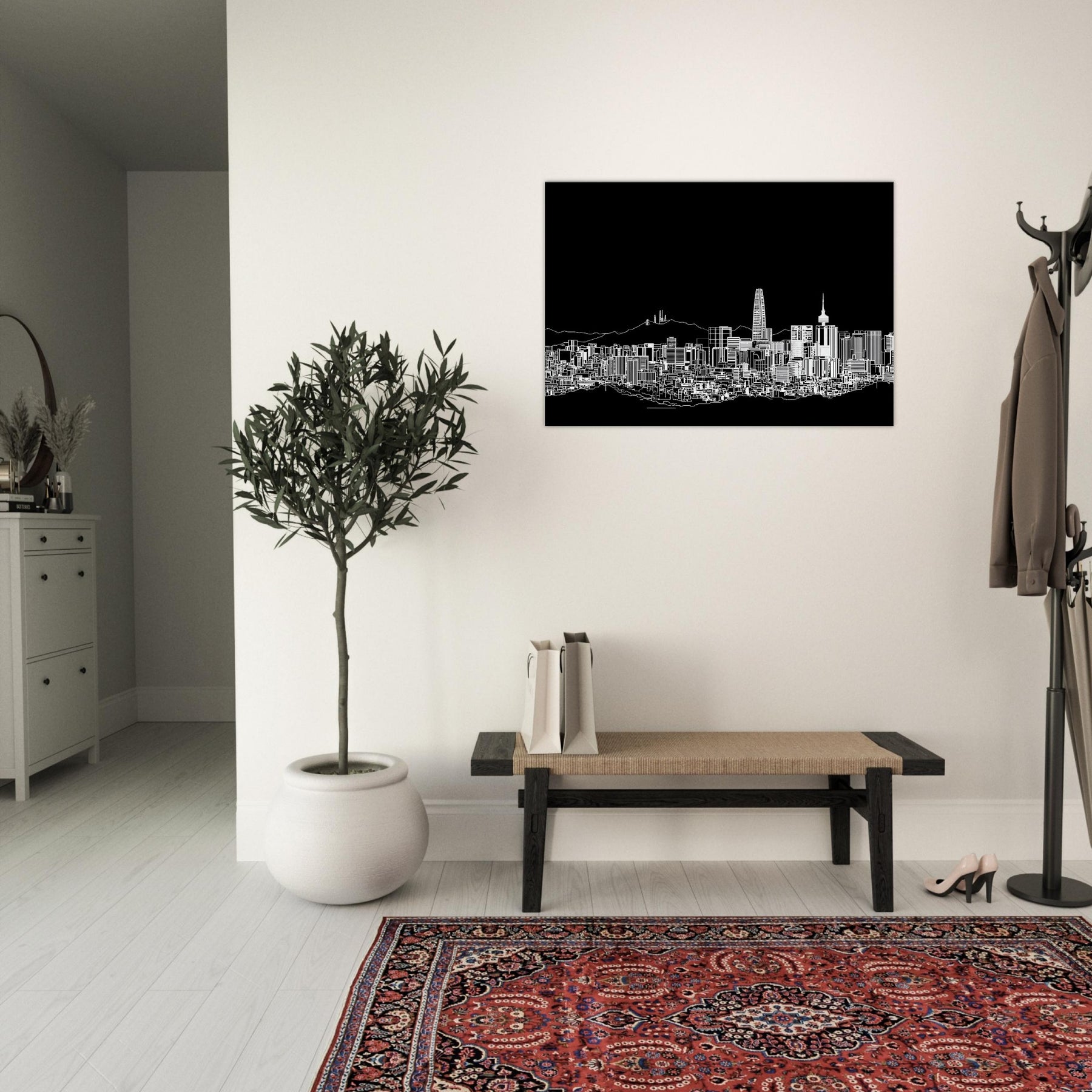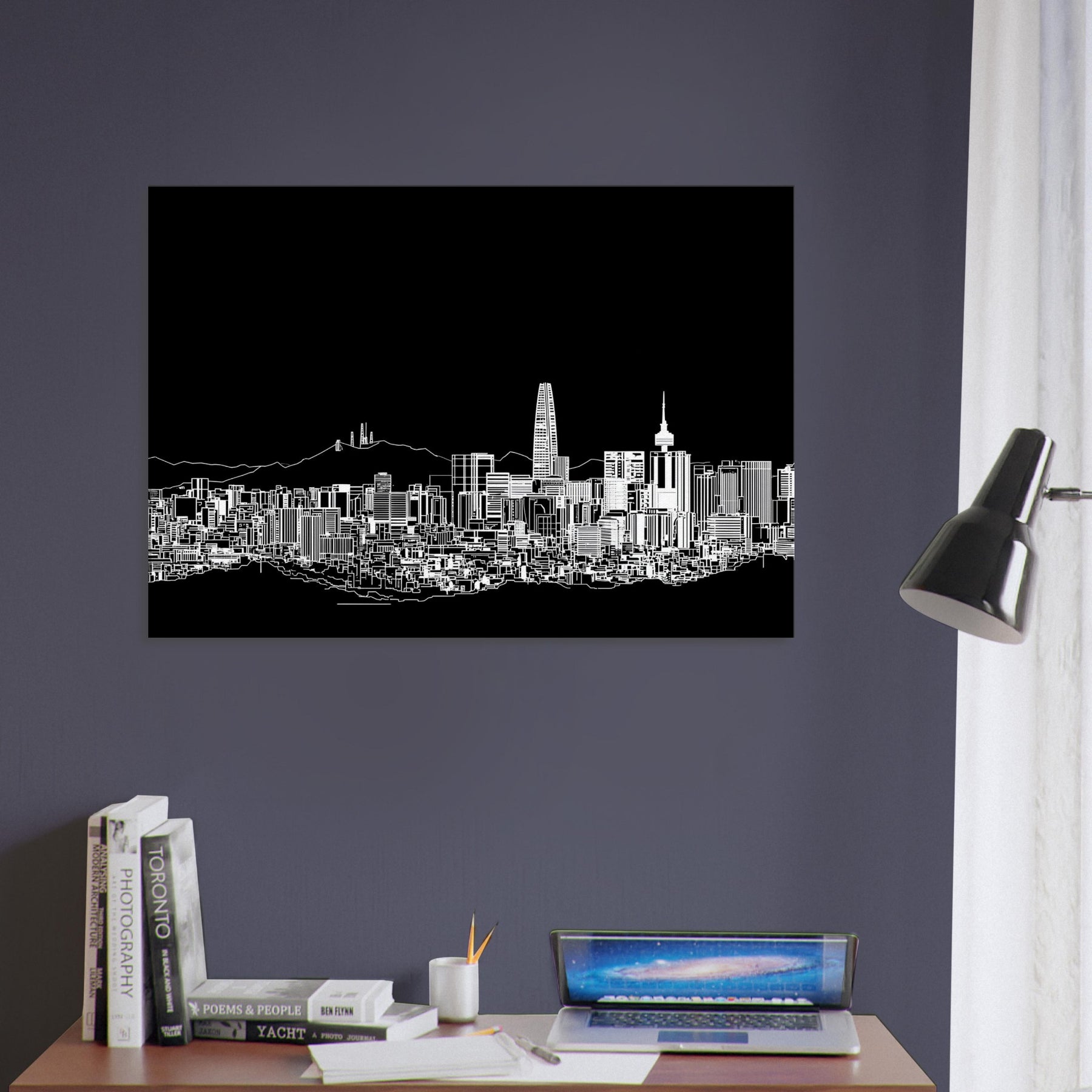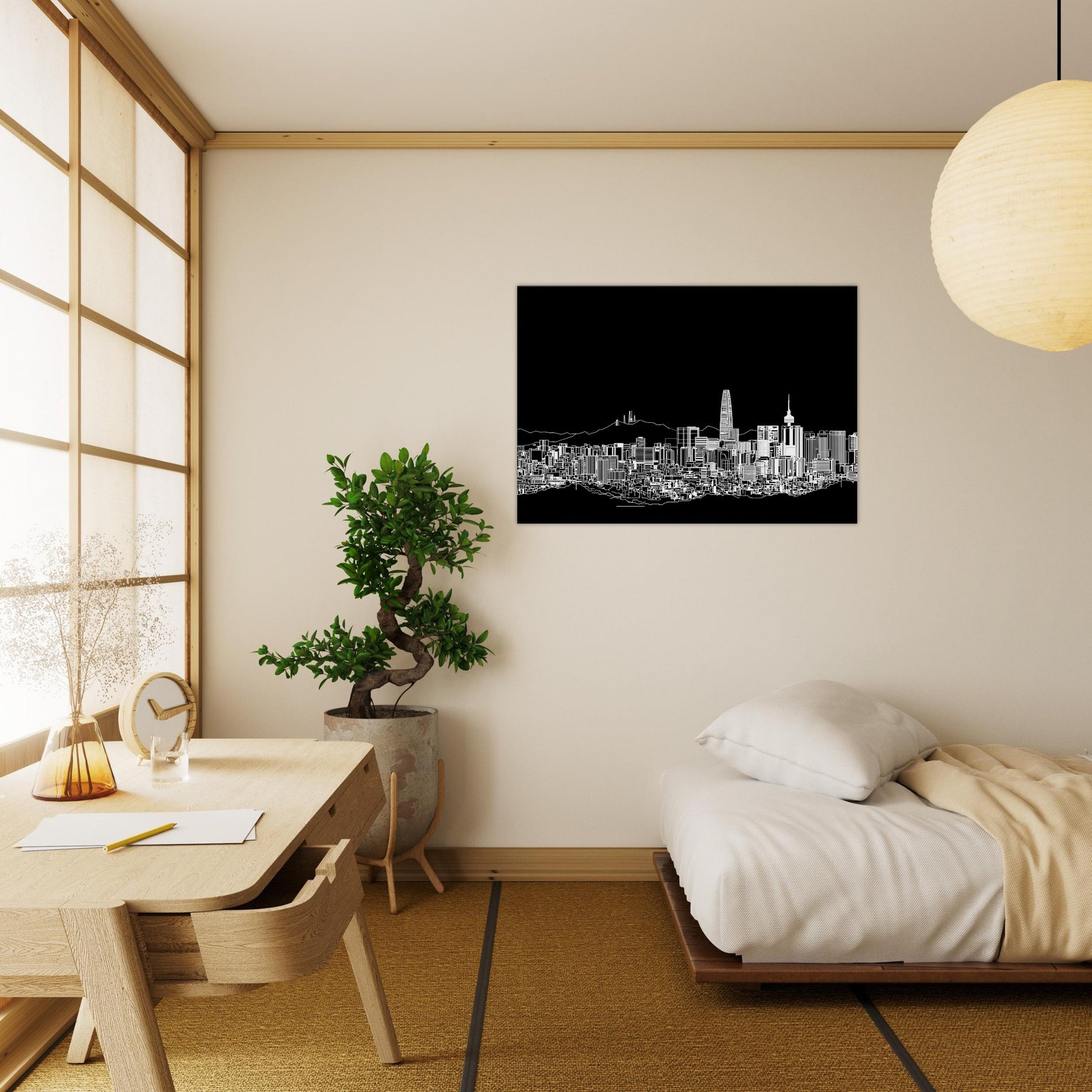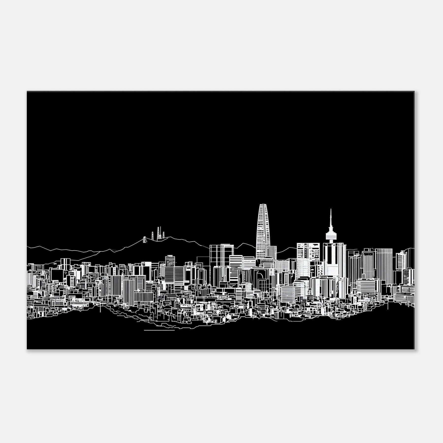 A quiet city poem in line: Seoul rises in elegant contour, its towers and streets sketched with precise mercy. The black backdrop holds the glow of dawn as white lines trace bridges, hills, and skyline, inviting calm focus into a living space. This minimalist drawing breathes sophistication into a room, turning ordinary moments into a travelogue of memory and motion. Hang it above a sofa or in a hallway to feel the city's rhythm without shouting subtle, sculptural, and endlessly inspiring.