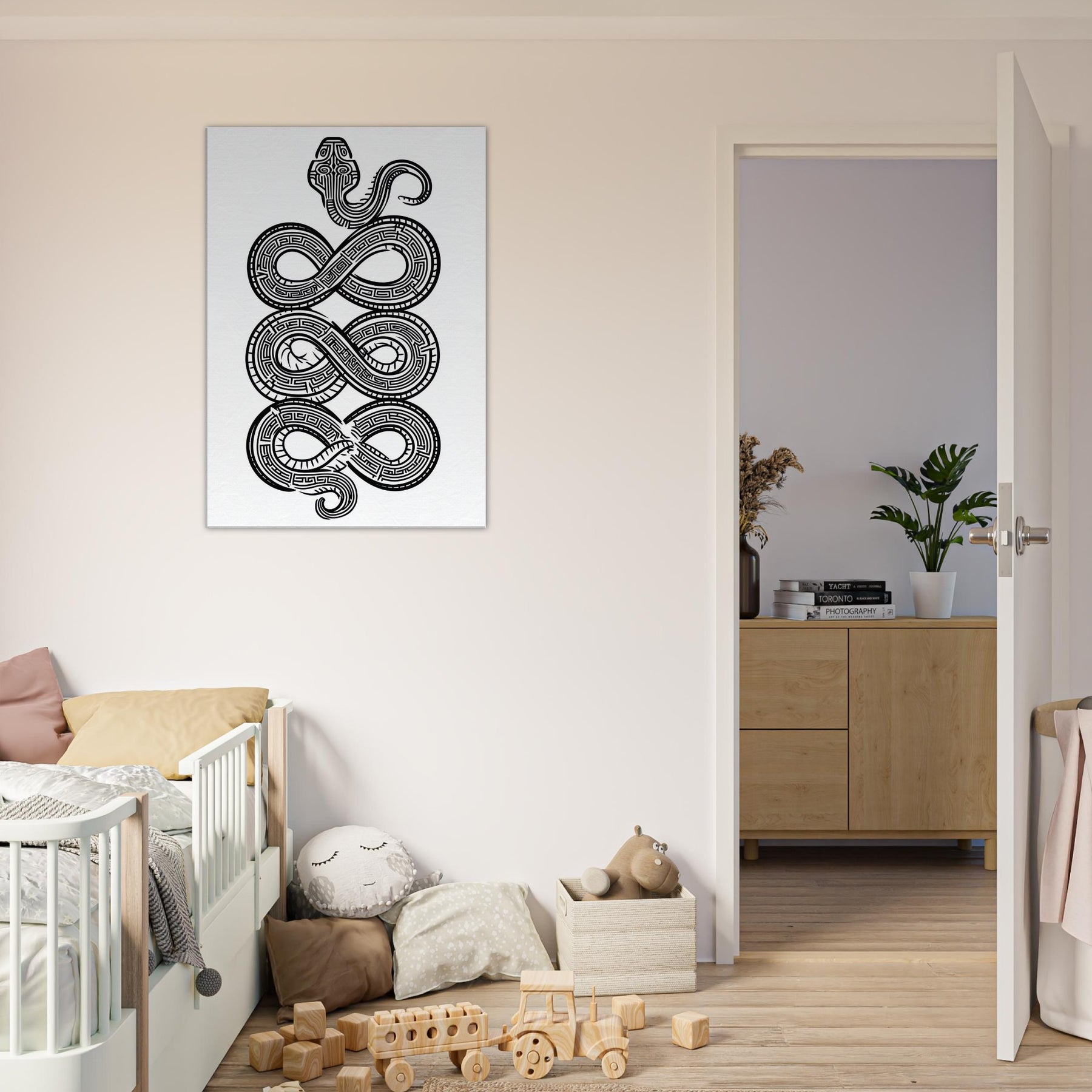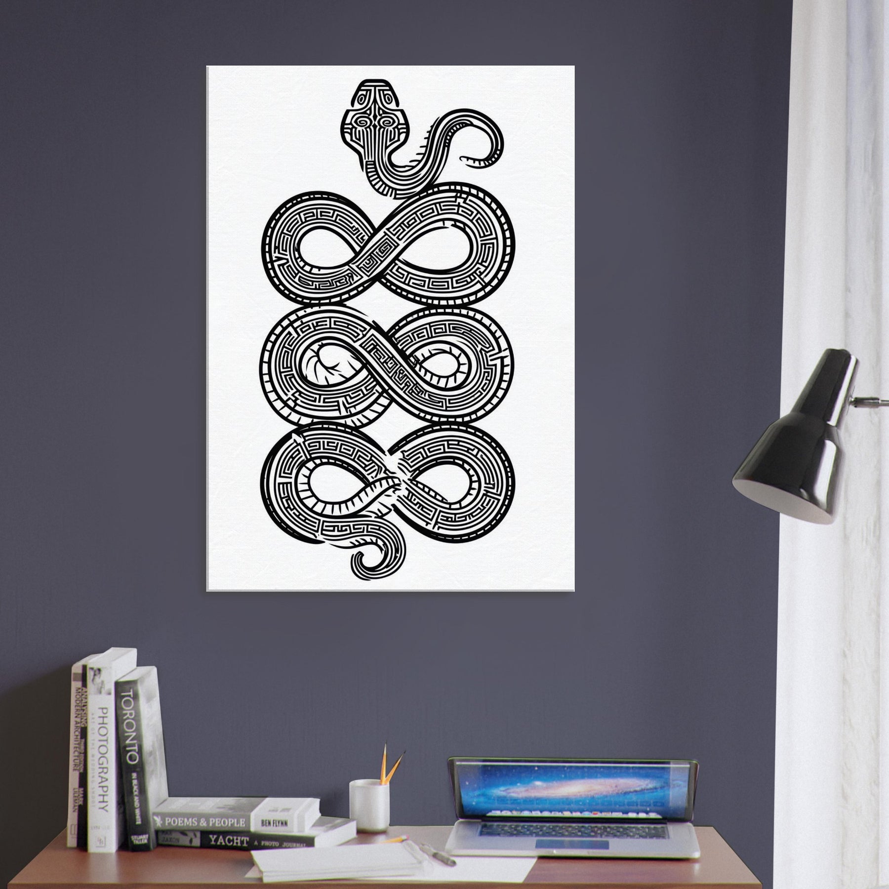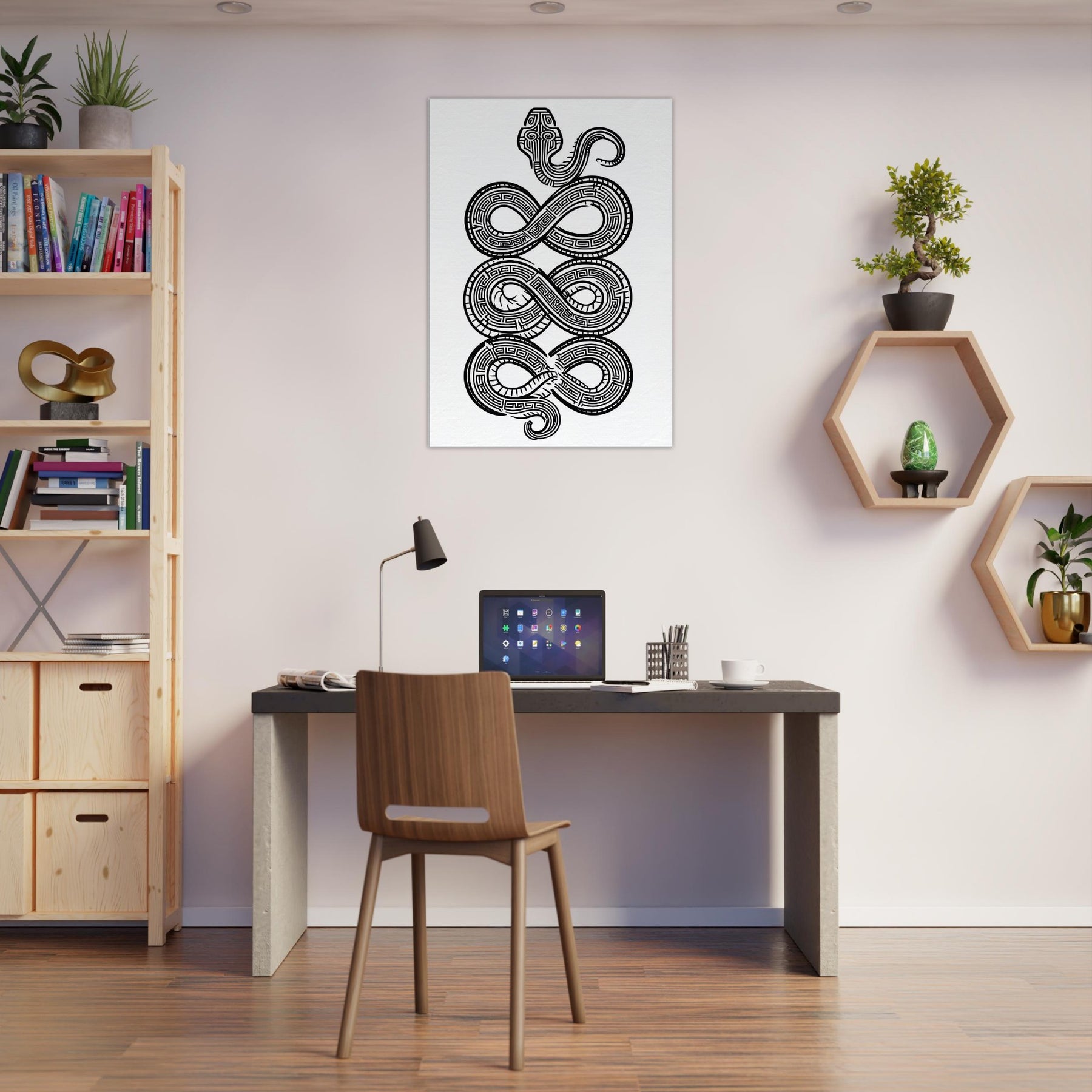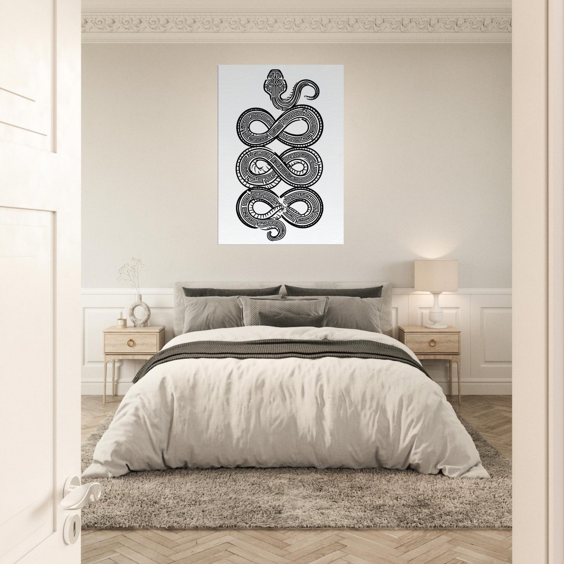 Let the Kundalini Serpent rise through your room, a quiet current of motion sketched in clean lines. This line art study moves with breath each loop a soft inhale, each twist a deliberate exhale creating a sanctuary of focus and flow. The stark black on white captures a luminous rhythm that anchors a sofa corner or bedside wall, inviting quiet contemplation and creative energy. In its disciplined curves, the Primary Subject summons ancient wisdom into contemporary space, turning void into a doorway for mindfulness and subtle magic.