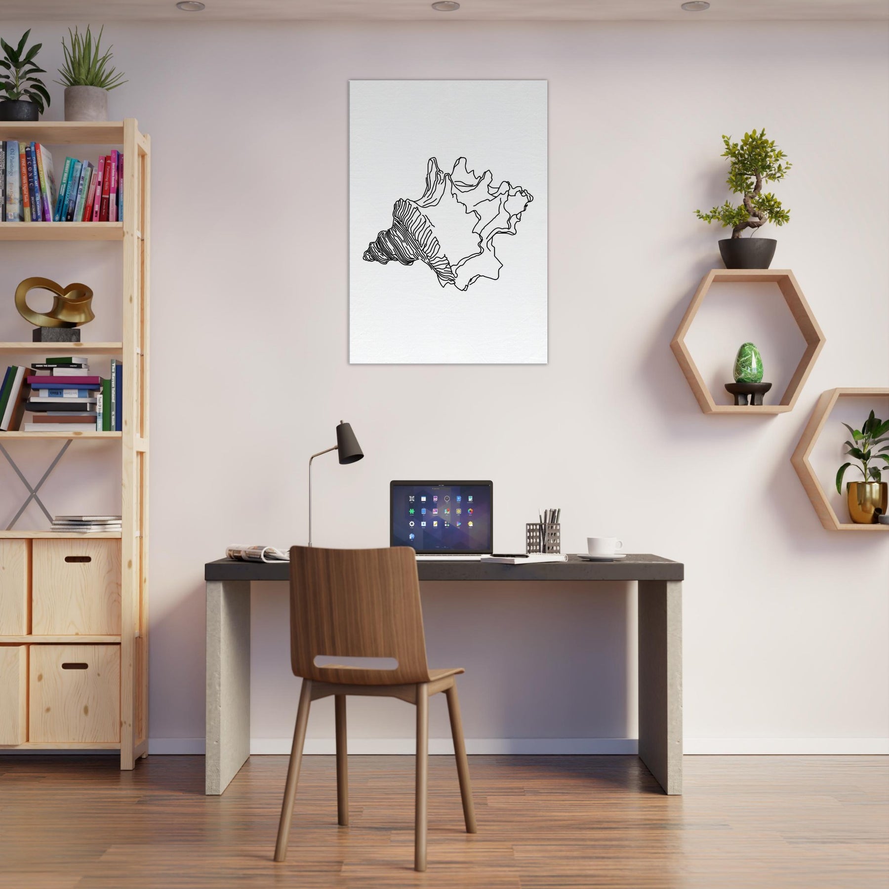 Like a quiet footstep by the shore, this Seashell emerges in clean line art uncluttered, poised, and timeless. The unbroken black contour invites the eye to wander along its ridges, capturing the memory of wind washed sand. Placed in a sunlit study or a tranquil bedroom, the piece lends calm and clarity, turning walls into a horizon of negative space and implied motion. It's an invitation to pause, breathe, and listen to the room’s quiet pulse where nature’s form becomes art that softens, elevates, and anchors the space.