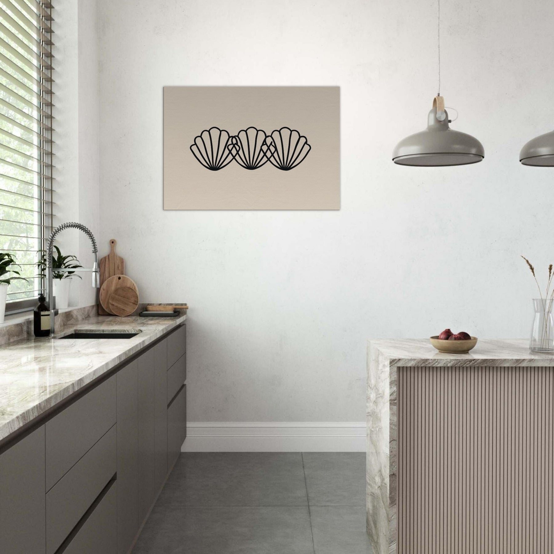 An elegant whisper of the sea, Seashells Trio unfolds in clean line and soft scale. This threefold silhouette curves into a quiet rhythm, inviting light to wander along its black contours against warm beige. The piece balances restraint with movement, turning any wall into a shoreline memory perfect for a living room, hallway, or serene workspace. Its timeless simplicity complements modern neutrals while echoing coastal calm, transforming the room into a sanctuary where texture and tone mingle in graceful, contemplative mood.