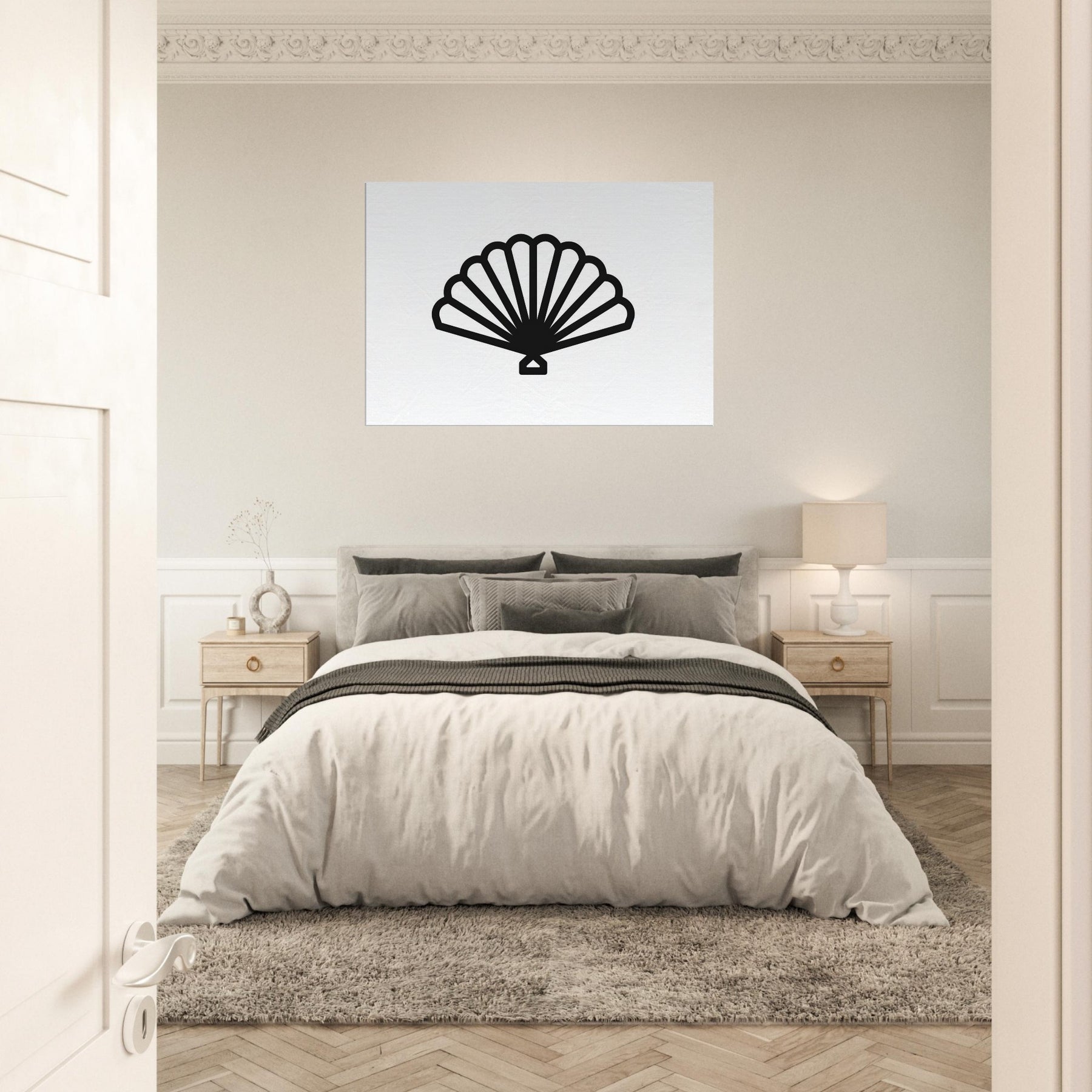 An elegant hand fan comes to life in clean line art, its radiating spokes suggest a breeze of quiet grace. The bold silhouette sits against a soft, breathing air of space, inviting the eye to travel along each arc with ease. In a sunlit living room or a calm hallway, this piece adds atmosphere without shouting, pairing beautifully with natural textures and muted palettes. It turns bare walls into a serene backdrop for moments of stillness and inspiration.