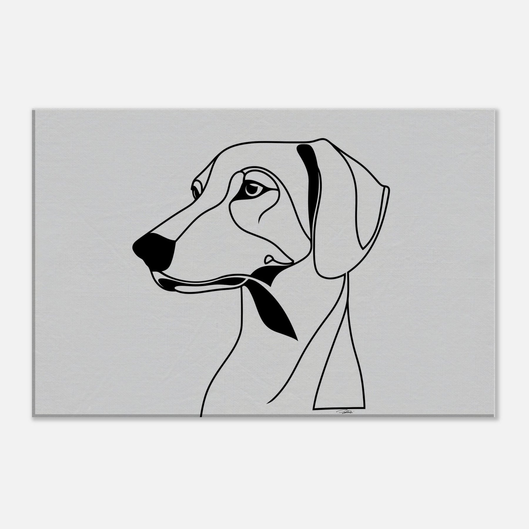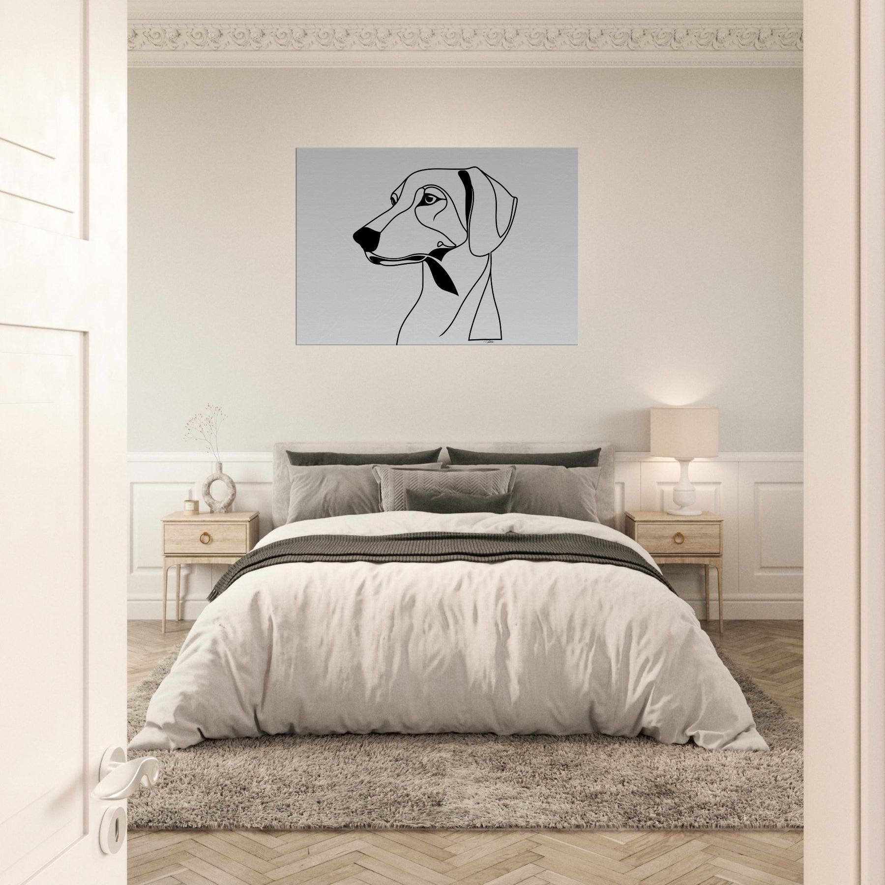 Immerse your space in the quiet dignity of this minimalist study of a dog. Painted with a single confident line, it captures character with restraint: the gaze, the fold of an ear, the sweep of the neck become poetry in black on pale. The result is both calm and intimate, a subtle reminder of loyalty and companionship. Hang it in a living room or hall to soften angles, invite reflection, and invite natural light to play across its clean, modern silhouette.