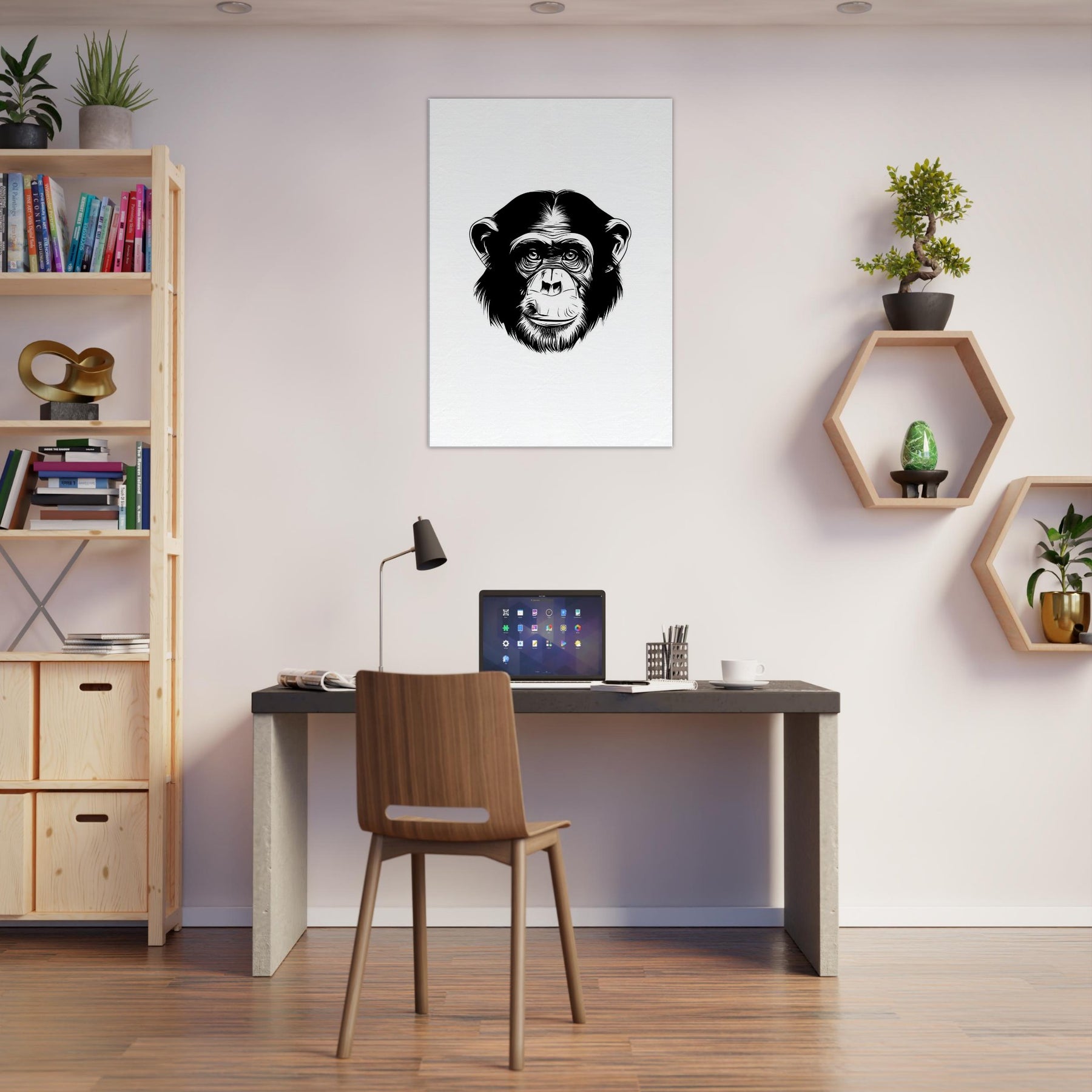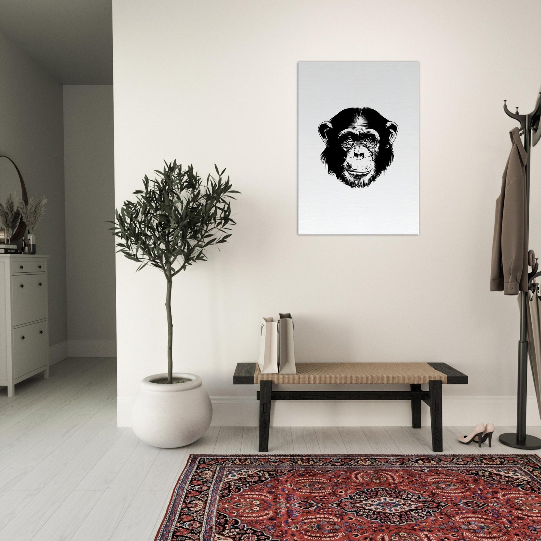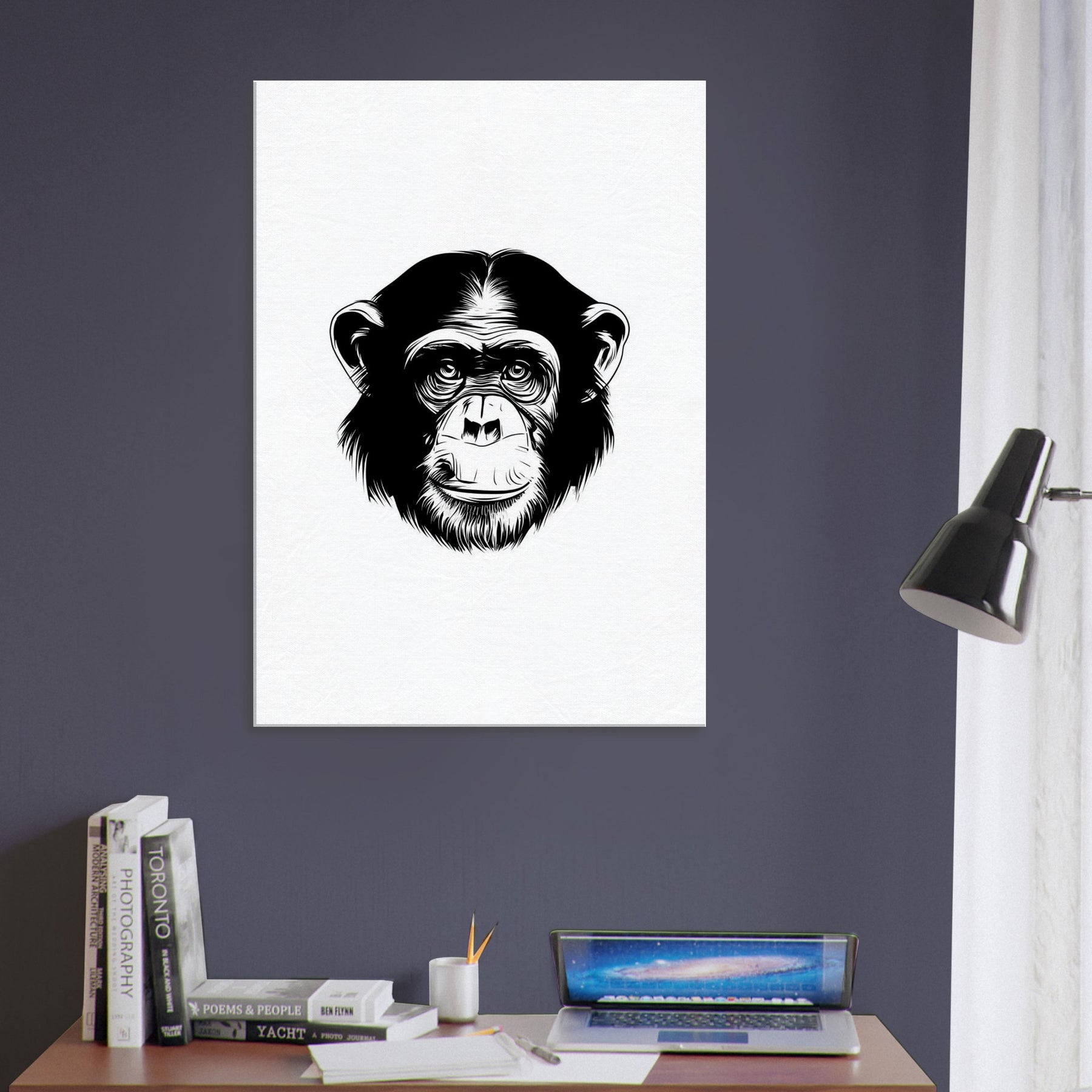 An elegant monkey drawn in crisp black lines, this piece carries a quiet, intelligent presence. The pared back form invites the eye to trace every curve, capturing warmth, curiosity, and a subtle wit. In a living room or hallway, it softens hard edges and adds a thoughtful focus without overwhelming the space. Printed on clean white, it pairs beautifully with natural textures and soft lighting, turning a wall into a calm, inviting gallery moment.