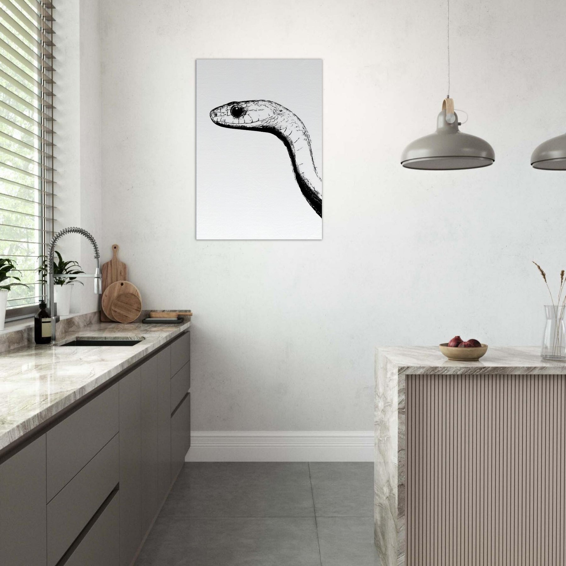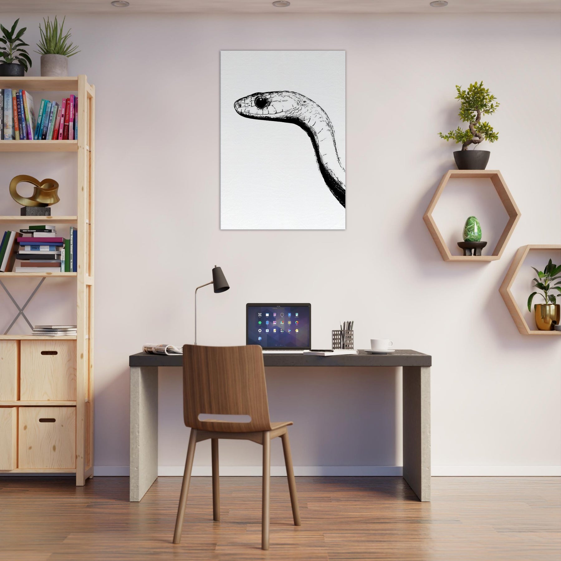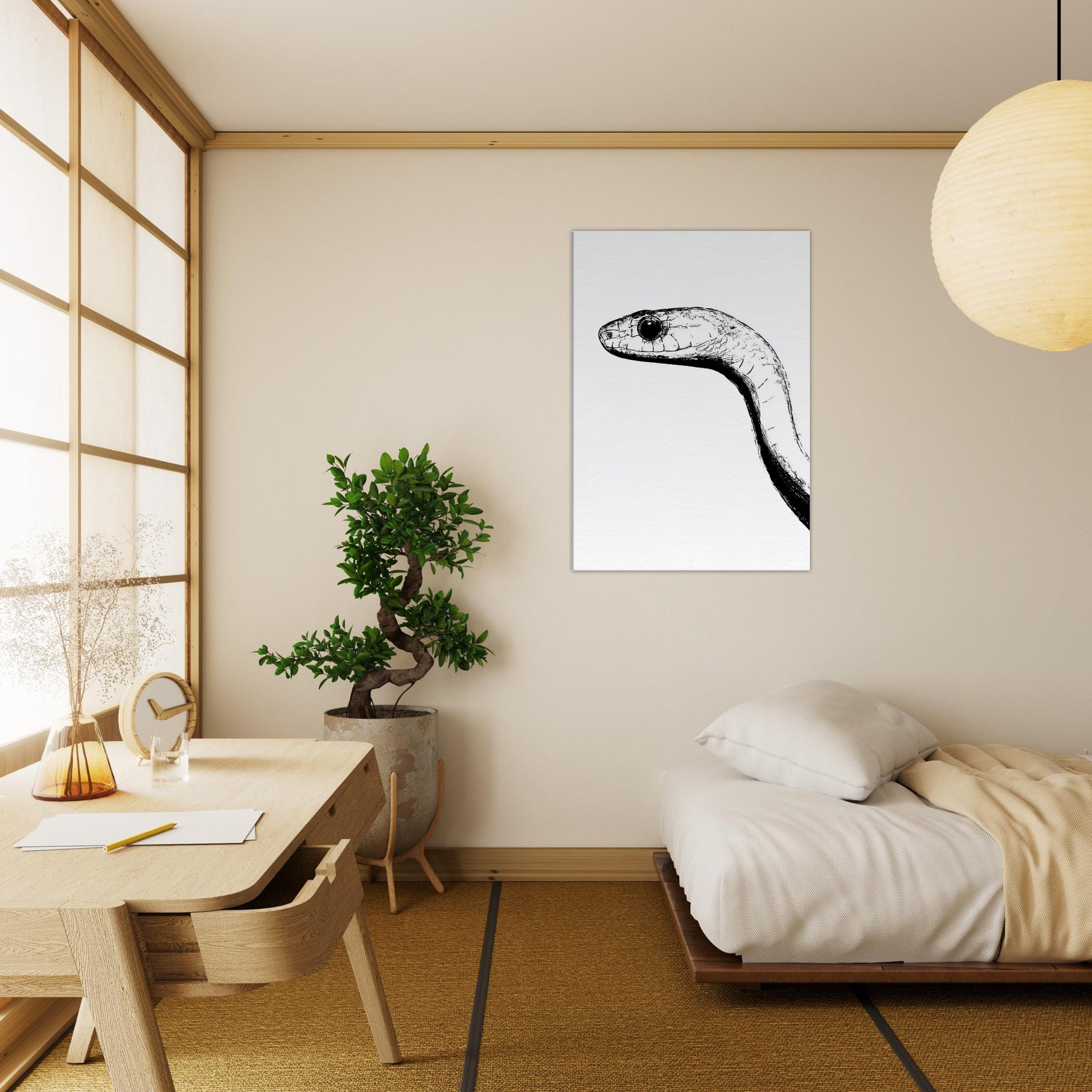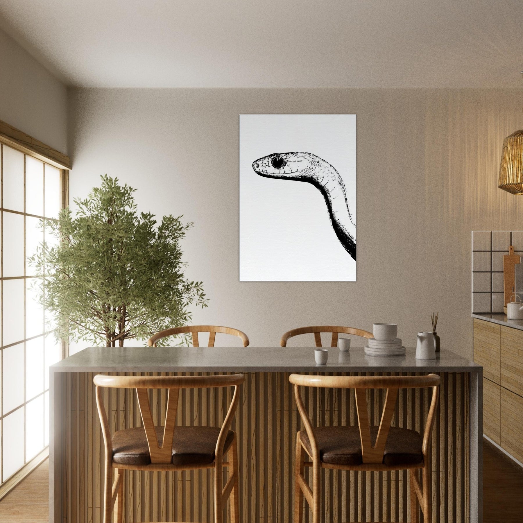 A refined study in restraint, this line art snake glides across the page with quiet confidence. The single ink silhouette distills motion into a graceful arc, inviting the eye to trace a subtle story across your wall. Perfect for a serene living room or a contemplative study, it pairs classical elegance with modern minimalism, casting a sculptural presence that feels both timeless and intimate. Let the snake whisper through the room, elevating light and texture with every glance.