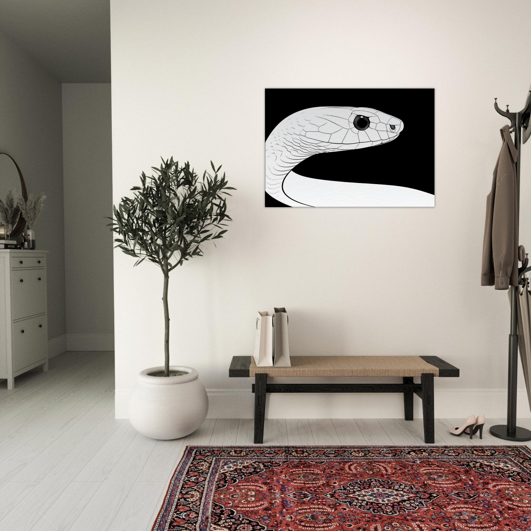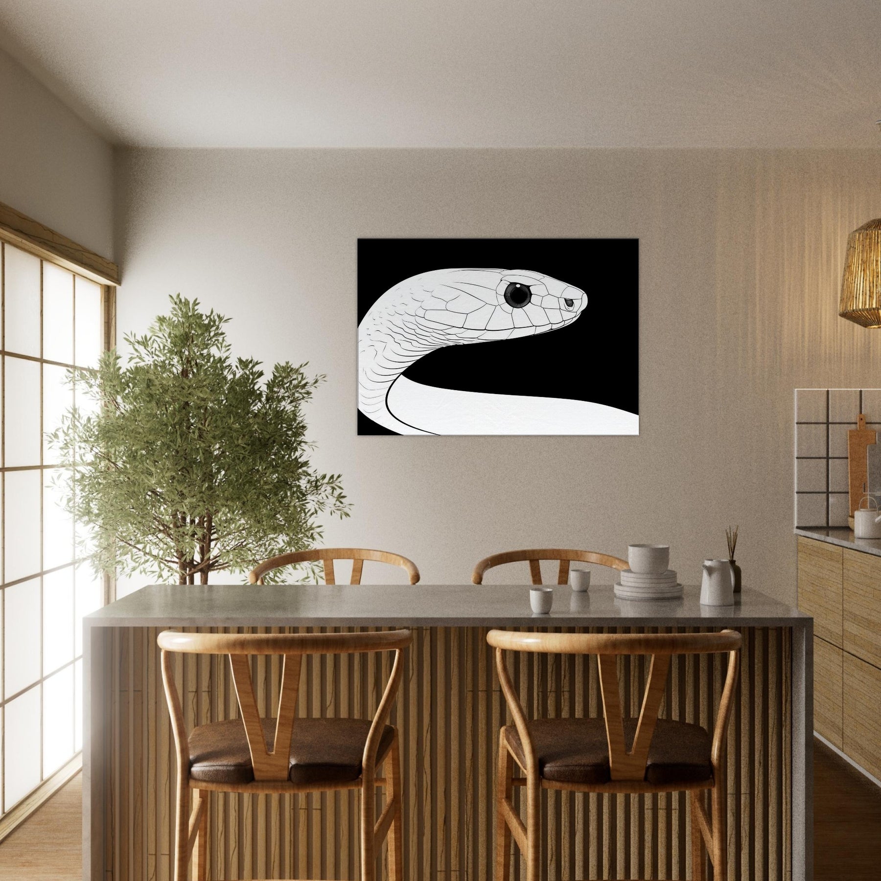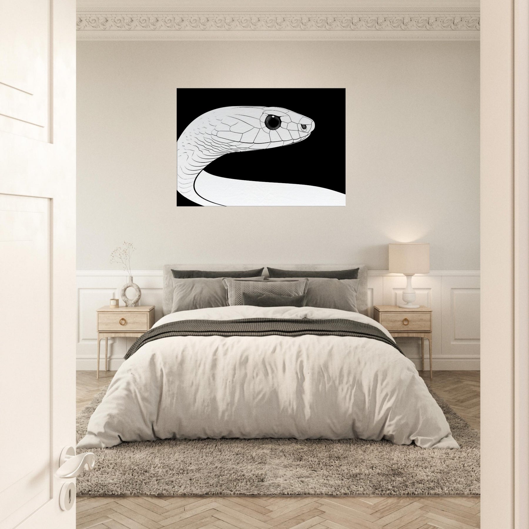 Move into a quiet, modern room with this Snake rendered in a single, unbroken line. The negative space and crisp black and white contours create a sense of calm movement, as if the creature is gliding through air. This line art piece invites light to play across walls, turning a living room or hallway into a gallery of subtle energy. Its minimalist form pairs with wood, glass, or textile textures, making the Snake feel timeless, intimate, and effortlessly chic.
