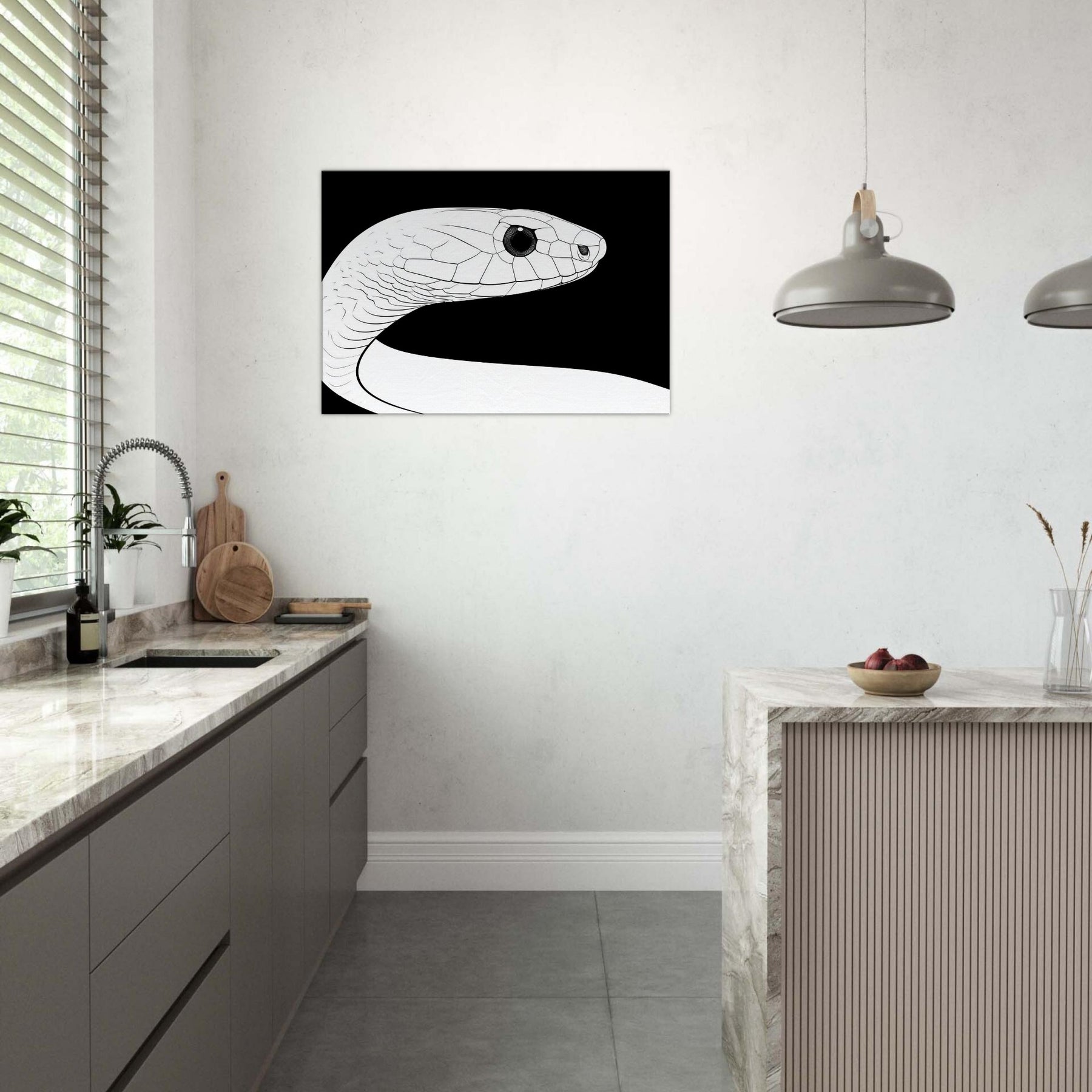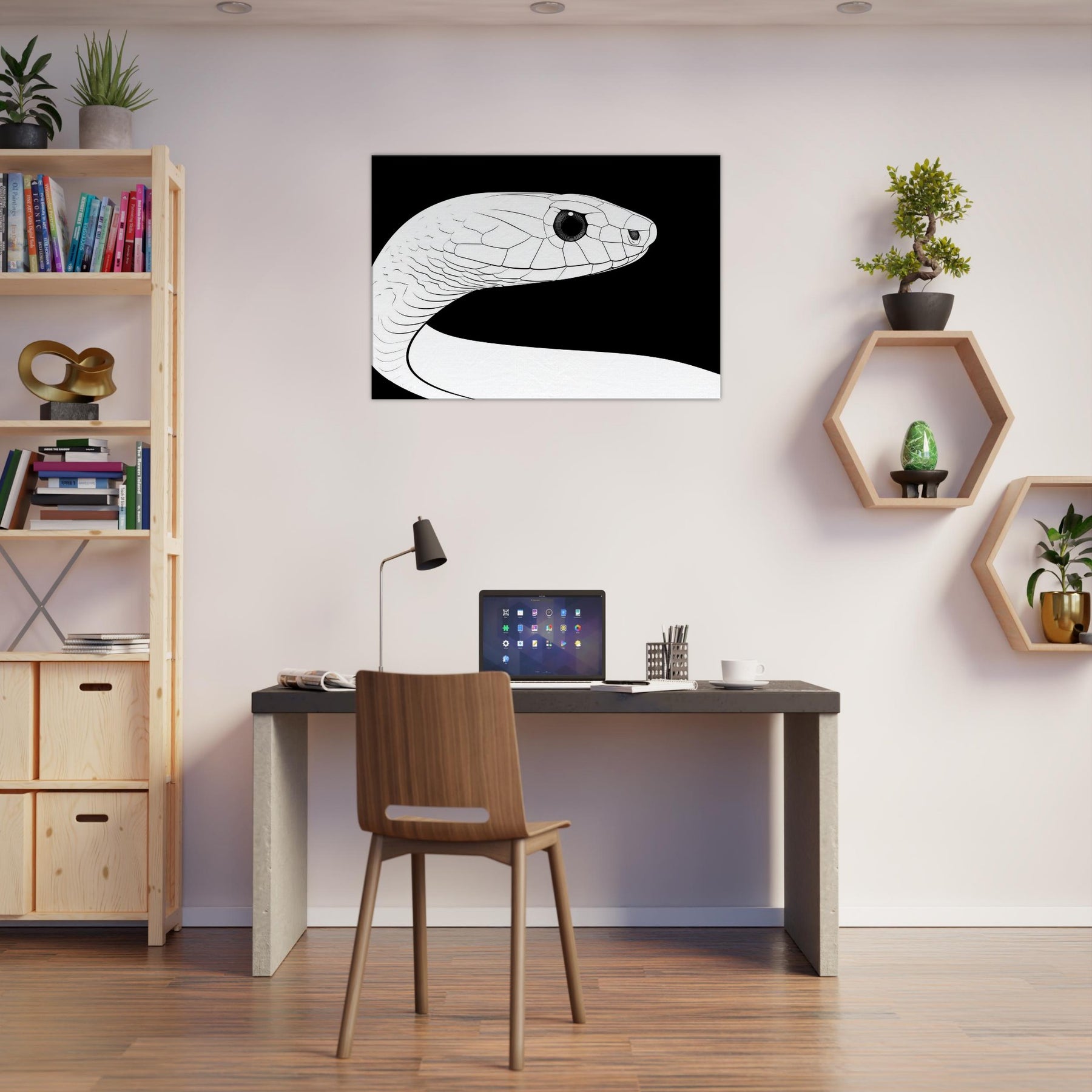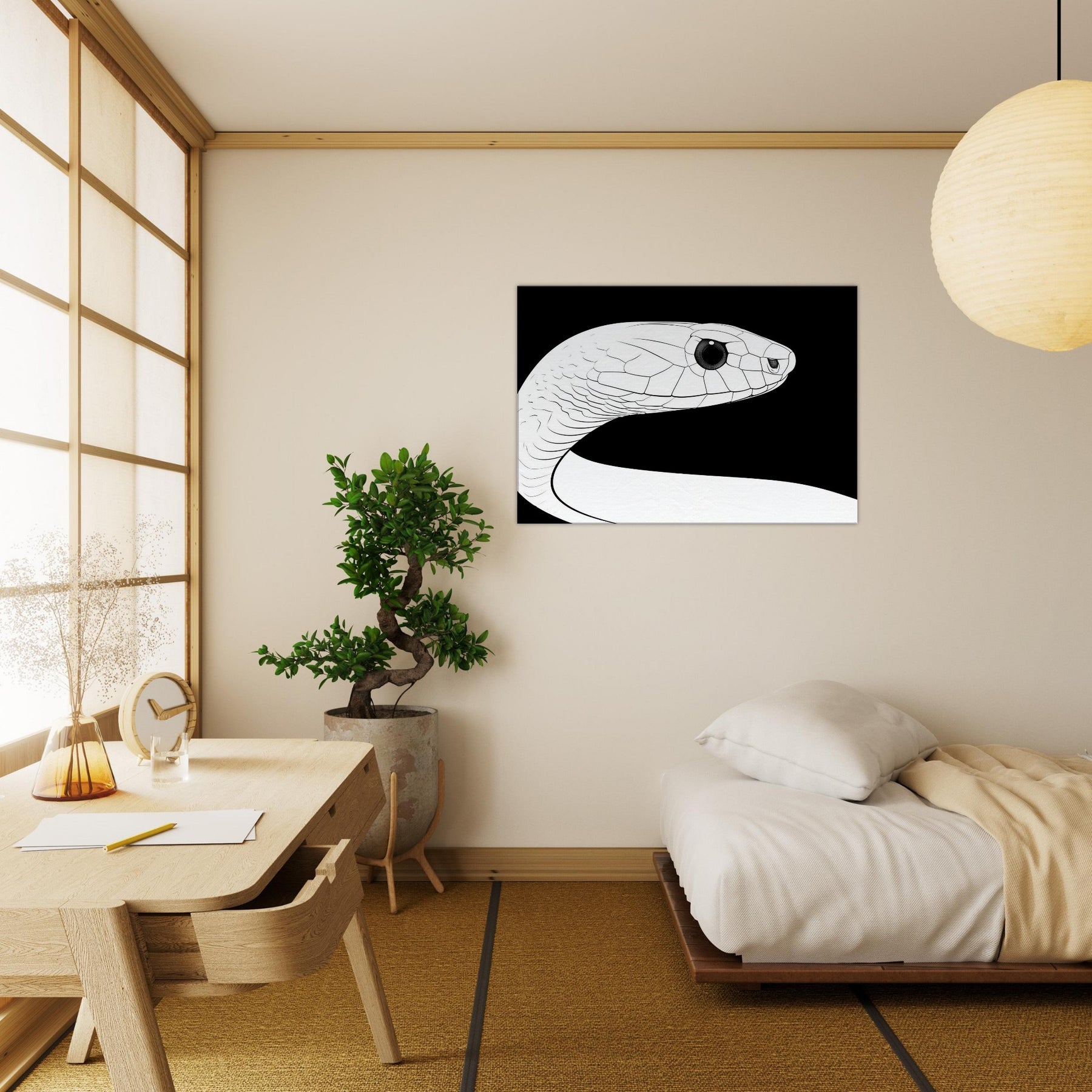 Move into a quiet, modern room with this Snake rendered in a single, unbroken line. The negative space and crisp black and white contours create a sense of calm movement, as if the creature is gliding through air. This line art piece invites light to play across walls, turning a living room or hallway into a gallery of subtle energy. Its minimalist form pairs with wood, glass, or textile textures, making the Snake feel timeless, intimate, and effortlessly chic.