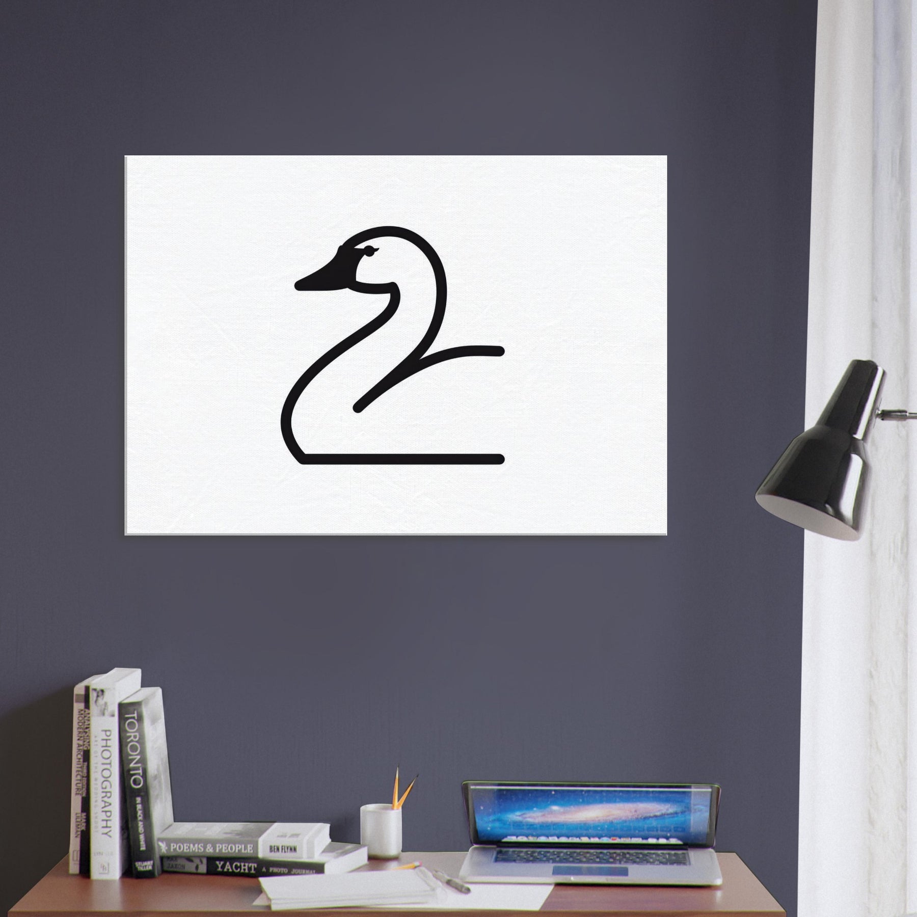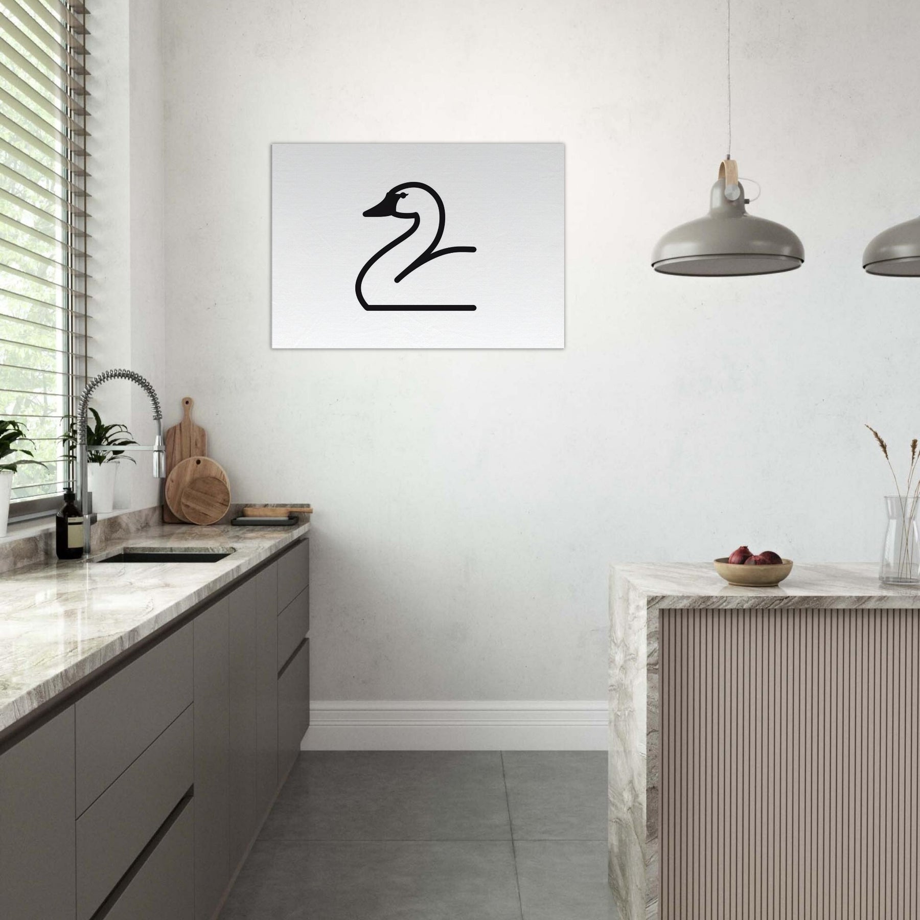 Softly drawn yet bold, this Swan line art captures a single, graceful curve of water and wind. The clean black ink against a white field creates a quiet drama that invites contemplation and ease. Ideal for a sunlit living room or serene bedroom, it introduces poised movement and clarity without overpowering the space. The Swan becomes a serene focal point an elegant whisper of nature that heightens texture, light, and mood, inviting calm conversations and a sense of refined, everyday grace.