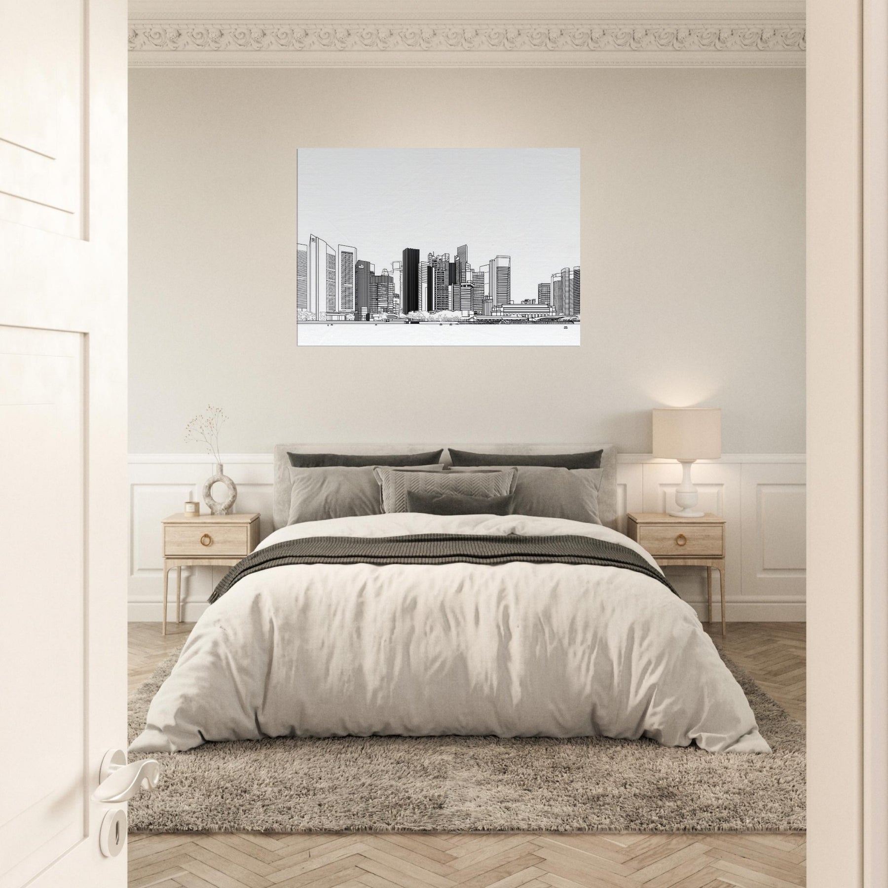 Singapore rises in a quiet, continuous line an architectural whisper sketched in ink. This line art skyline distills the city's energy into a single, elegant gesture: towers, bridges, and the harbor leveled to pure form. The result is a serene yet sophisticated presence that grounds a room with modern clarity. Perfect for a living room, hallway, or office, it invites slow gaze and subtle conversation as light plays along its flat planes. A refined reminder of urban ambition made softly visible.