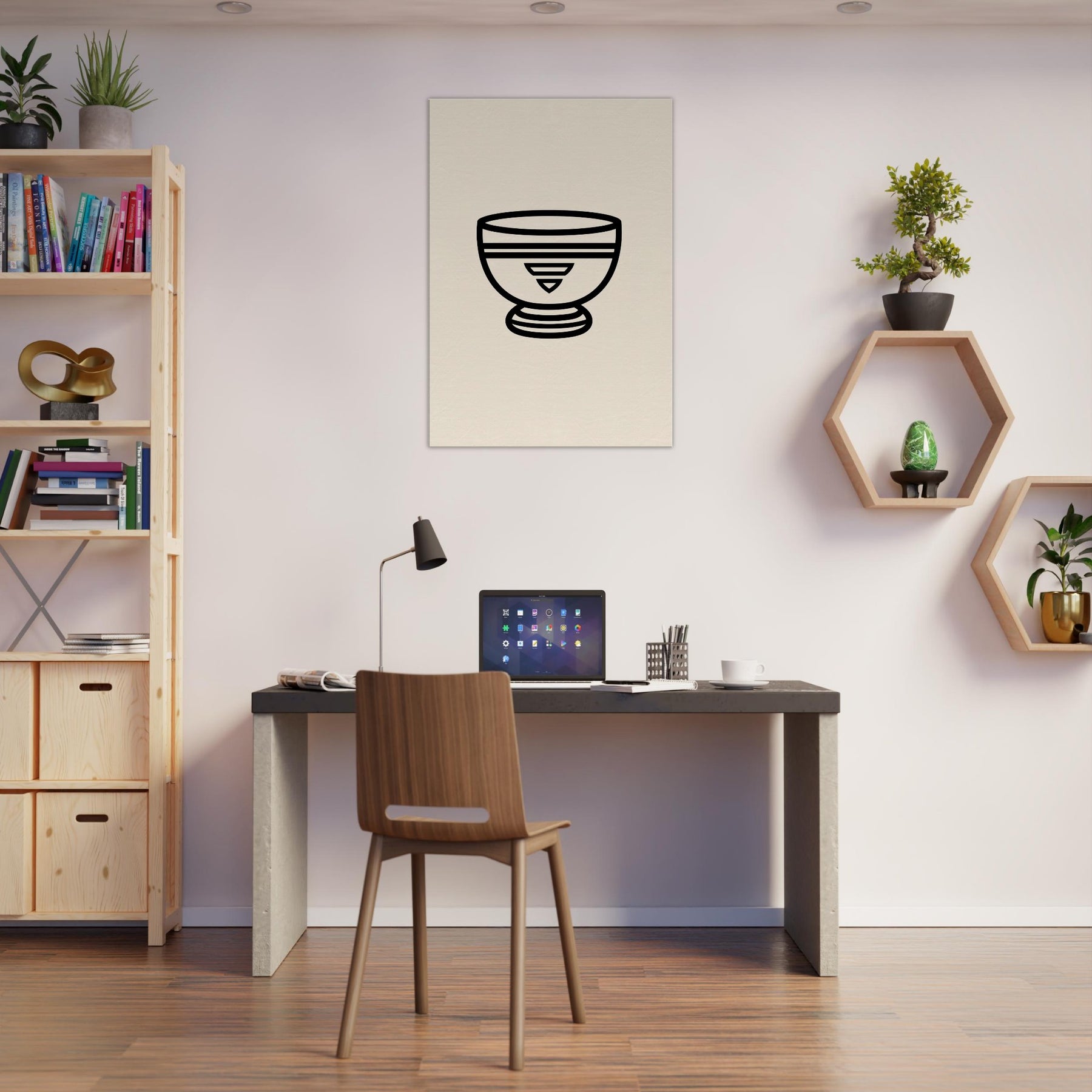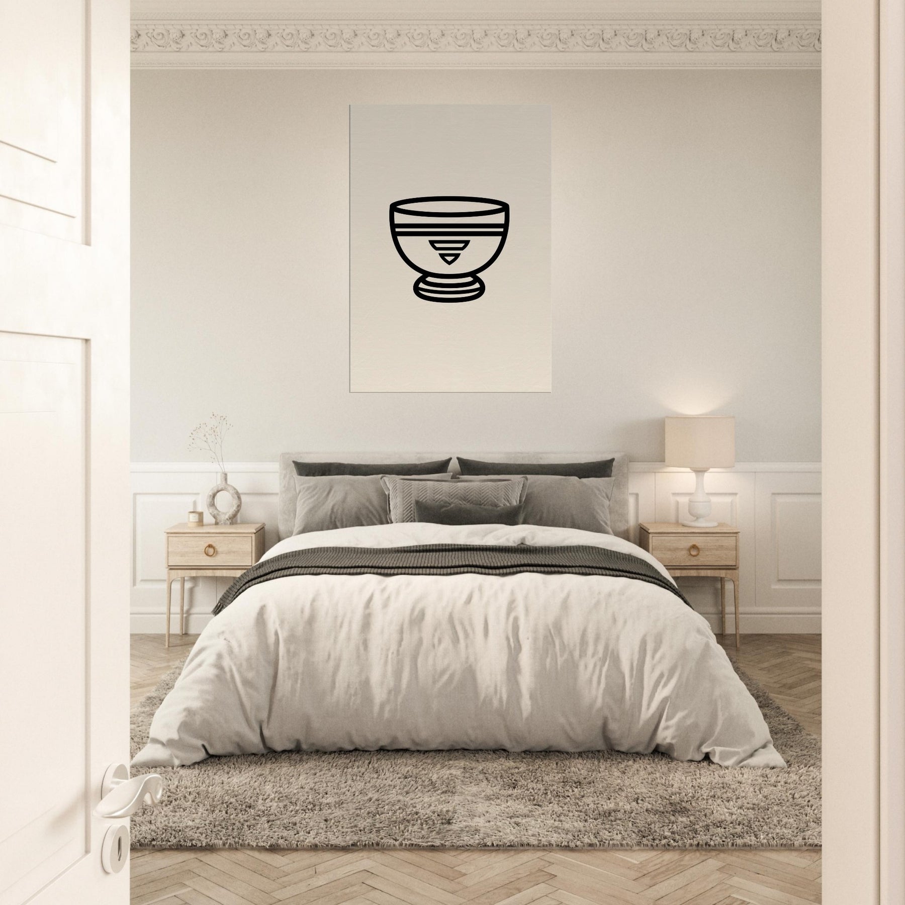 An elegant line drawing of a Singing Bowl, rendered with bold, clean curves that feel both ancient and contemporary. This mystical motif invites stillness, casting a soft, meditative aura across a room. Hang it where morning light spills across a wooden surface or beside a plush reading chair, and let its subtleties simple waves, the suggestion of resonance quiet the day. The piece transforms a wall into a sanctuary, a touch of ritual and wonder in everyday living space.