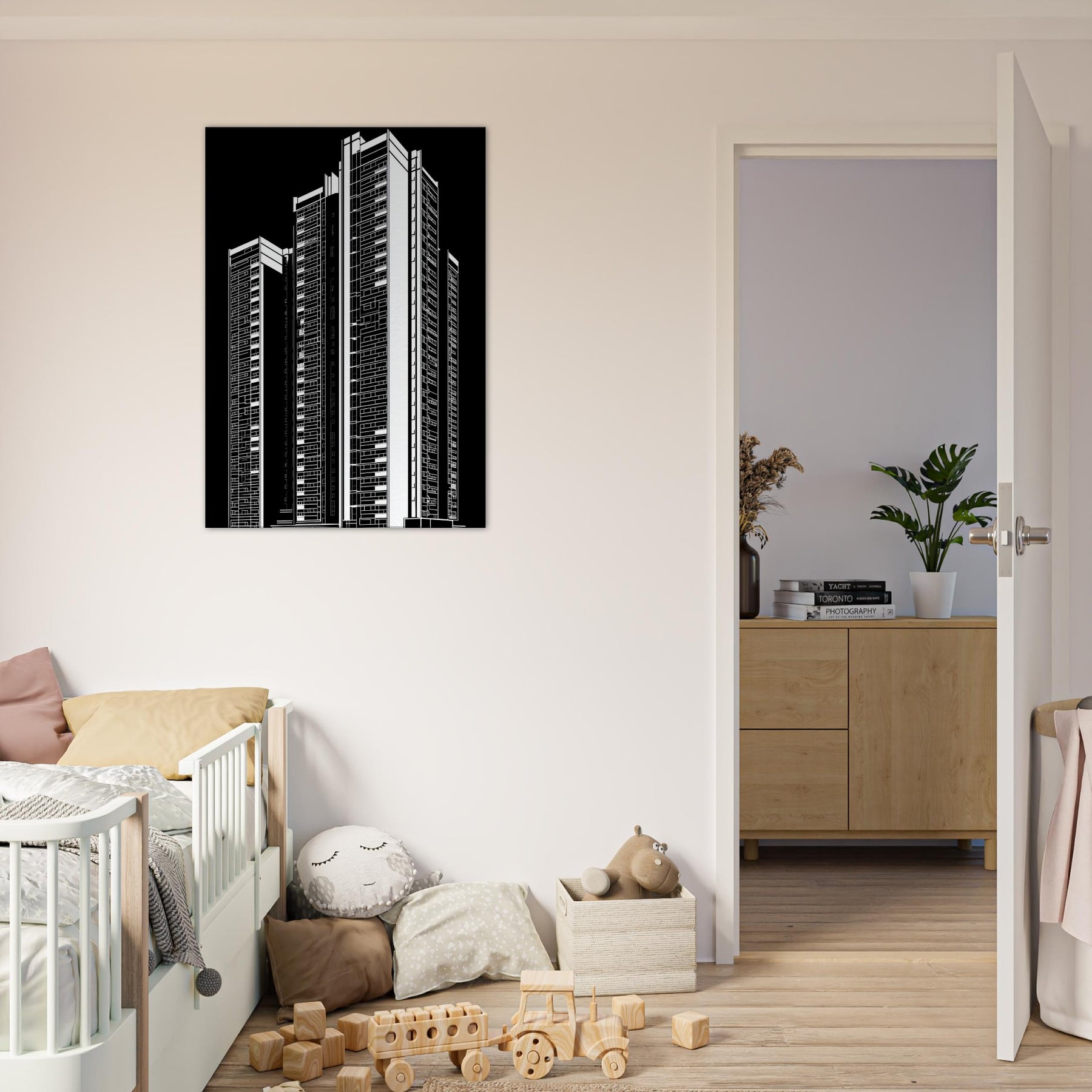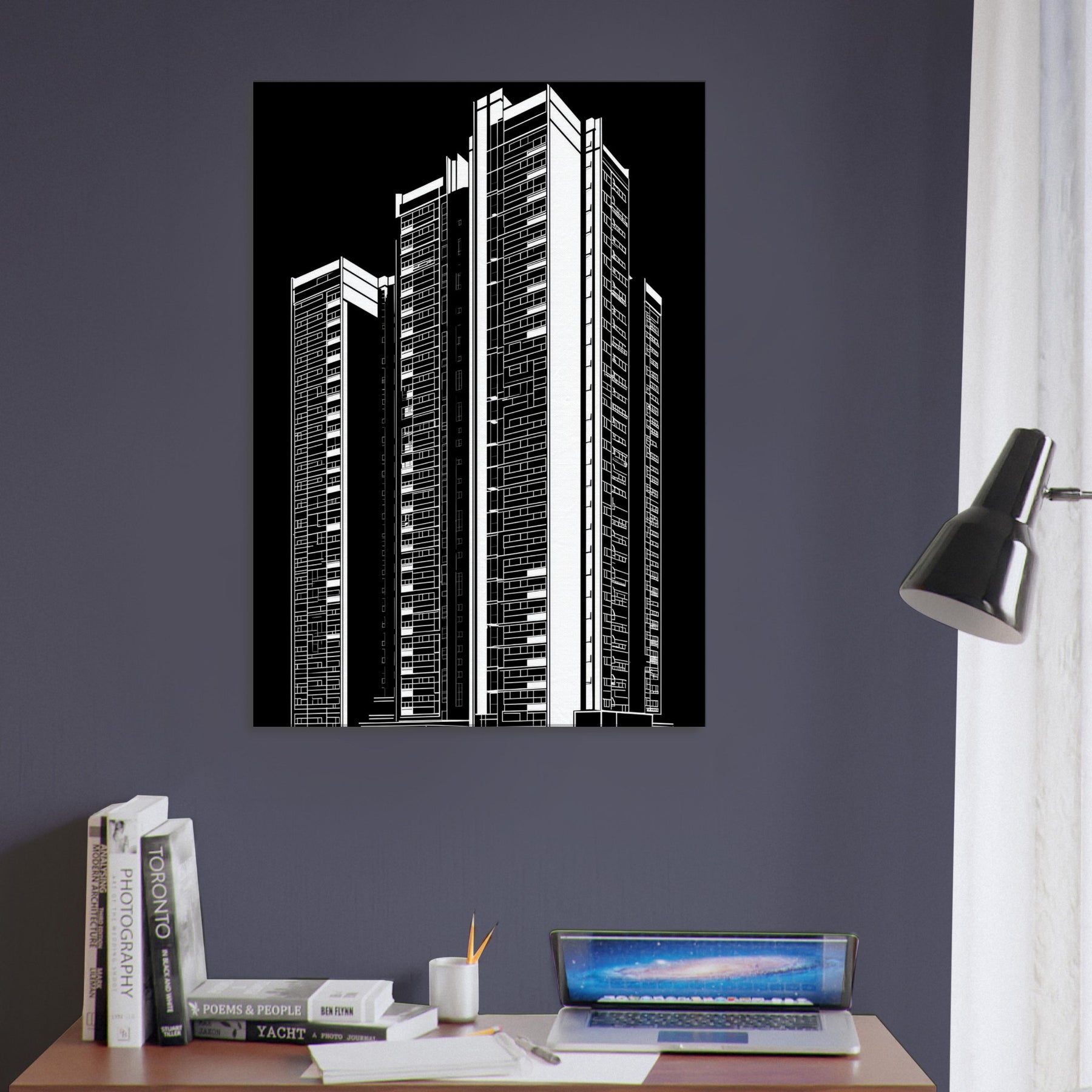 Futuristic Skyscrapers rise in a chorus of clean lines and shadow, a line art homage to cities that never sleep. This piece invites the room to breathe with steel and silence, offering a cinematic glow that shifts with the day. It sharpens corners of conversation, deepens focus, and creates a sense of space that feels both futuristic and intimately human. Perfect for a living space needing clarity, momentum, and a quiet urban heartbeat.