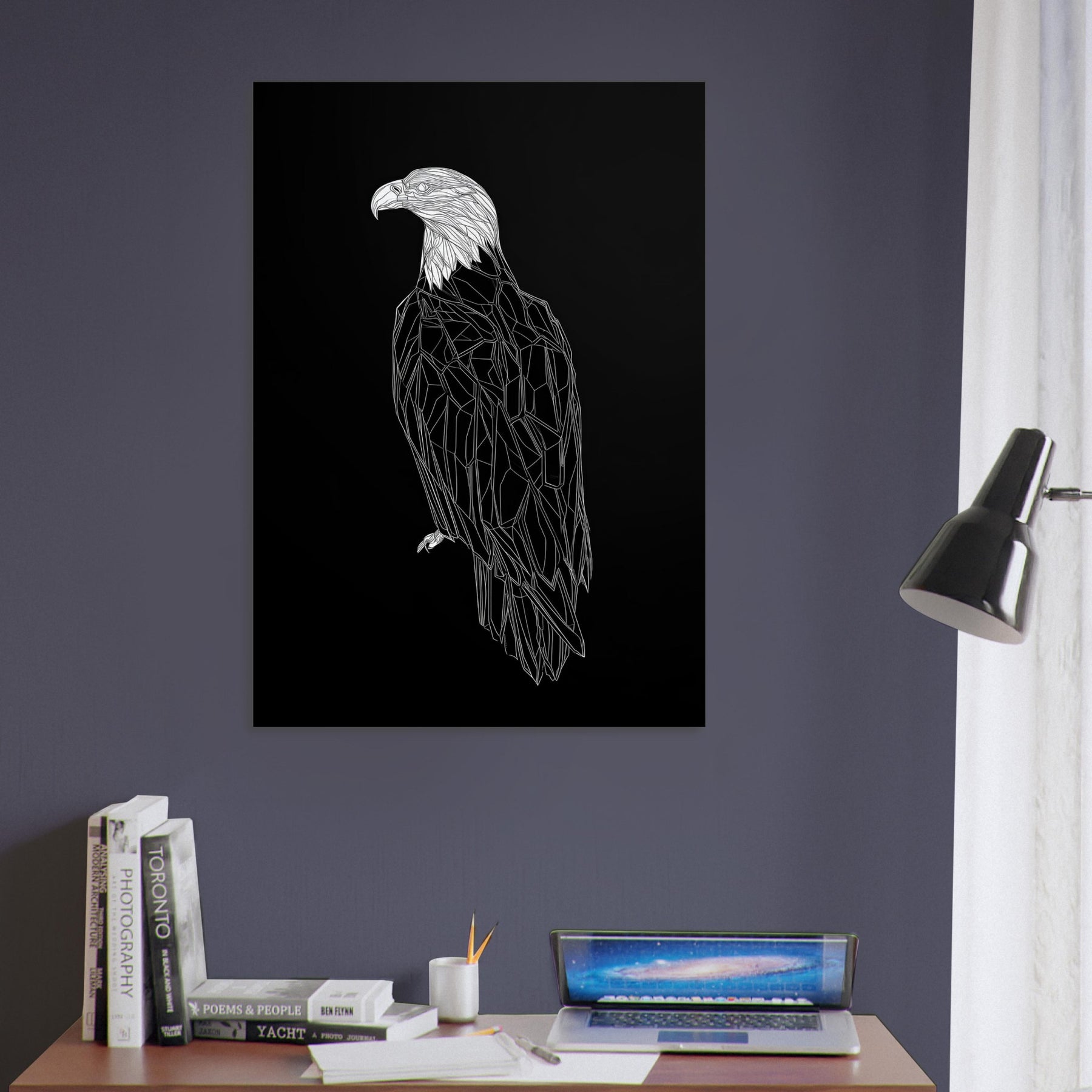 An arresting study of the Eagle rendered in luminous white lines against a midnight canvas, this line art invites stillness and awe. The geometric plume and crystal clear silhouette evoke wind, memory, and lift, turning any wall into a gateway to soaring calm. Perfect above a sofa or in a hallway, it casts a quiet, noble presence an invitation to breathe, observe, and dream.