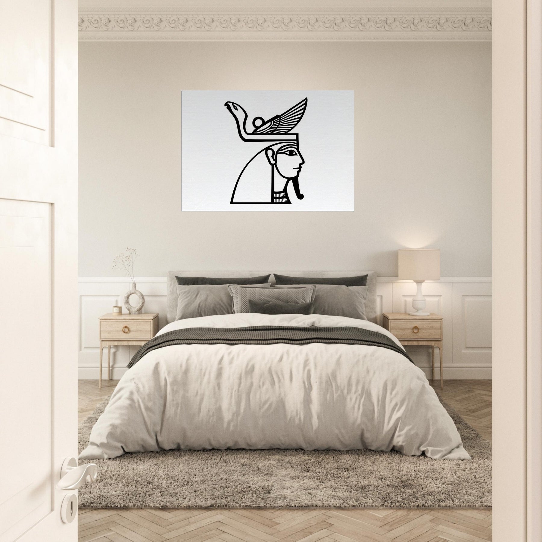 Ra, the Egyptian Sun God with a falcon head and solar crown, rises in elegant line and grace. This single ink captures mythic authority with clean curves and bold contour, inviting sunlight and shadow to trace its mythic silhouette across your wall. The piece radiates calm energy, turning a living room corner into a contemplative sanctuary where history and imagination meet. Perfect for a study, bedroom, or gallery wall, it pairs timeless symbolism with contemporary minimalism to elevate any space.