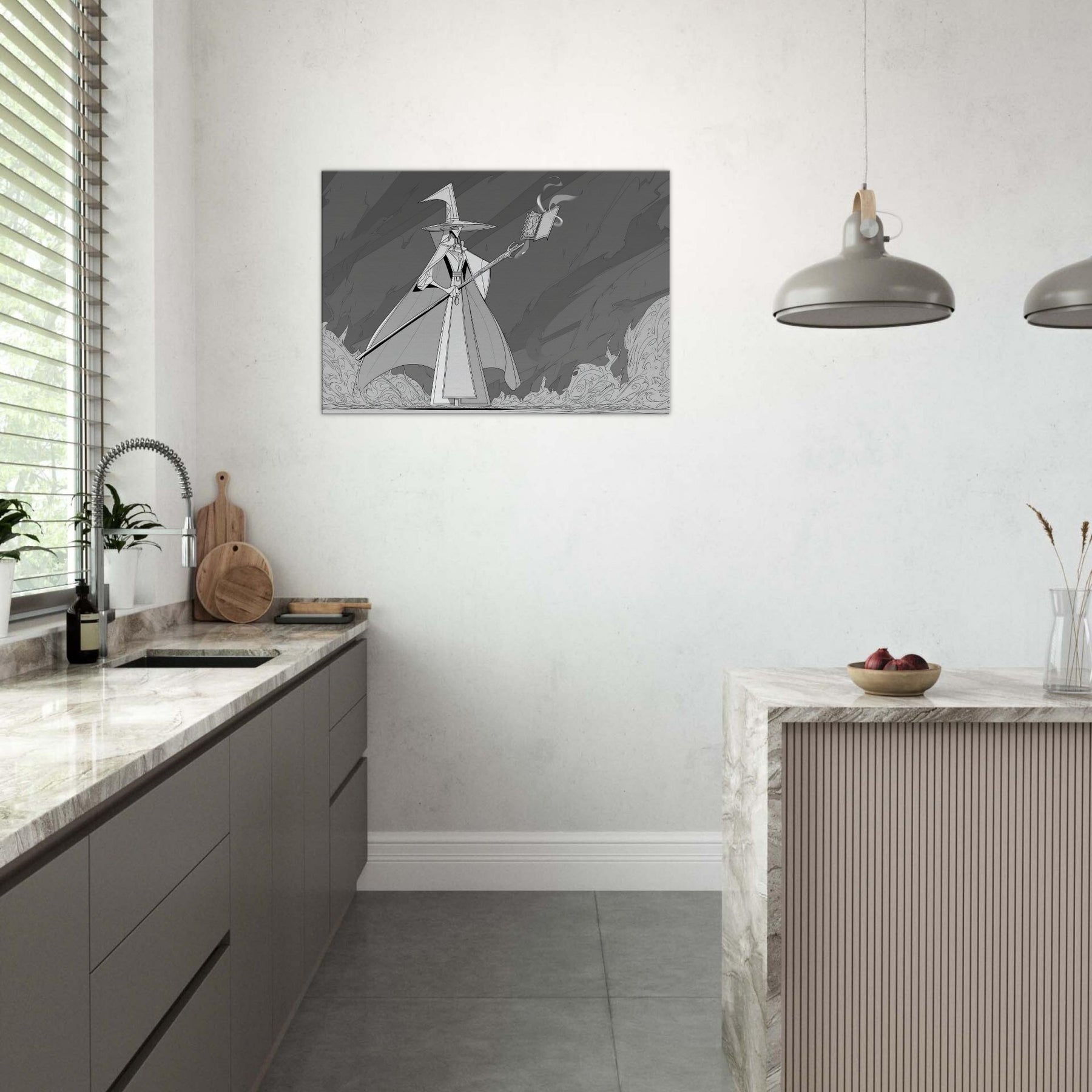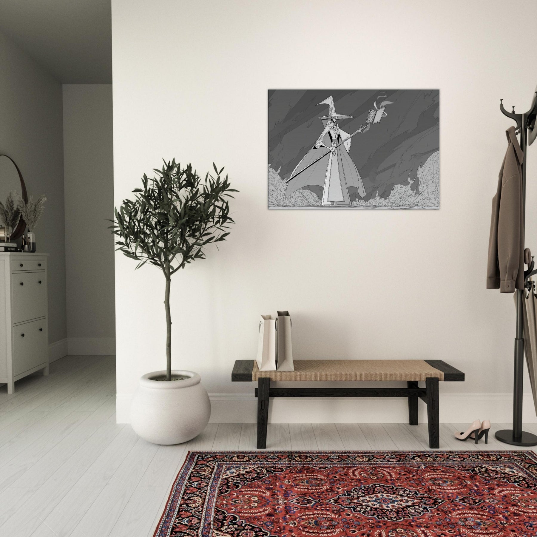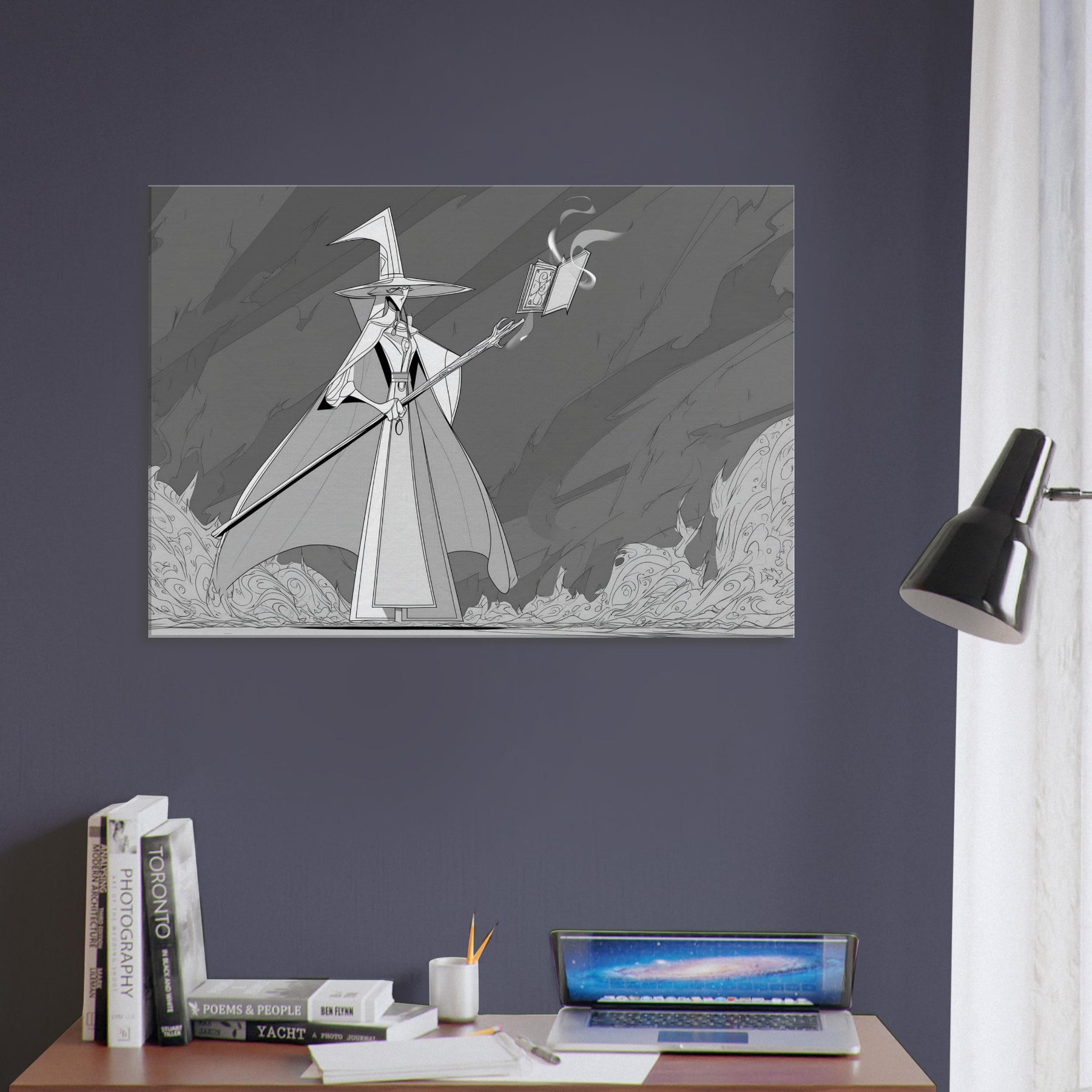Immerse your space in a hush of arcane air with this line art odyssey. The Mysterious Wizard Casting Spells stands poised between shadow and light, cloak trailing like a memory, wand tracing quiet constellations. The clean, architectural lines invite calm focus, while the floating spellbook and curling runes hint at untold journeys beyond the frame. Perfect for a study, library nook, or living room, it adds a refined, magical atmosphere balanced, modern, and endlessly evocative where conversation flows as freely as the enchantments it suggests.