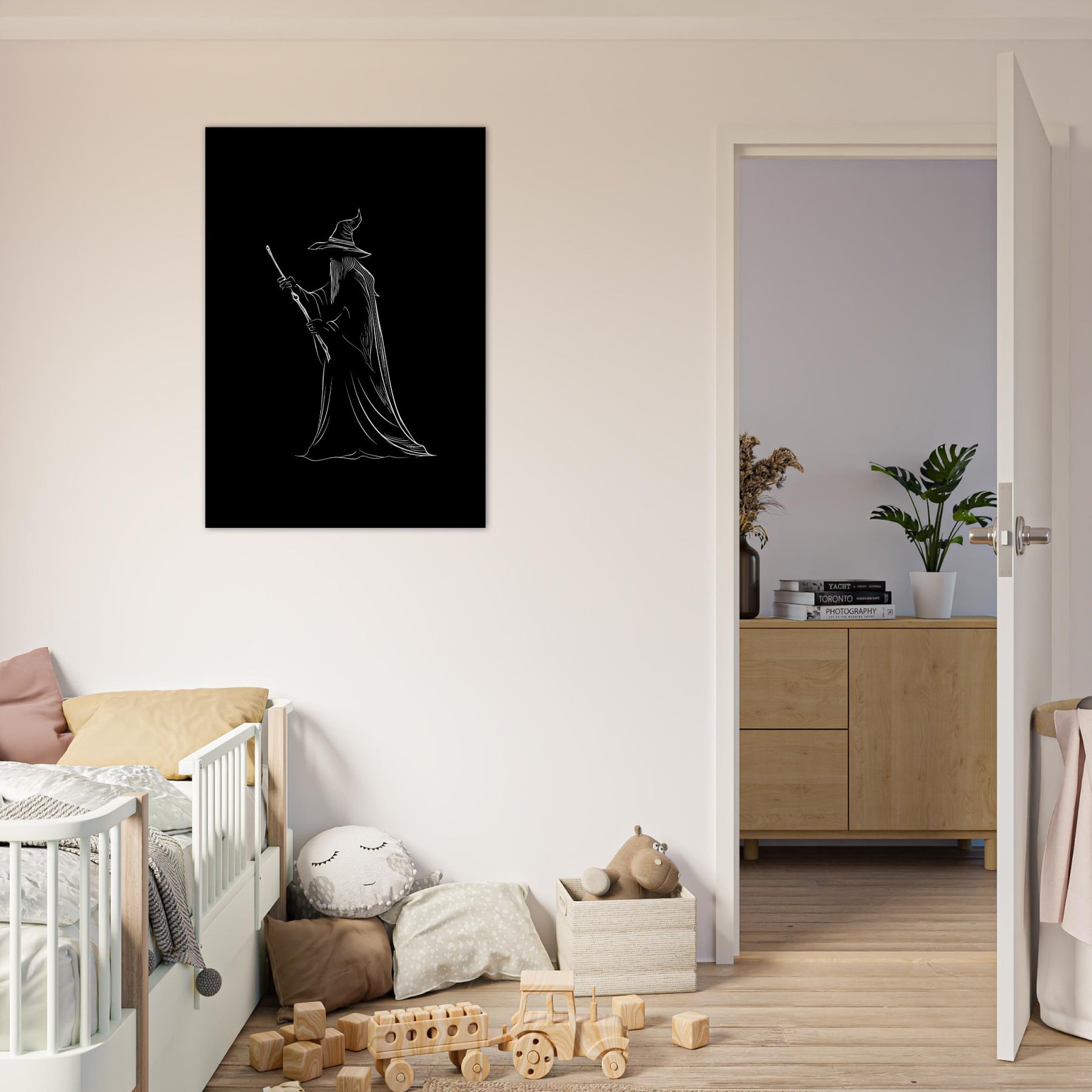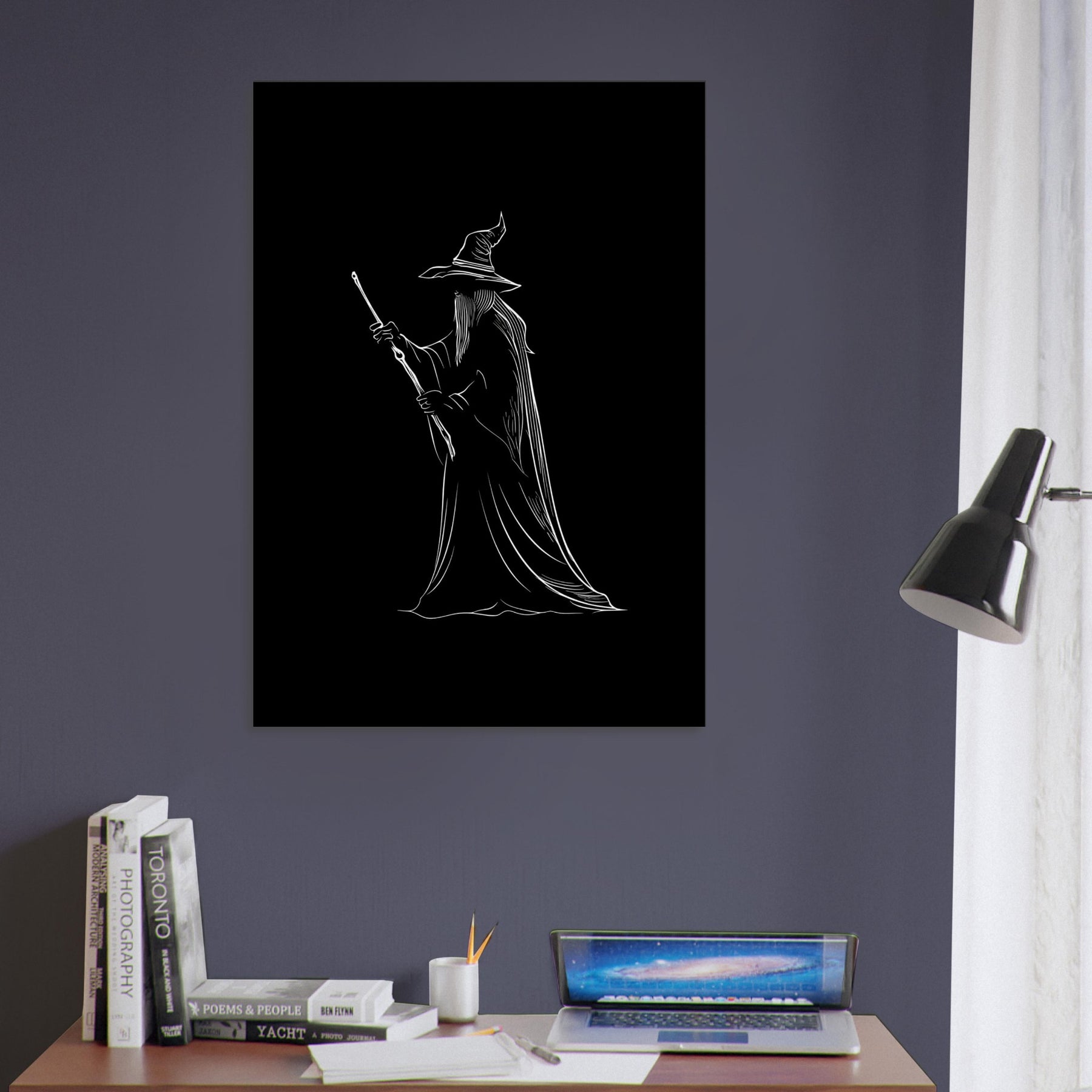 In stark black and white, the Mysterious Wizard Casting Spells emerges as a whisper of arcane power. The clean, continuous line work stitches a figure of robes and a pointed hat into a poised, spell lit silhouette, conjuring a mood of quiet awe. This piece invites stories to unfold above your sofa or desk, offering a calm counterpoint to busy days. Its monochrome elegance pairs with modern palettes, while the sense of motion and magic breathes nocturnal mystery into any living space.