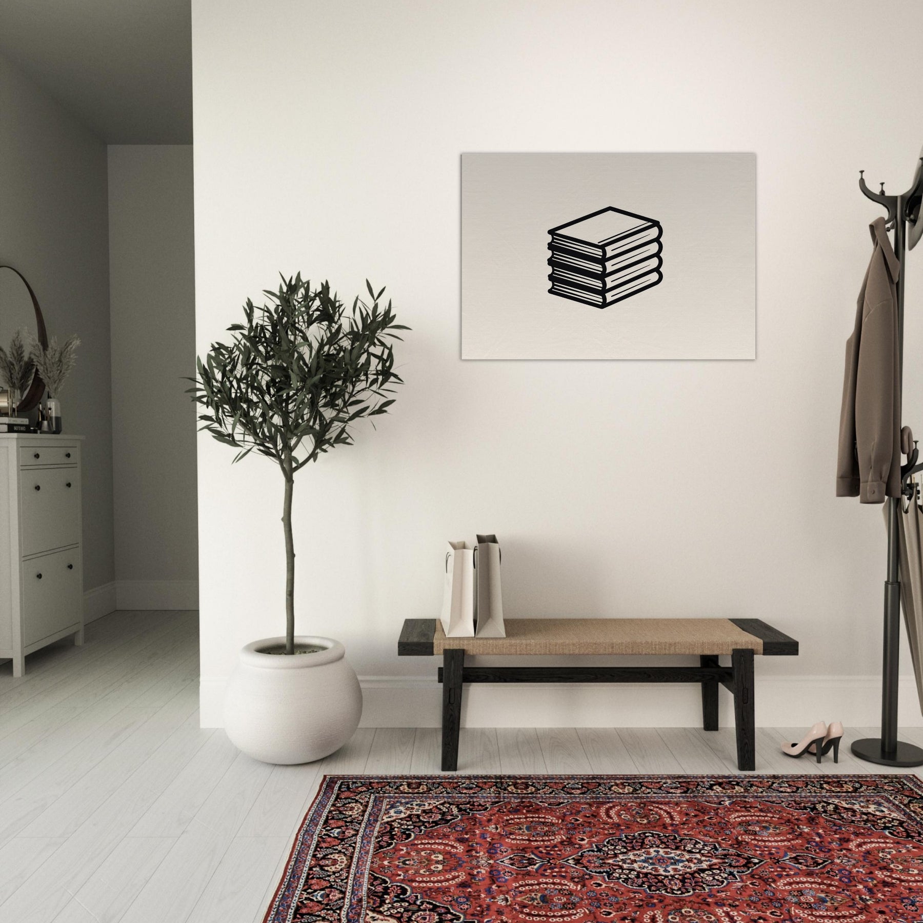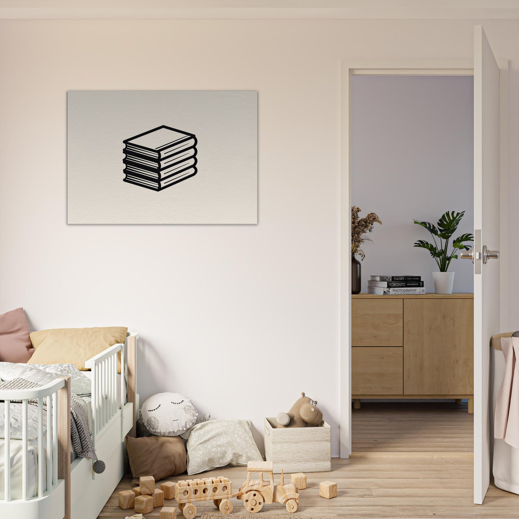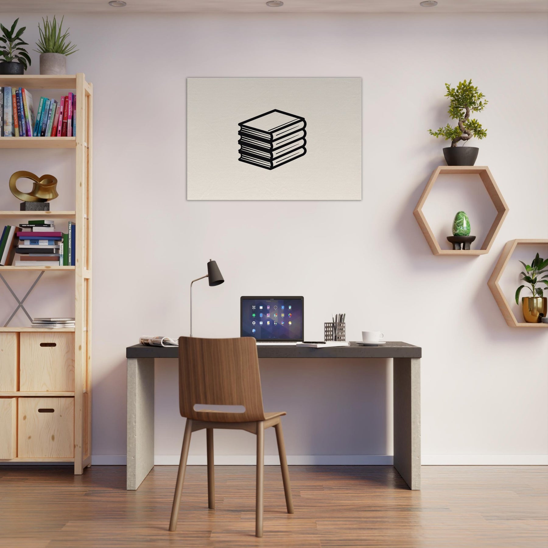 Like a breath drawn in ink, this Book Stack unfolds in clean line art against a warm, neutral backdrop. The stacked spines become a quiet chorus, inviting a moment of pause in a busy room. Its bold, continuous lines carve a calm silhouette that pairs effortlessly with modern furniture, casting soft shadows and a sense of measured order. Perfect for a reading nook or chic living space, it elevates ambiance without shouting, turning walls into a serene, literary focal point.