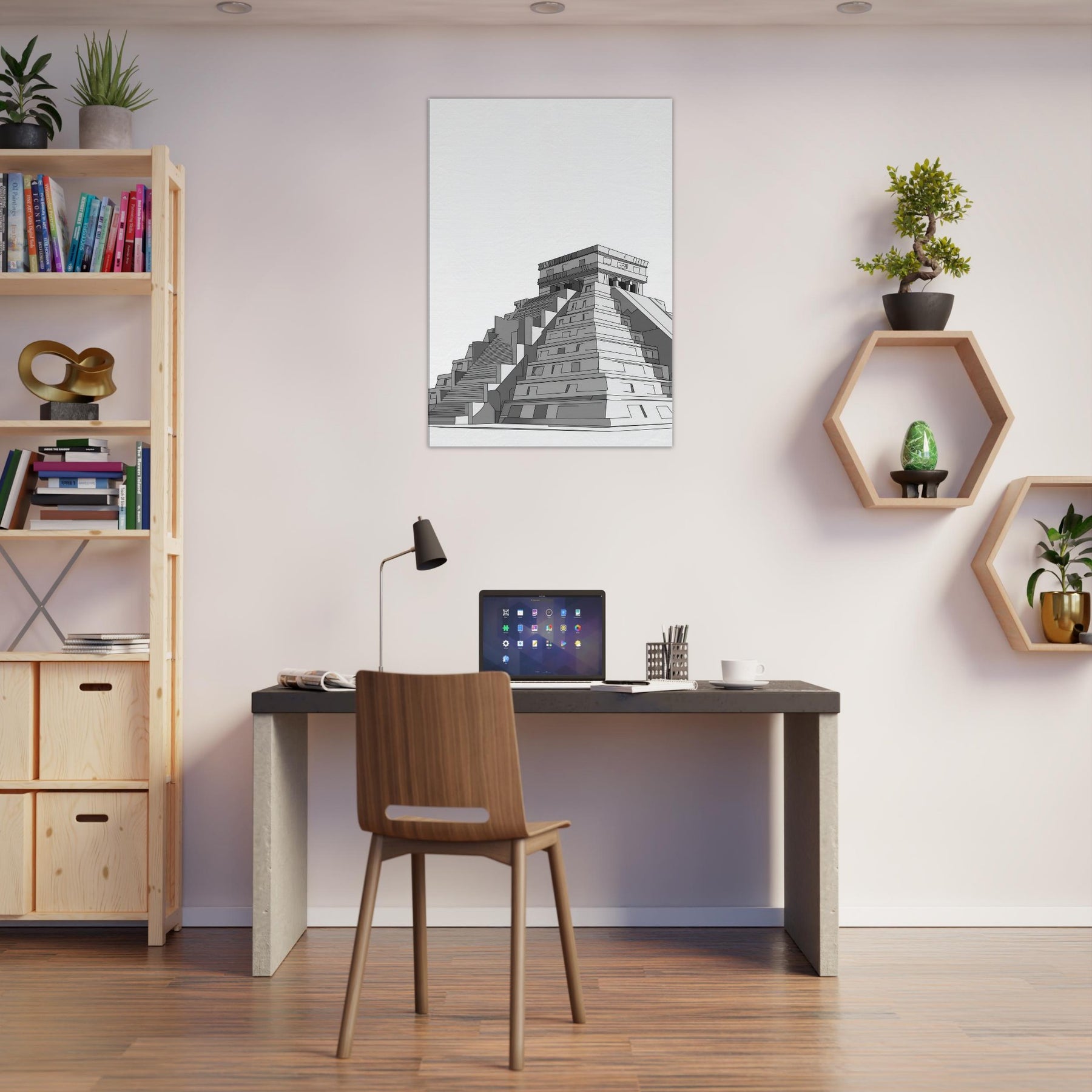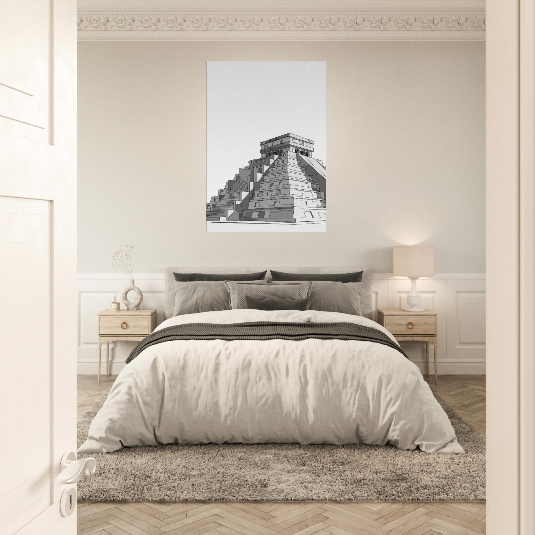 Refined, presence filled lines sketch a monumental Mayan temple in quiet monochrome. This Mayan Temples line art captures ancient staircases as modern meditations, a rhythm of angles and light that invites contemplation. The piece exudes timeless restraint, turning a living room into a gallery of calm and curiosity. In its clean contrast, it pairs with warm wood and soft textiles, enhancing spaces with a sense of horizon, history, and quiet grandeur.
