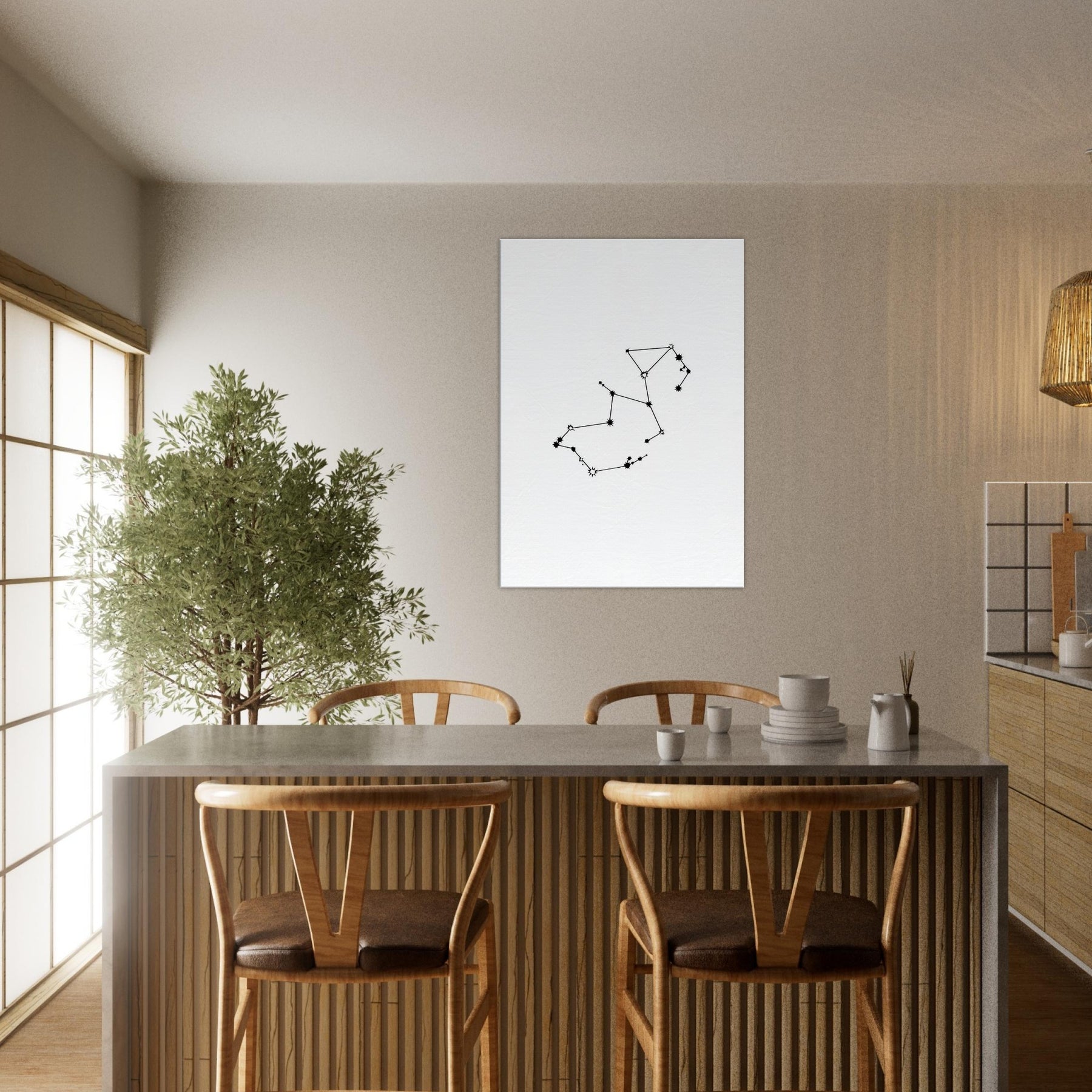 A quiet map of Constellations rendered in delicate line art, this piece drifts like a night breeze across your wall. The sparse, star kissed connections invite the eye to travel from glow to glow, turning any room into a midnight observatory. In a modern living space, the mystical geometry creates a calm, contemplative mood cool black lines against soft walls, a subtle glow of imagination. Perfect above a sofa or bedside, it invites conversation and dreamlike reflection.