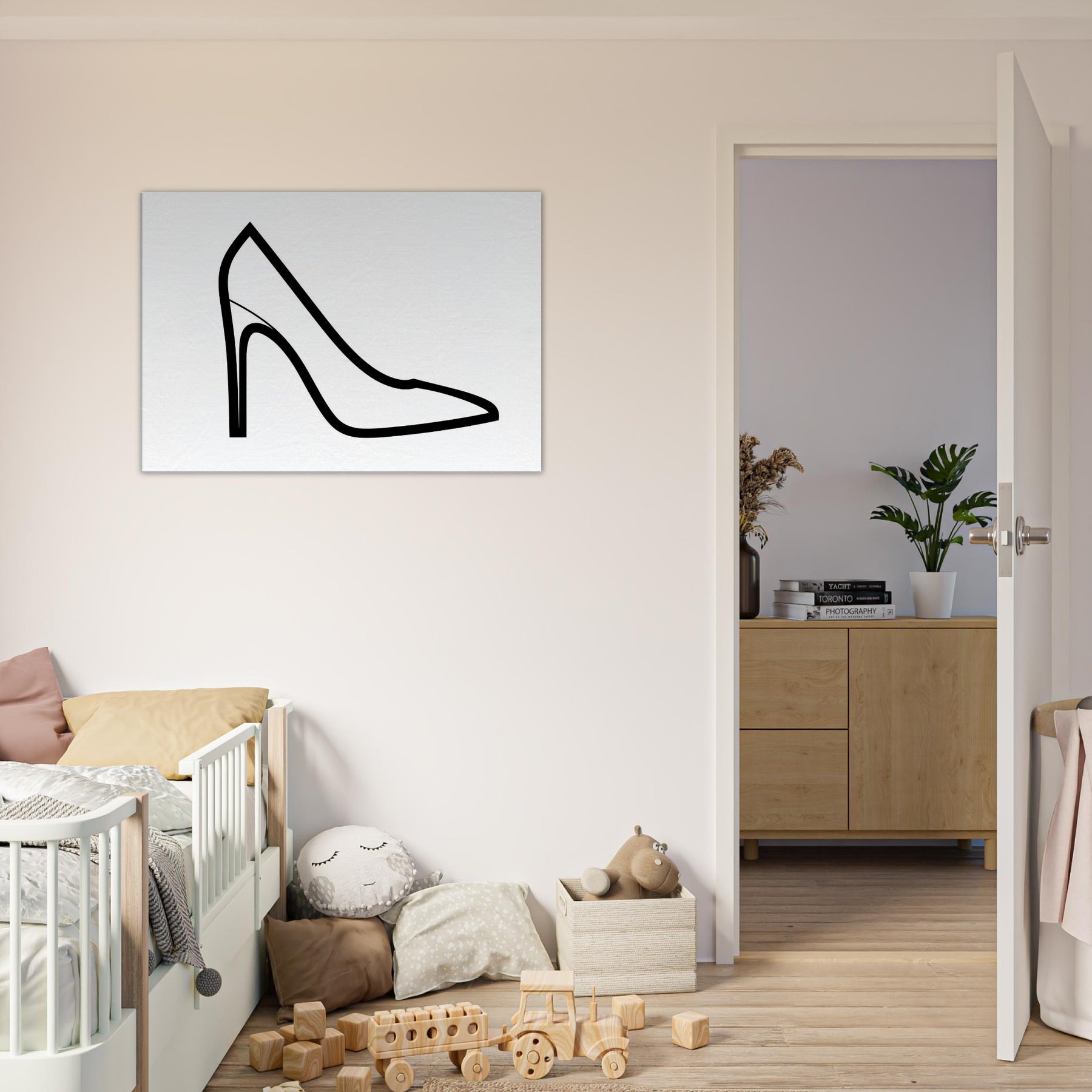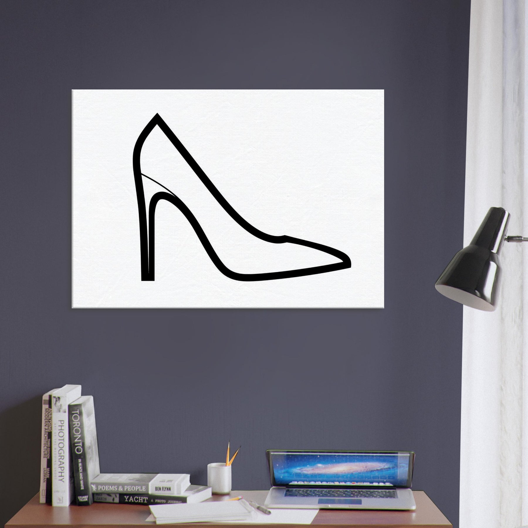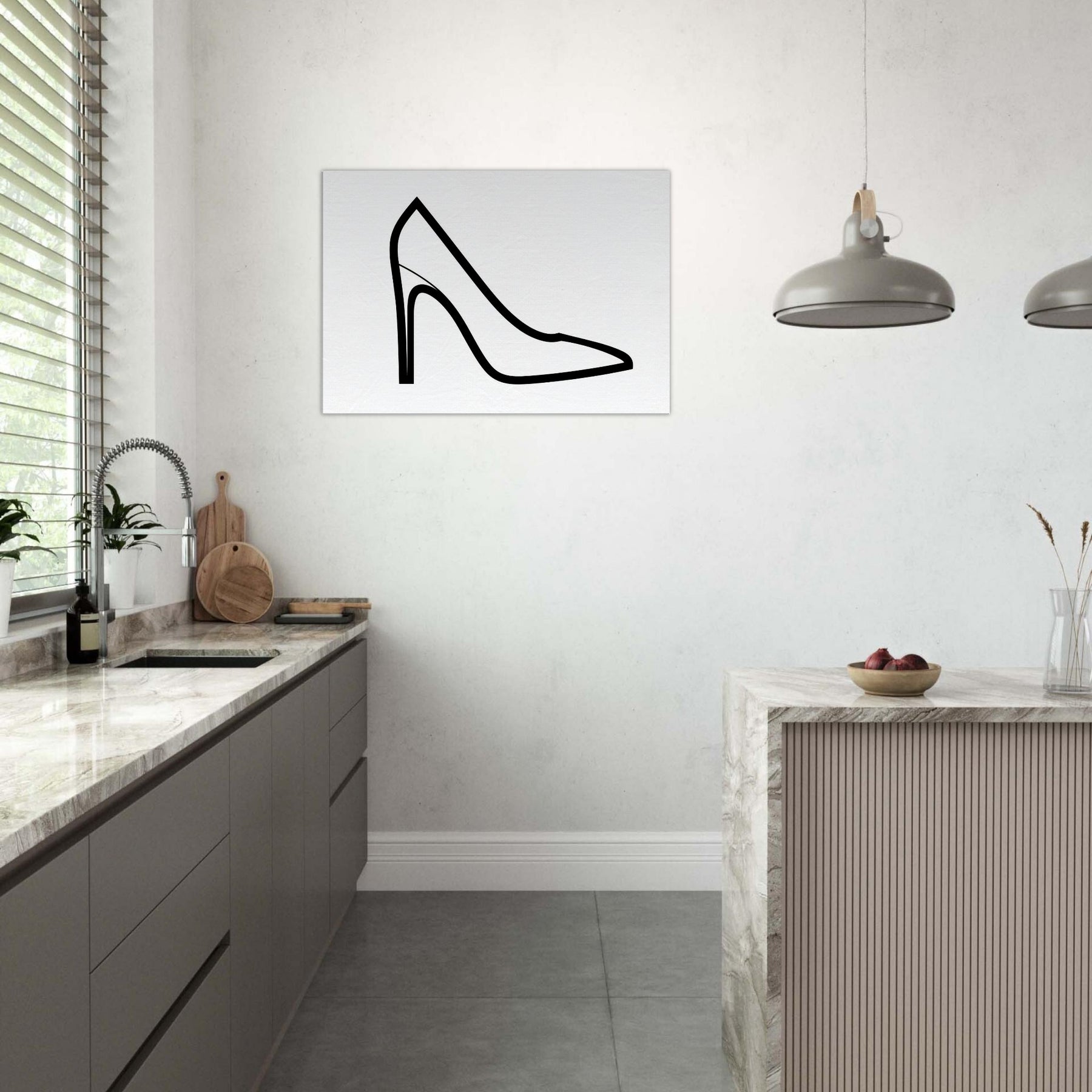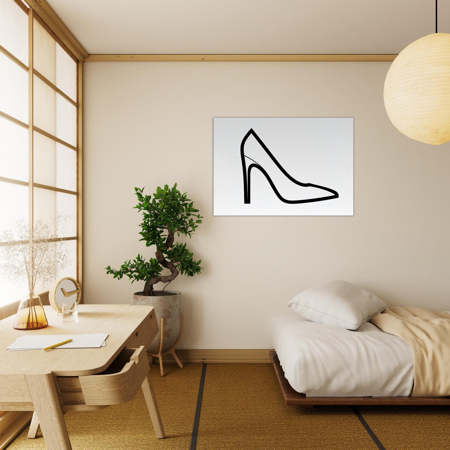 This elegant line drawing captures the quiet drama of a High Heel in flight through space and shadow. A continuous black contour threads upward, bending into a poised arc that hints at glamour and confidence. Hung in a bright room, it casts a modern, almost musical atmosphere a touch of chic minimalism that elevates a living room, hallway, or bedroom with a whisper of attitude.