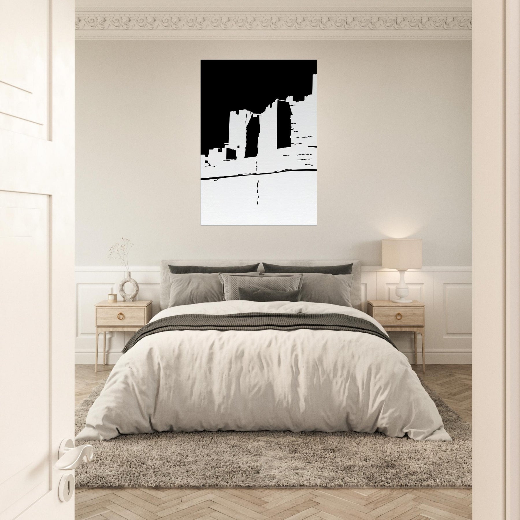 Immerse your space in the quiet majesty of a Medieval Castle rendered in crisp line art. The stark black and white contrast captures the austere stones and soaring battlements, inviting reflection and imagination. This piece channels evening hush and dawn clarity perfect above a sofa, in a study, or atop a gallery wall. The minimal lines evoke history with modern simplicity, adding texture without crowding the room. Let the castle's silhouette become a focal point of calm and curiosity.