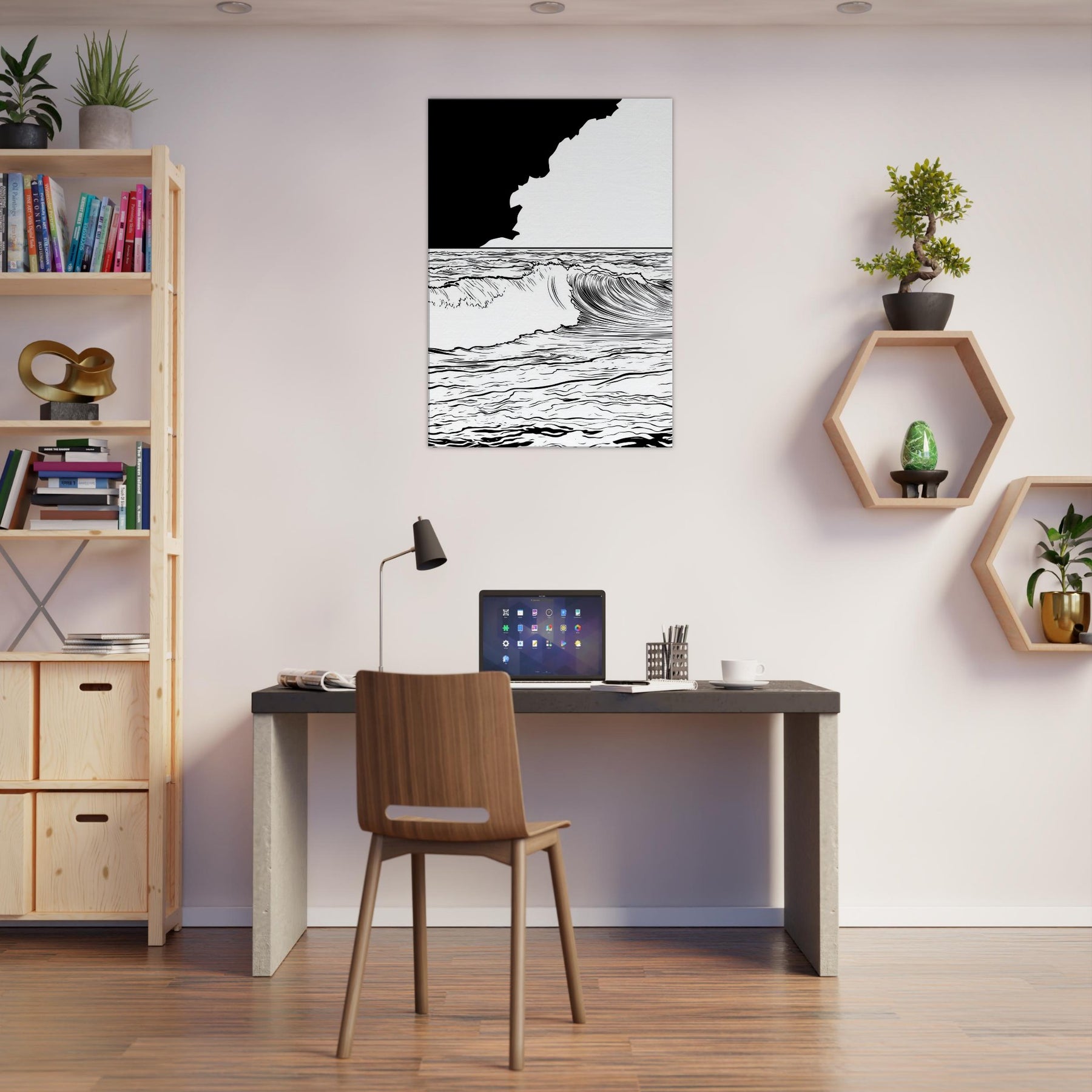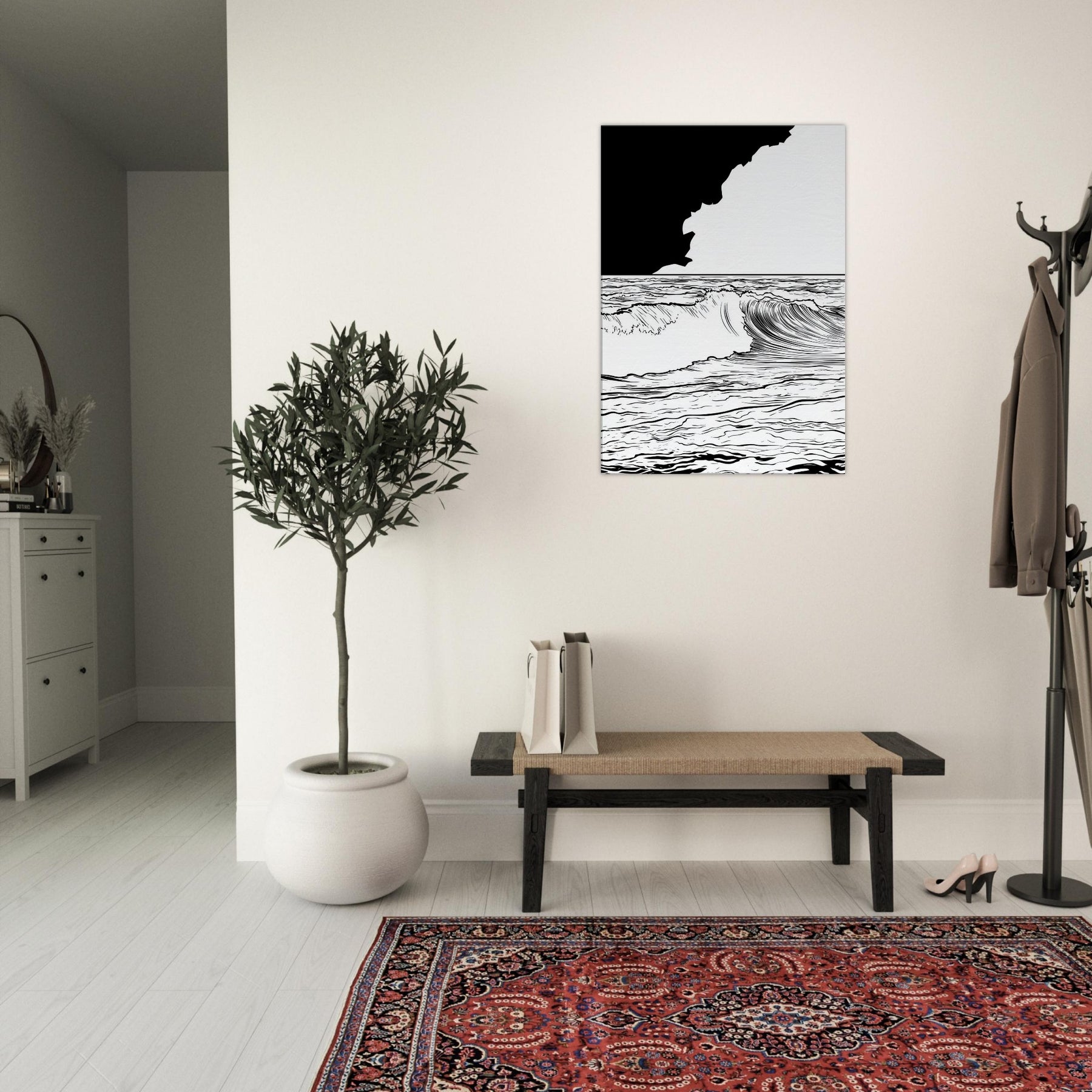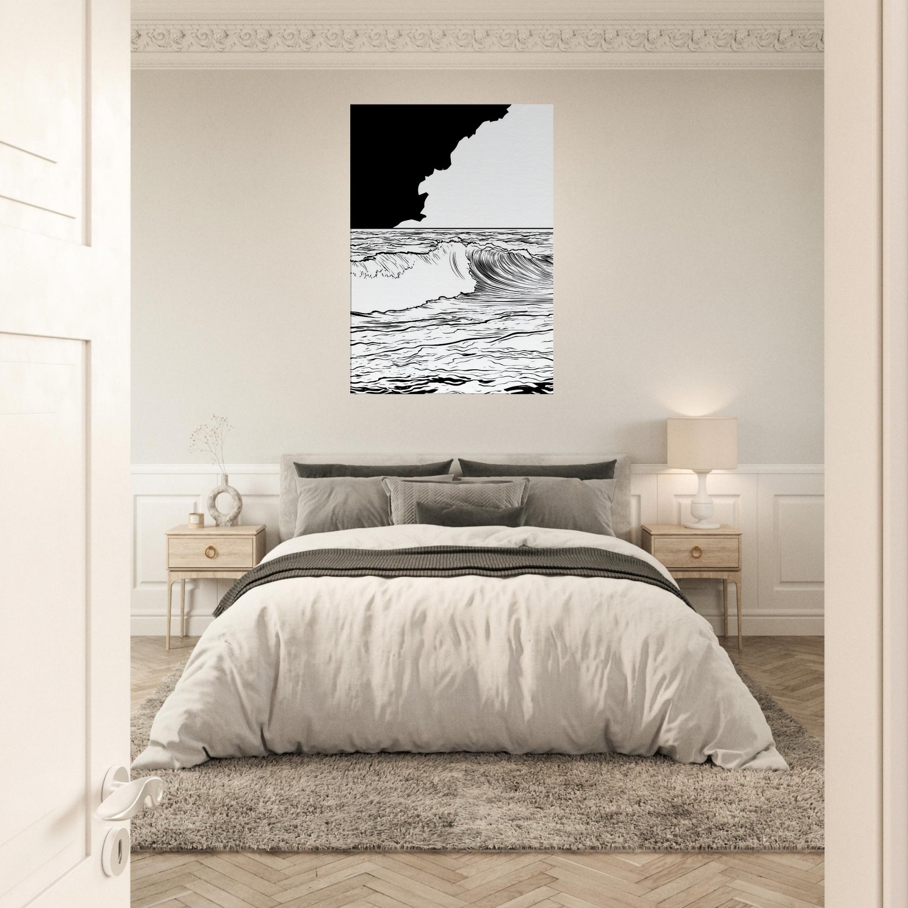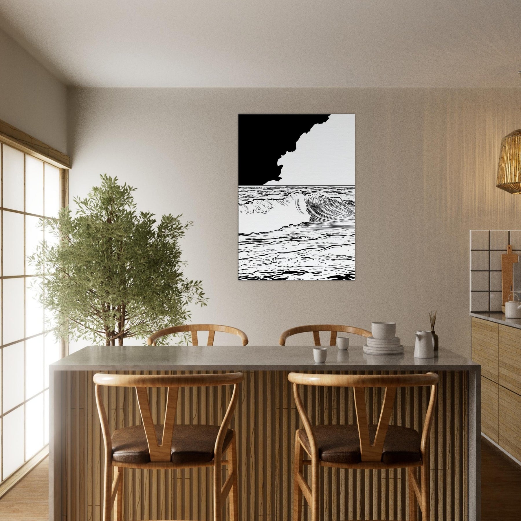 Let the Stormy Sea wash into your room with quiet drama. This line art study traces the coast and the swell in clean, unbroken contours, letting light and space become the real subject. A restrained contrast of black ink and white breathes energy into any living area, inviting you to pause at the edge of the shore without leaving the room. Perfect for a modern lounge or a peaceful workspace, it pairs bold simplicity with a tidal memory, turning walls into a contemplative horizon.