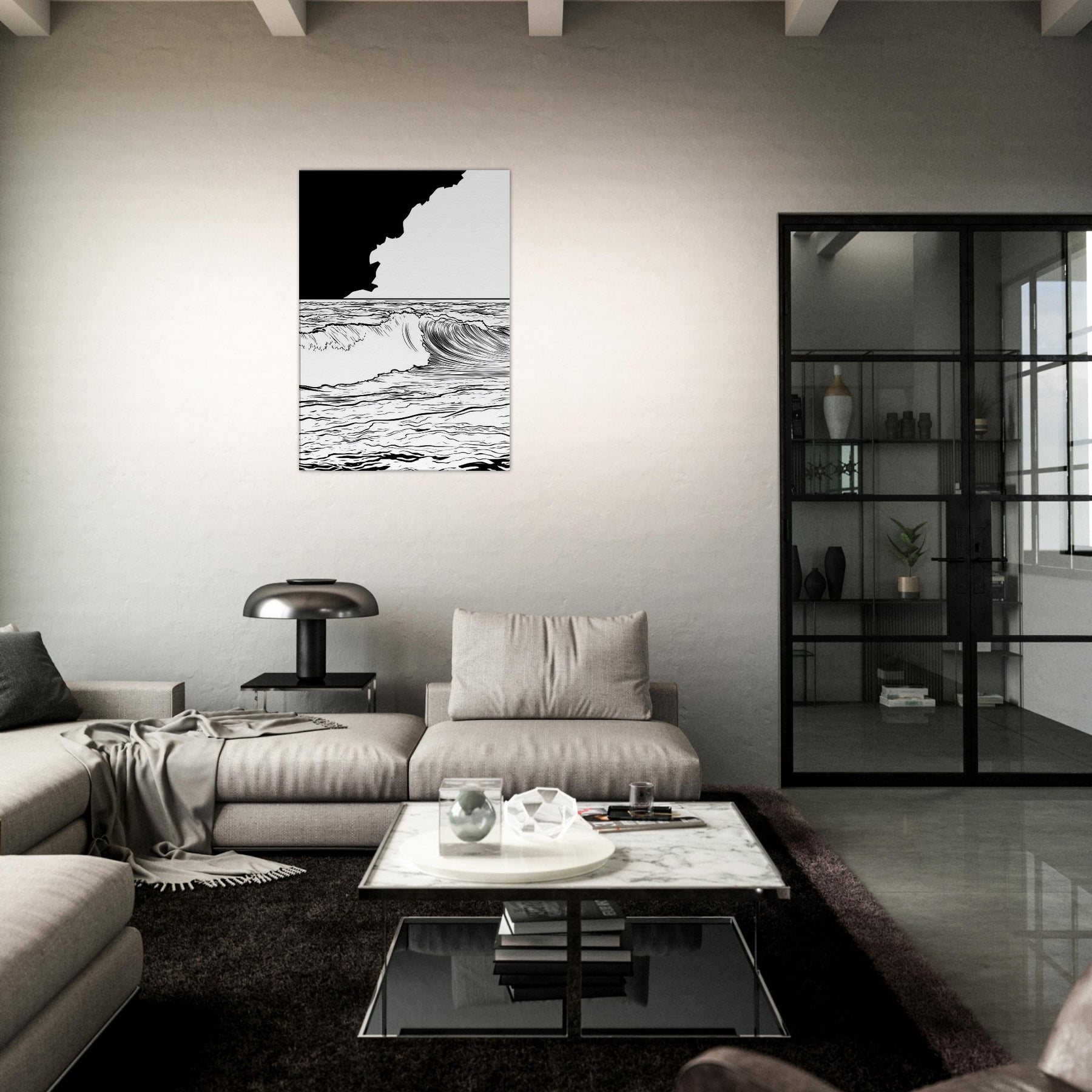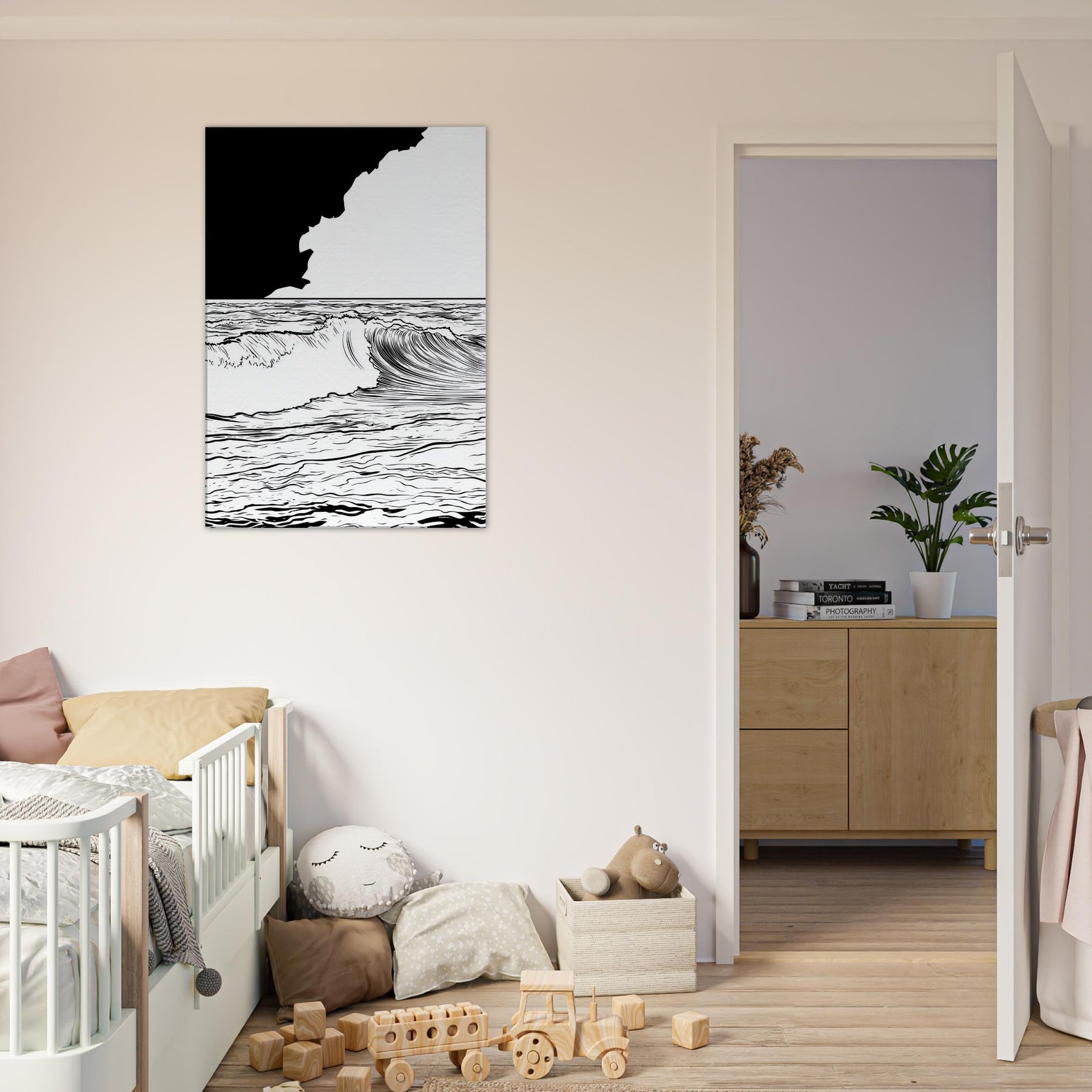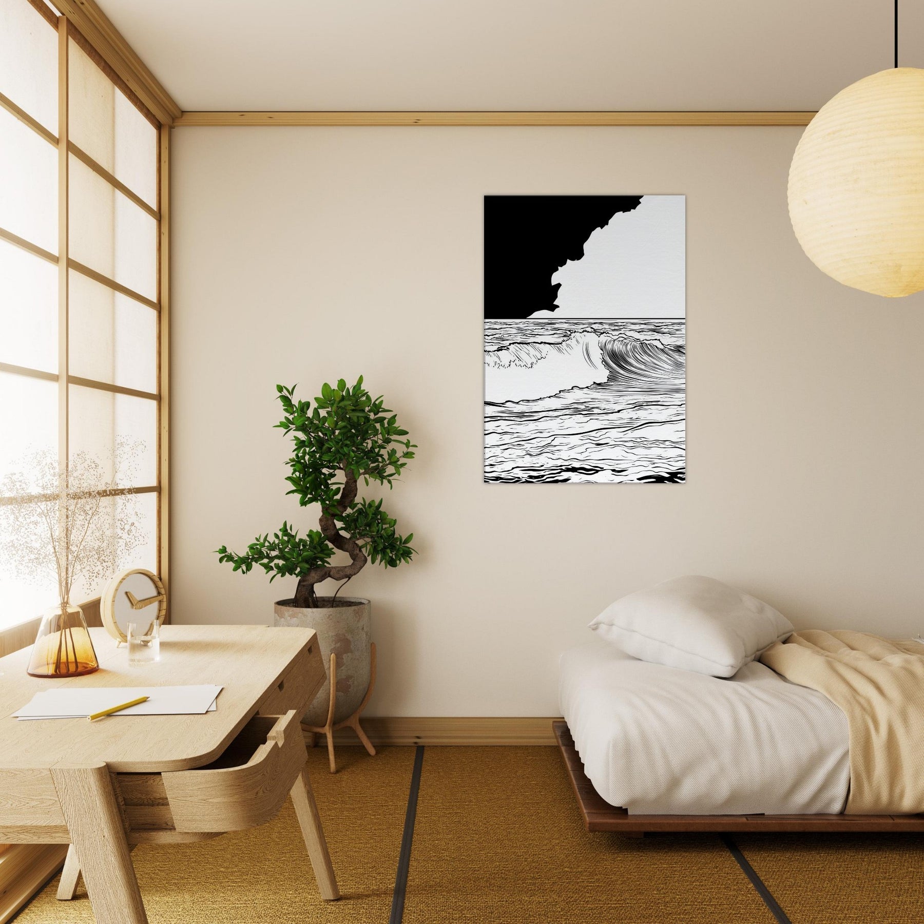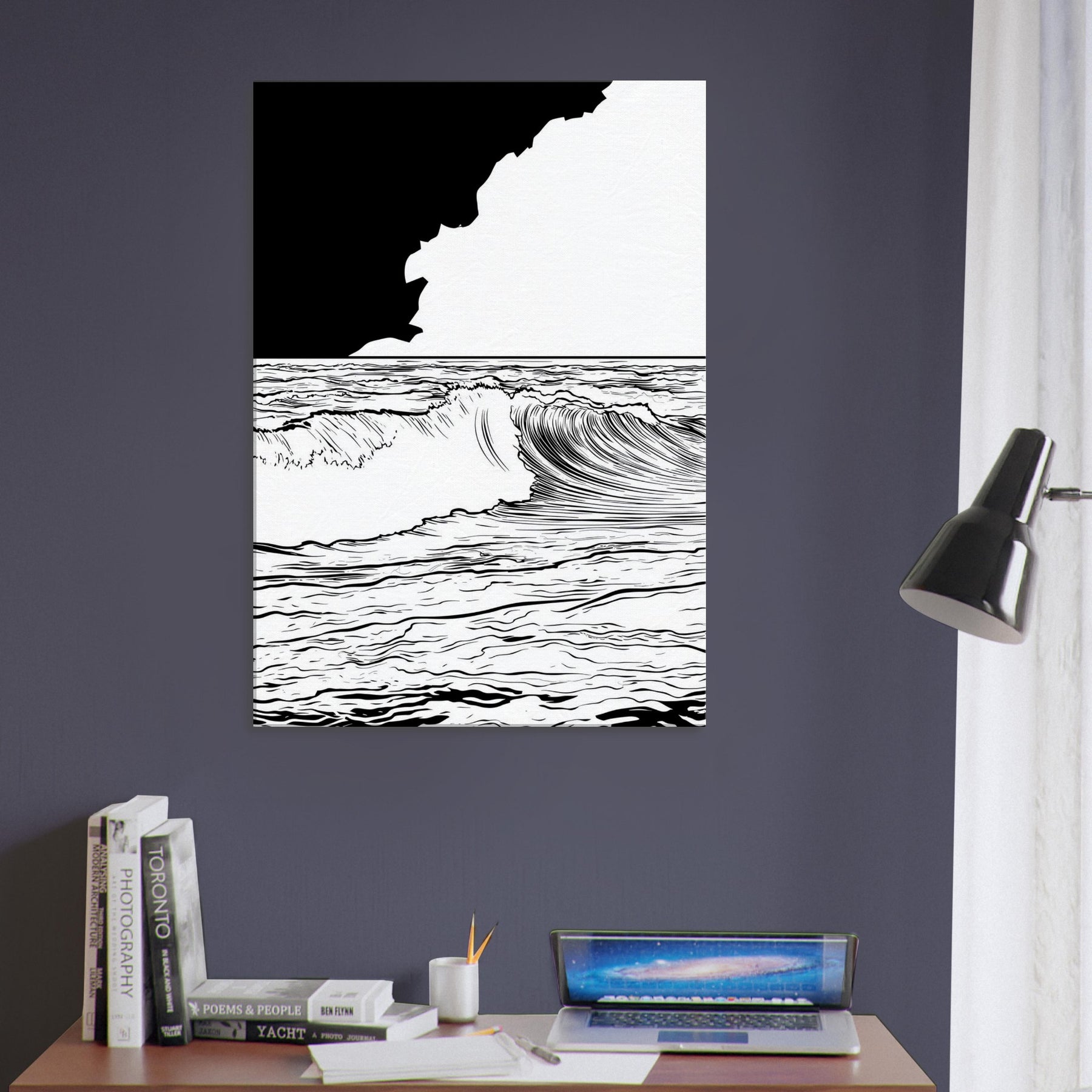 Let the Stormy Sea wash into your room with quiet drama. This line art study traces the coast and the swell in clean, unbroken contours, letting light and space become the real subject. A restrained contrast of black ink and white breathes energy into any living area, inviting you to pause at the edge of the shore without leaving the room. Perfect for a modern lounge or a peaceful workspace, it pairs bold simplicity with a tidal memory, turning walls into a contemplative horizon.