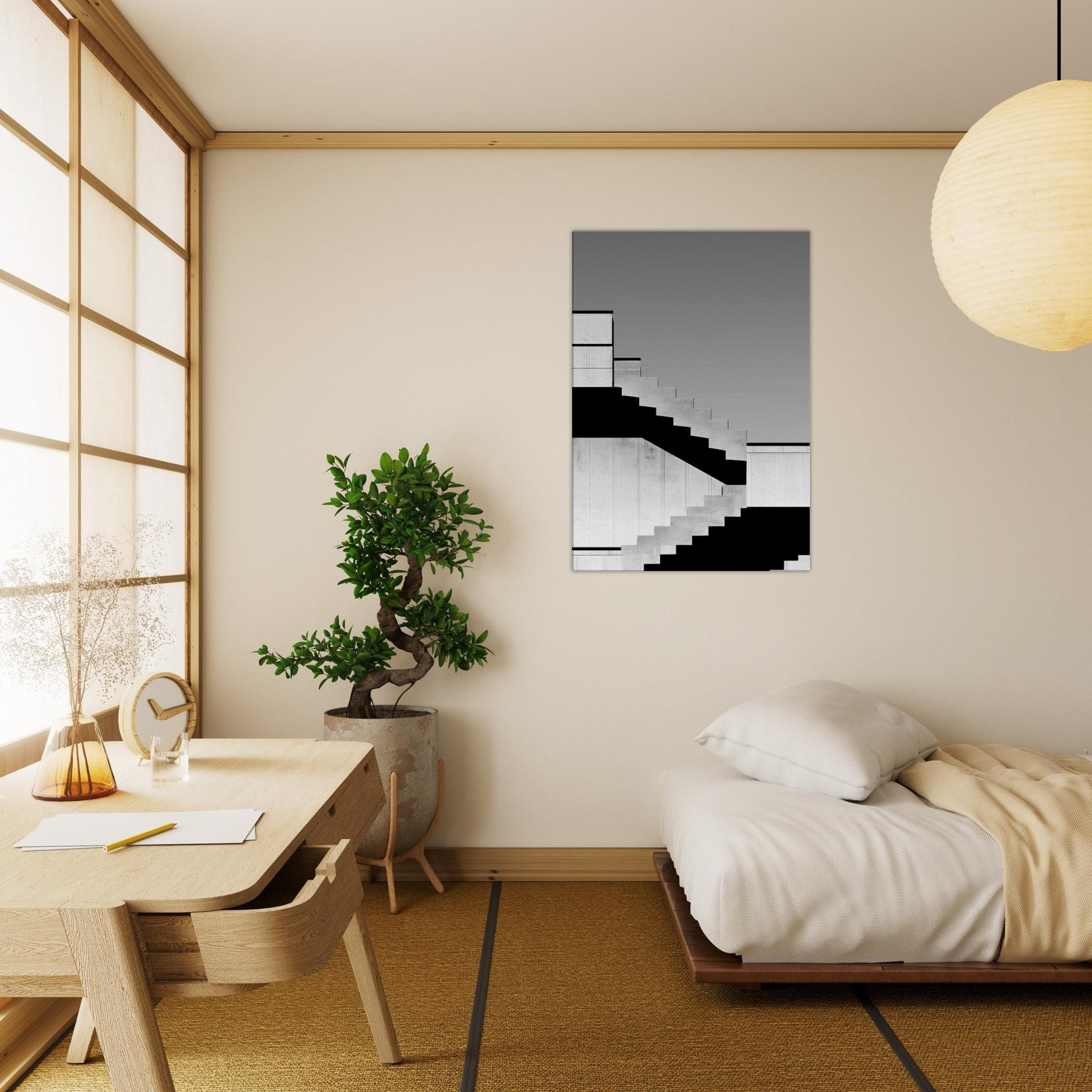 Let the Staircase Switchback lead your space into quiet motion. In this line art study, every angular step becomes a whisper of urban architecture, rendered in crisp black and soft gray gradients. The result is a calm, cinematic atmosphere that lends structure to open plan living rooms and quiet corners alike. As light shifts, the piece reveals tactile depth and a sense of ascent without clutter, turning walls into a gallery of disciplined elegance minimal, modern, and endlessly inspiring.